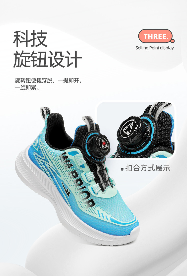商品名称:童鞋儿童春秋百搭旋钮青少年时尚网面透气男童女童中大童运动鞋 542408