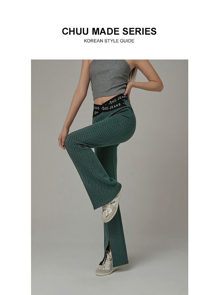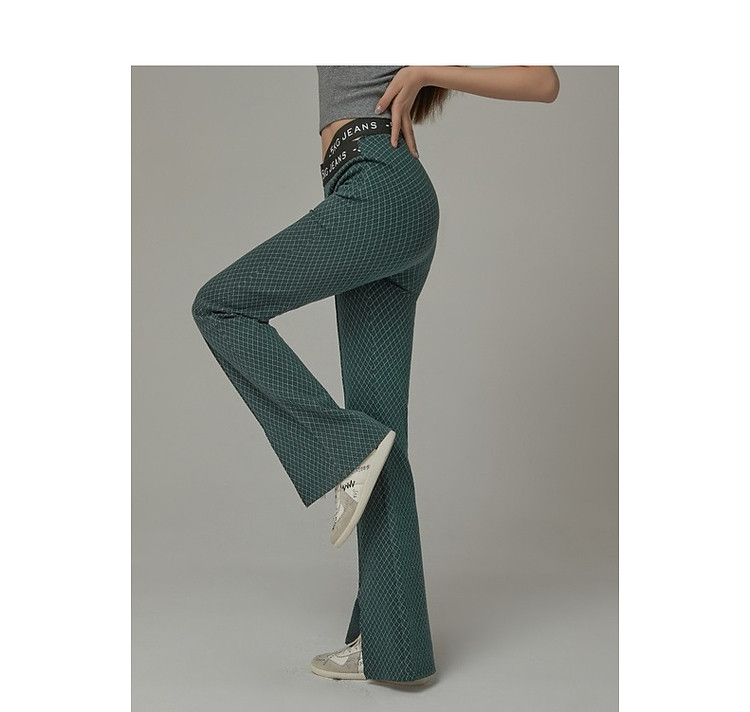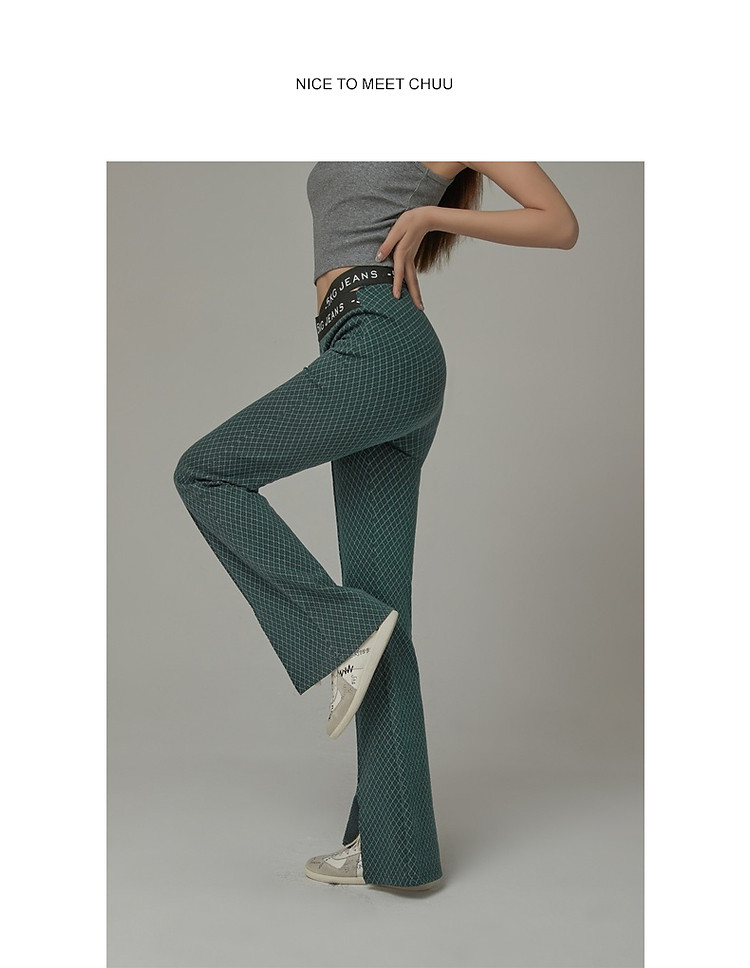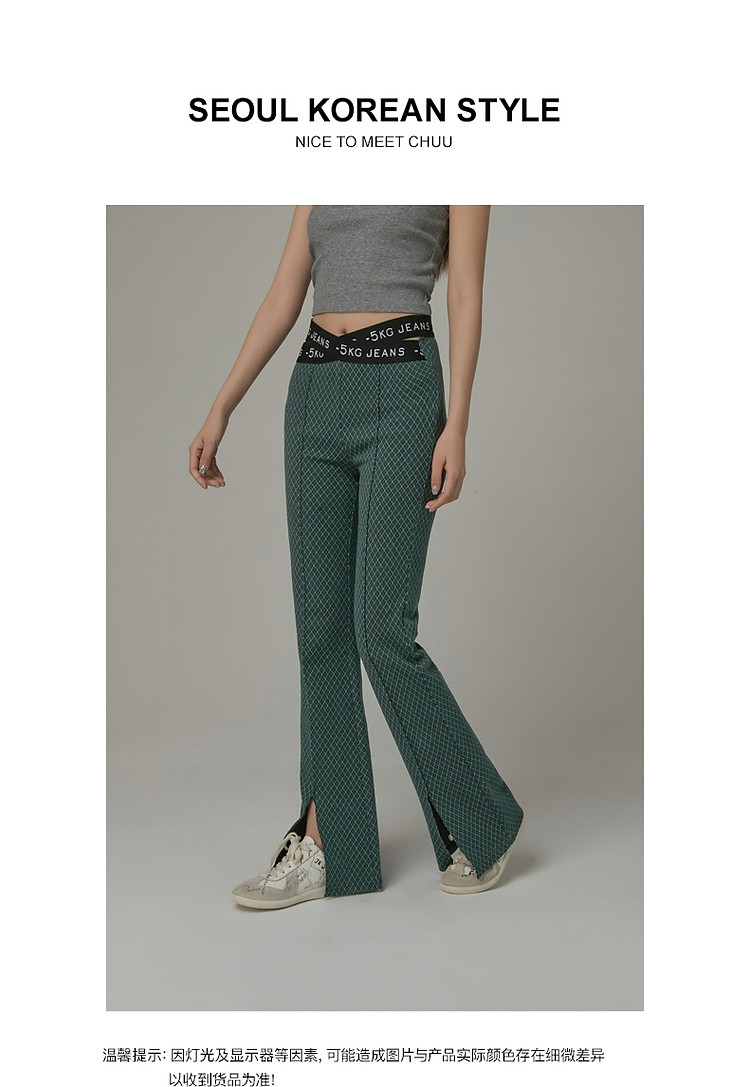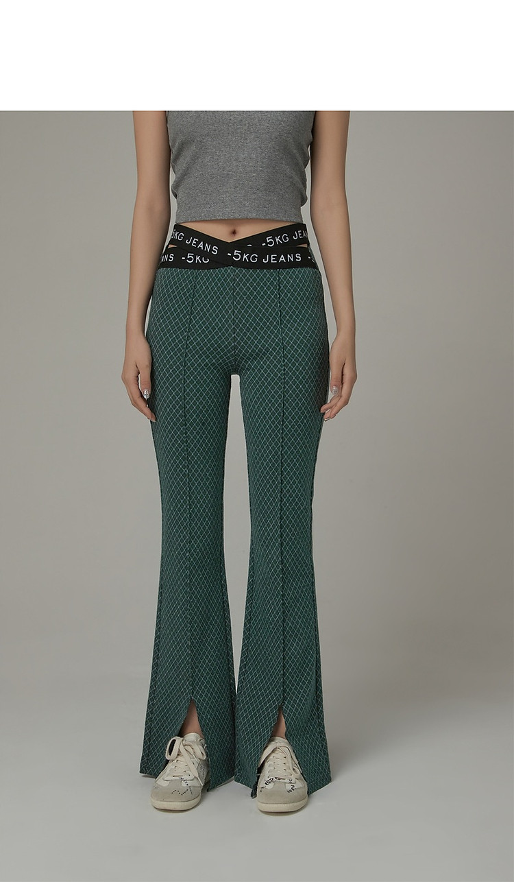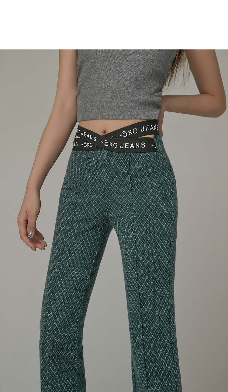 商品名称:格子微喇休闲裤女春秋开叉修身交叉字母设计感长裤 094291