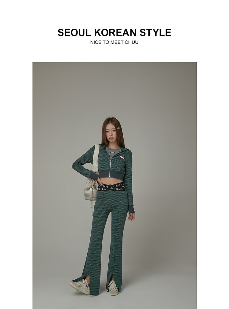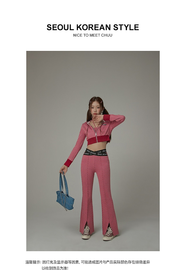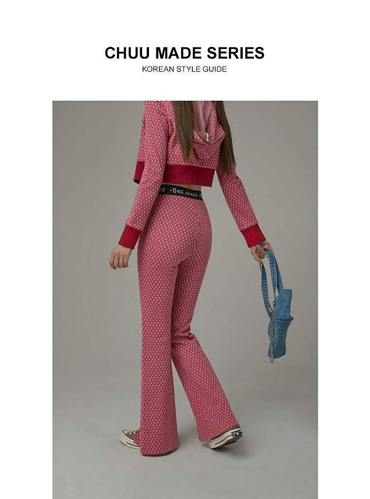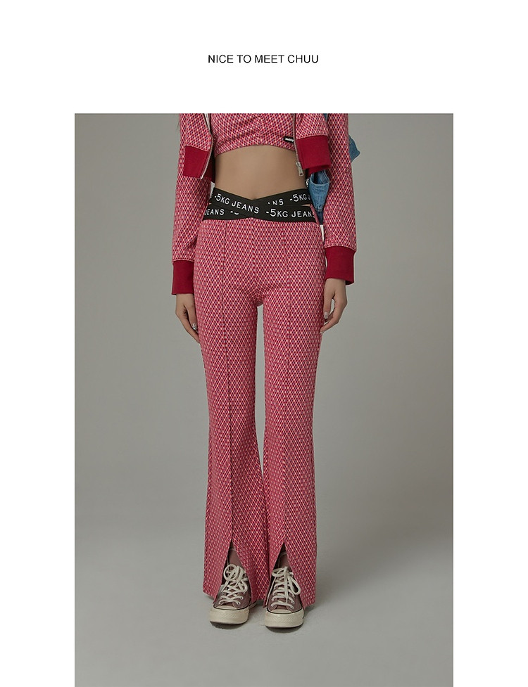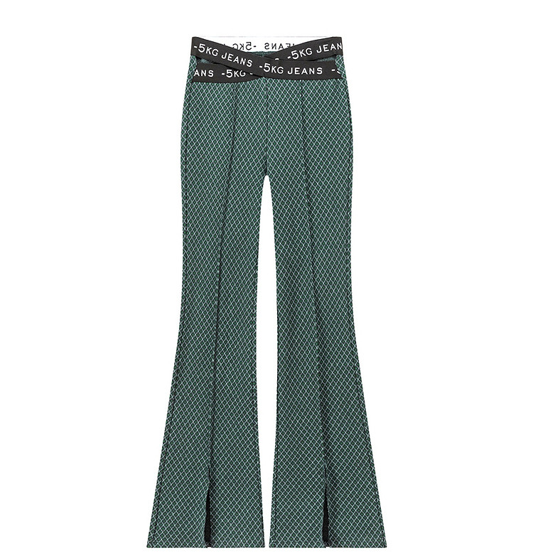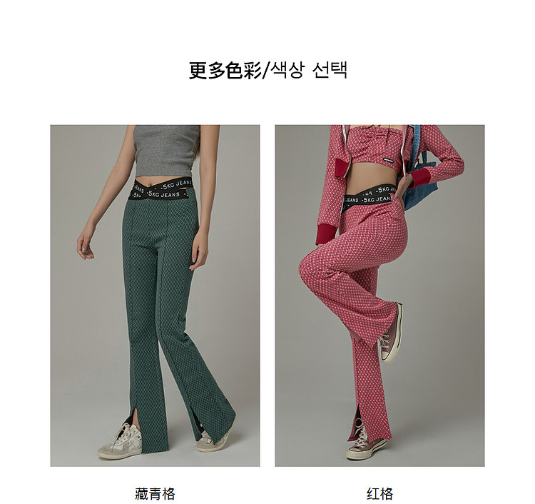 商品名称:格子微喇休闲裤女春秋开叉修身交叉字母设计感长裤 094291