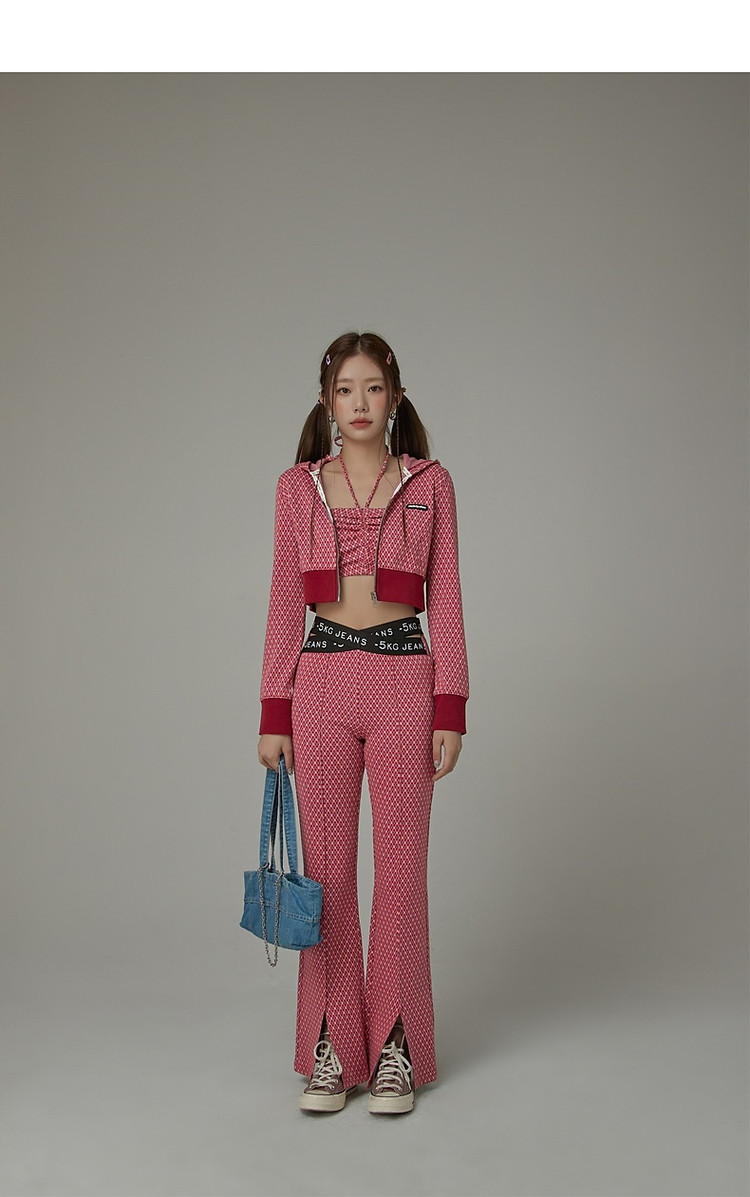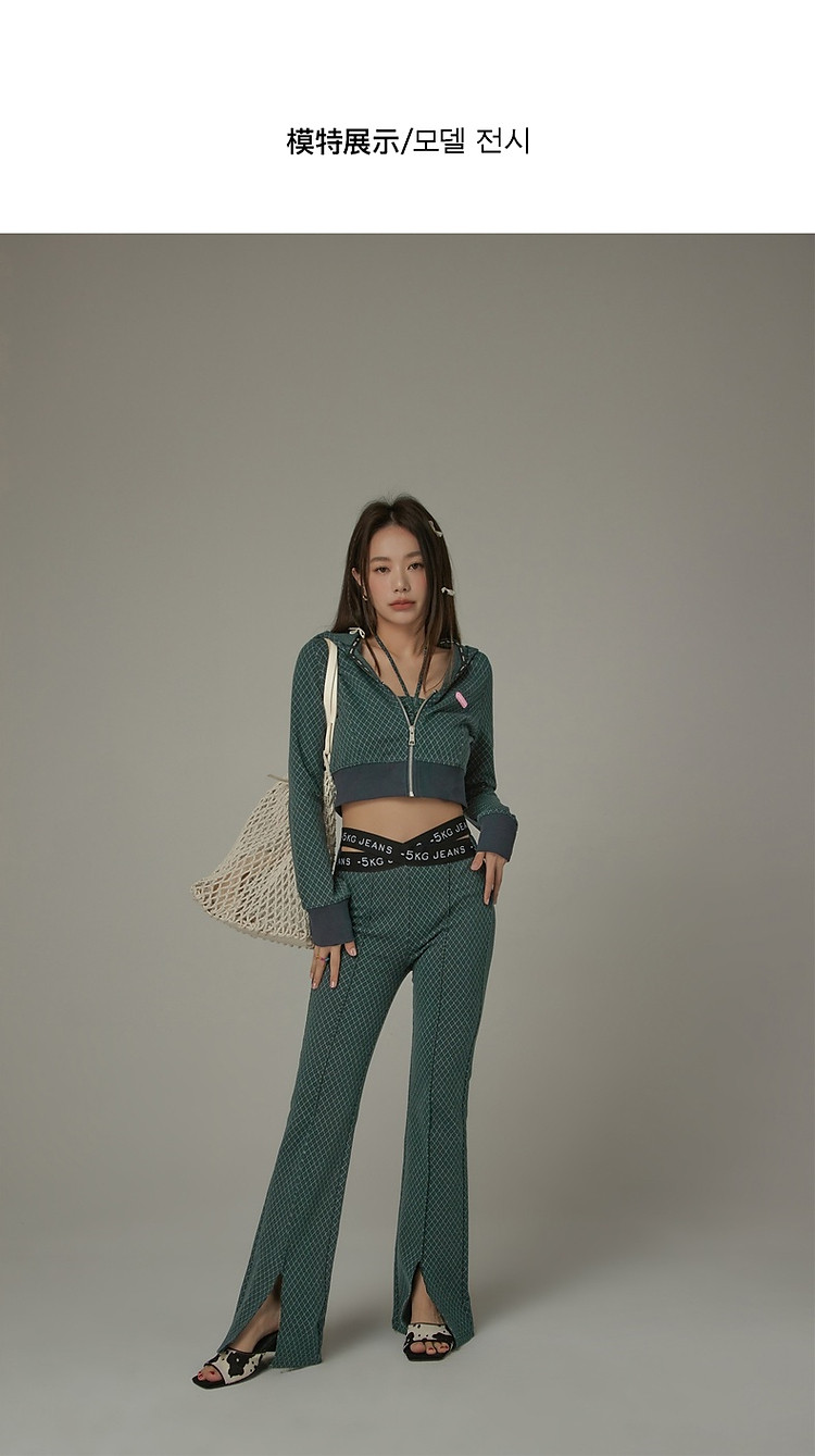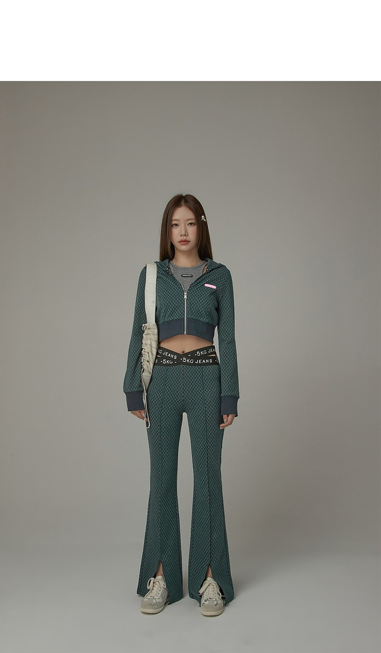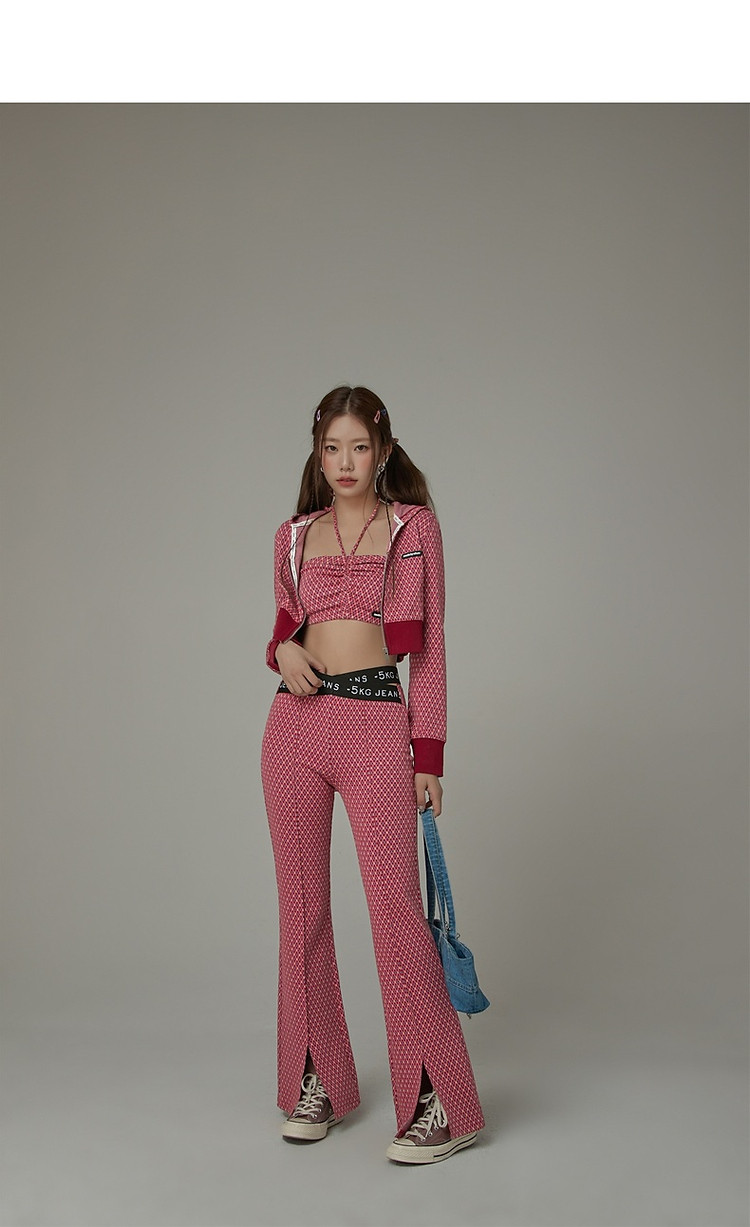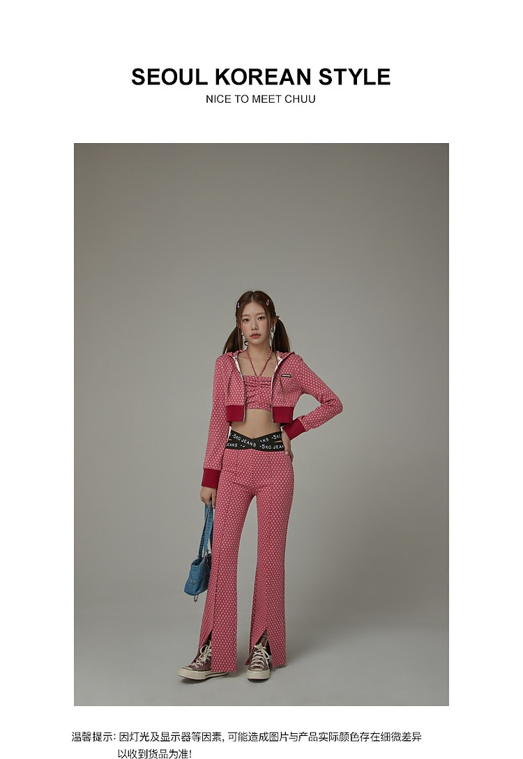商品名称:格子微喇休闲裤女春秋开叉修身交叉字母设计感长裤 094291