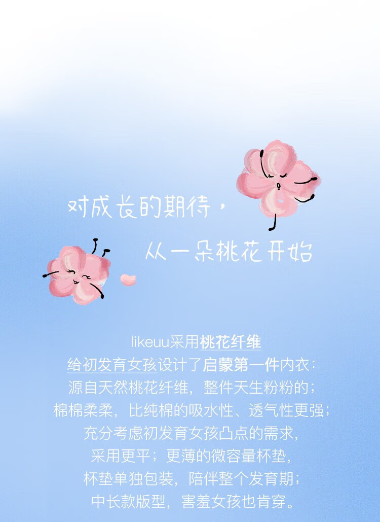 商品名称:likeuu初发育一阶段天然桃花纤维少女背心文胸小学生 332288