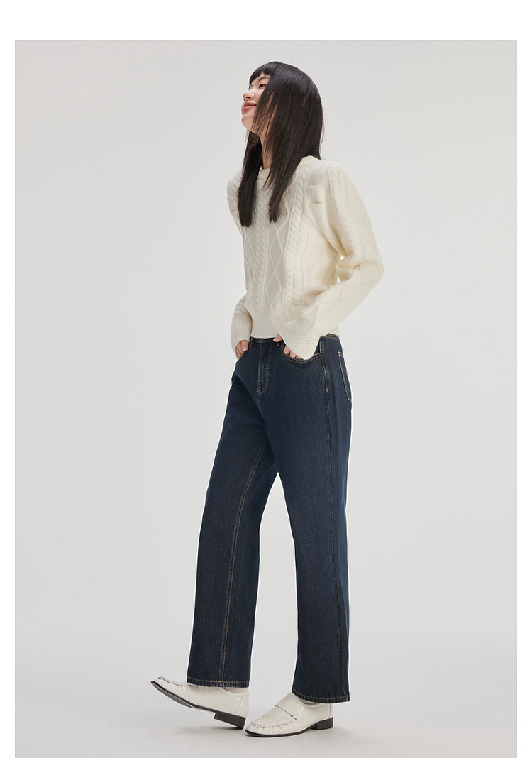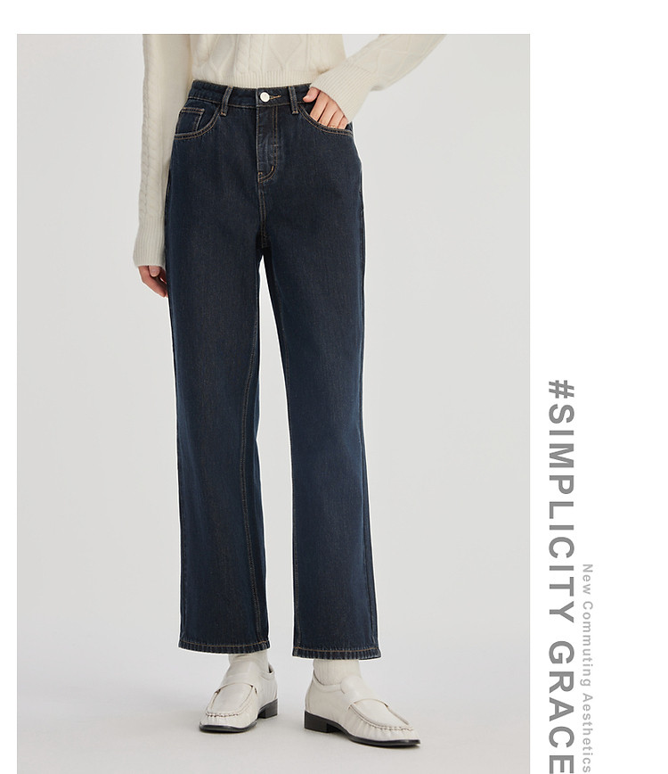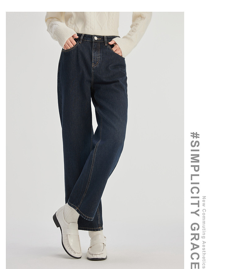 商品名称:2024款简约休闲牛仔裤女秋季宽松高腰直筒裤百搭显瘦长裤女 873622