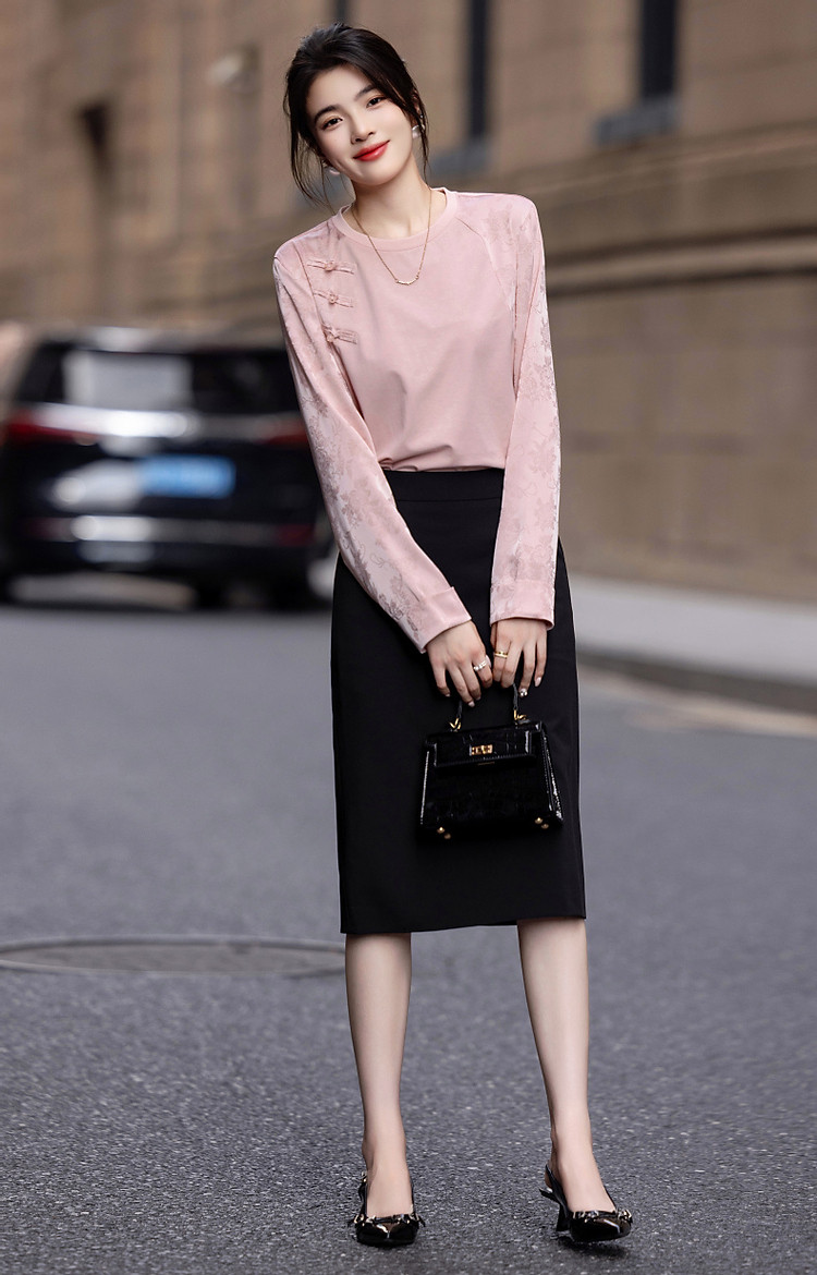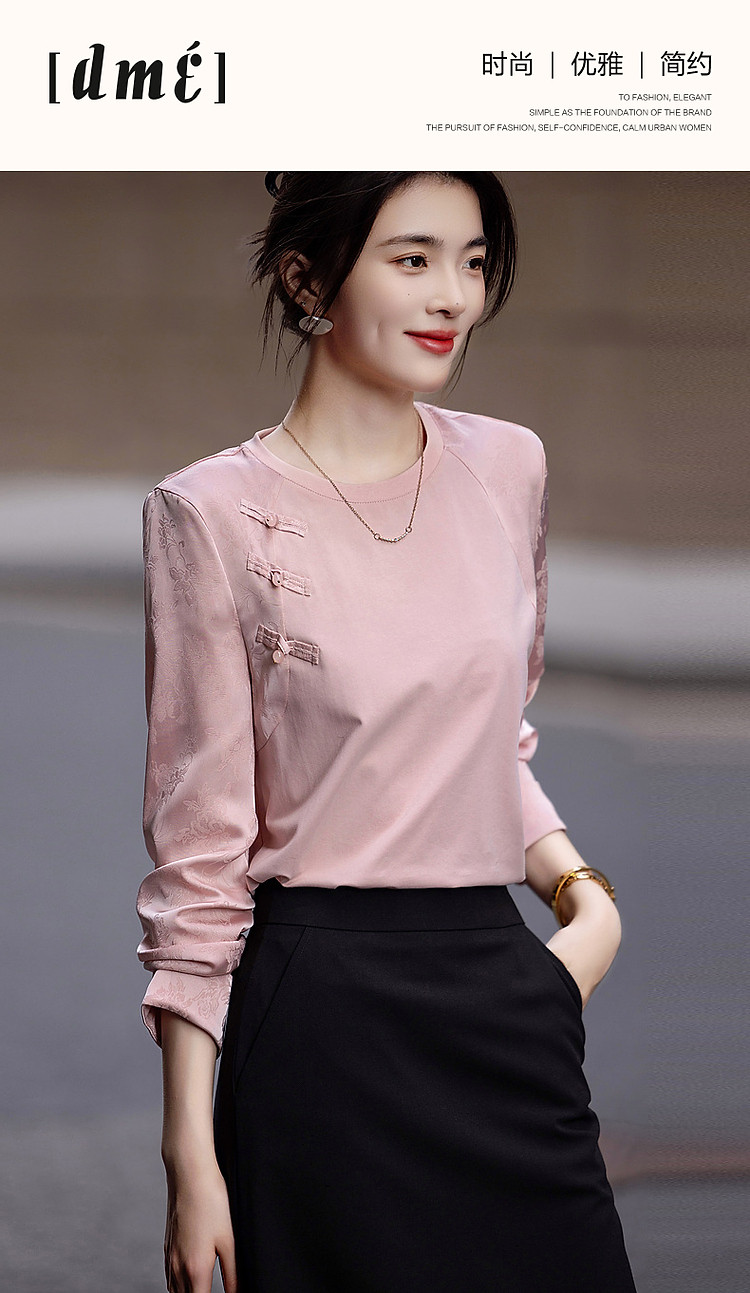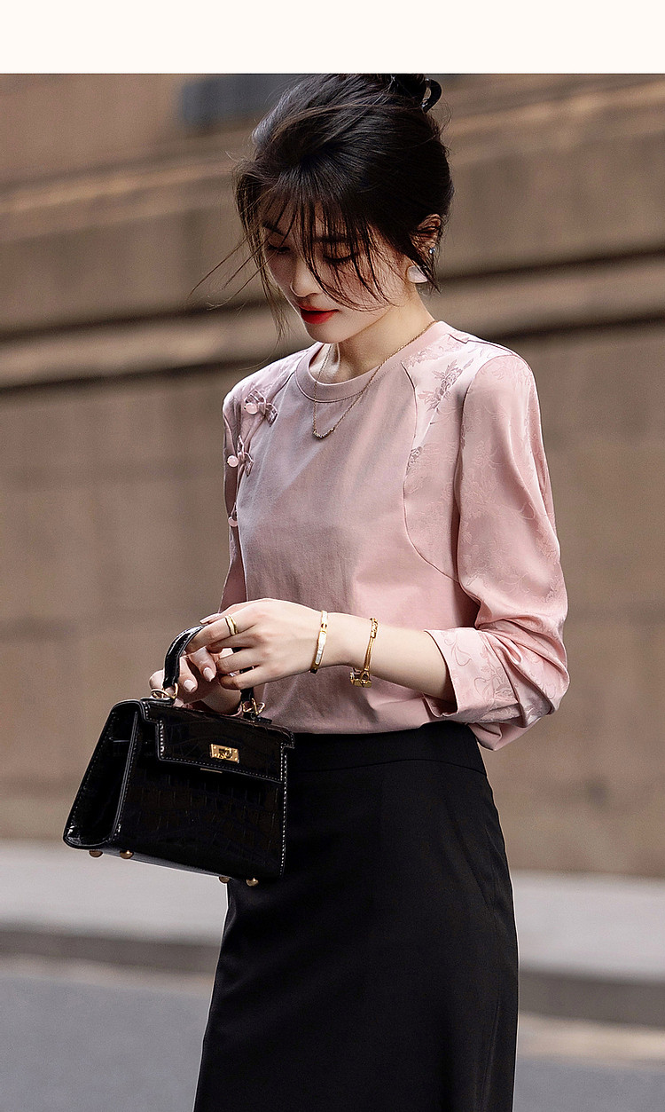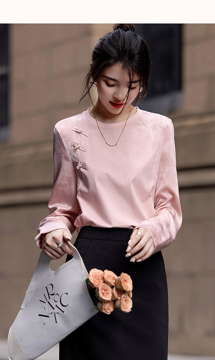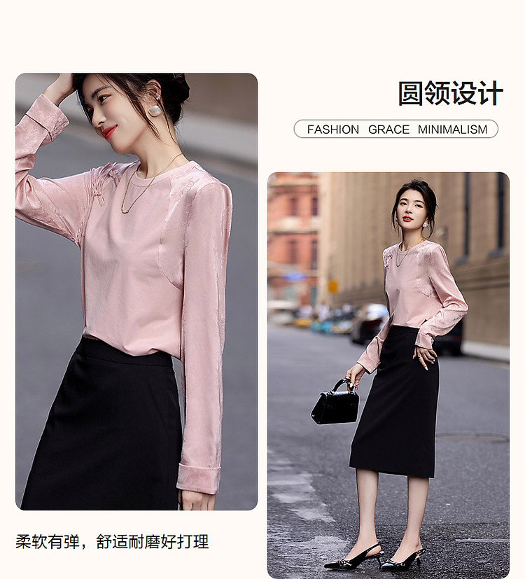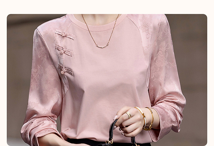商品名称:【粉妆玉人】秋温婉新中式国风圆领拼接长袖宽松藏肉女式卫衣 393089