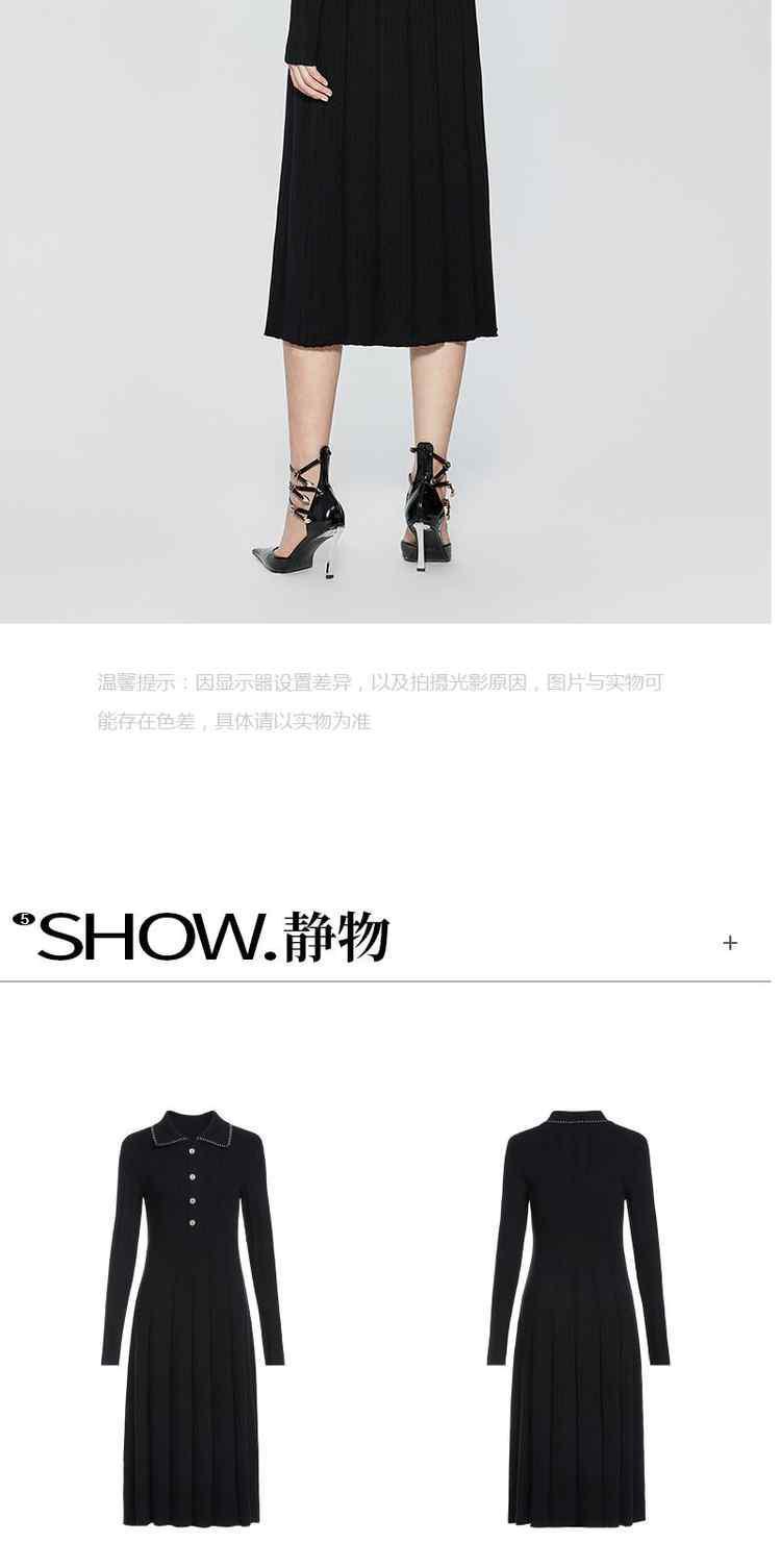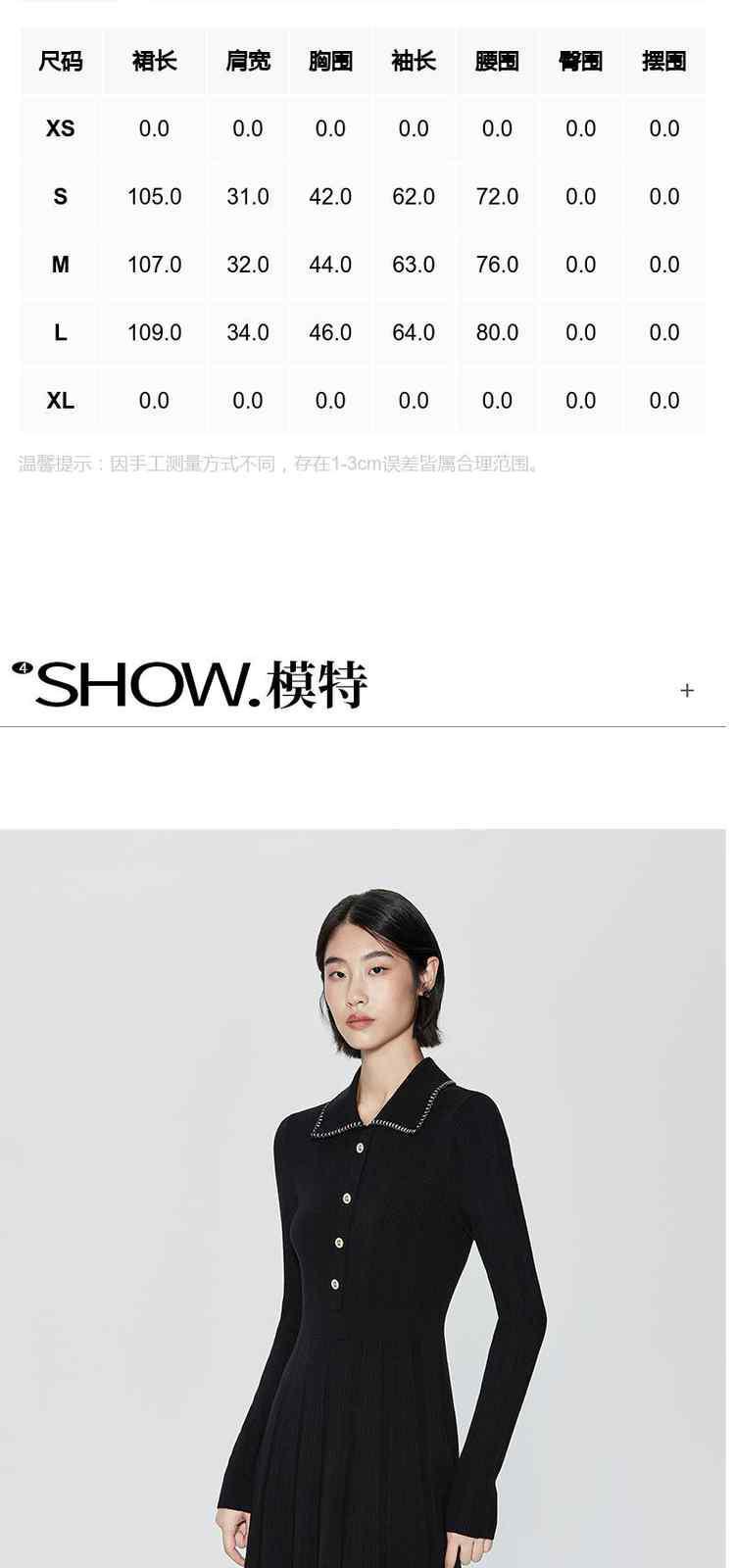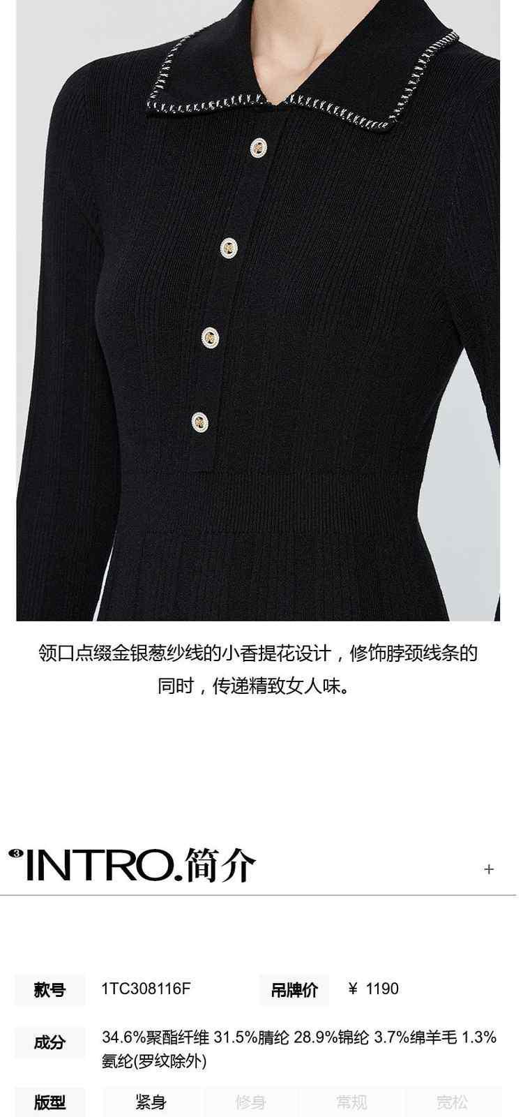 商品名称:春装 镶边Polo领小香风收腰毛织中长连衣裙 425423