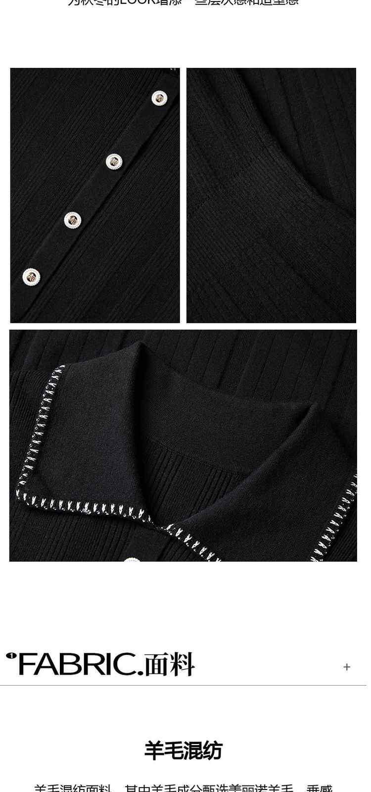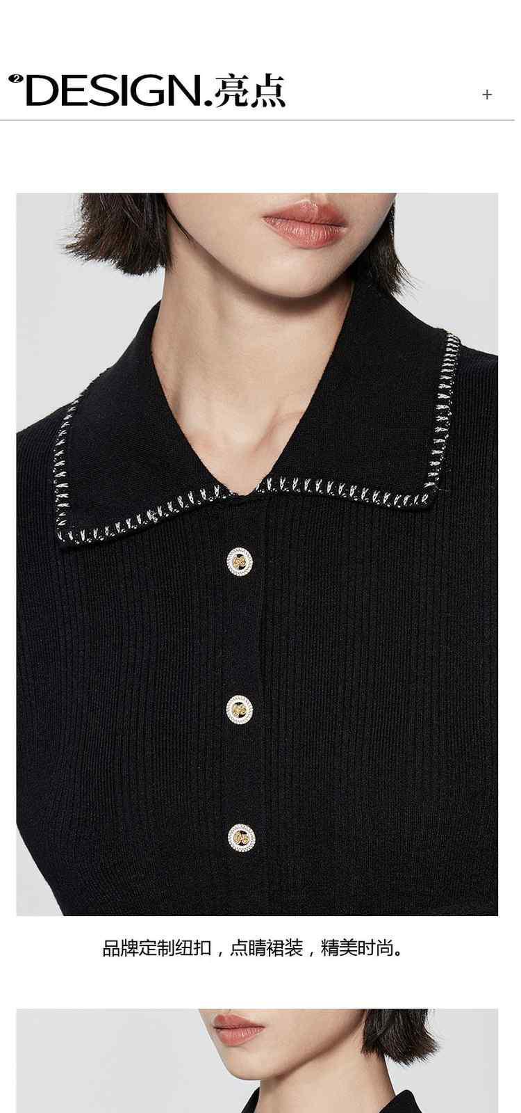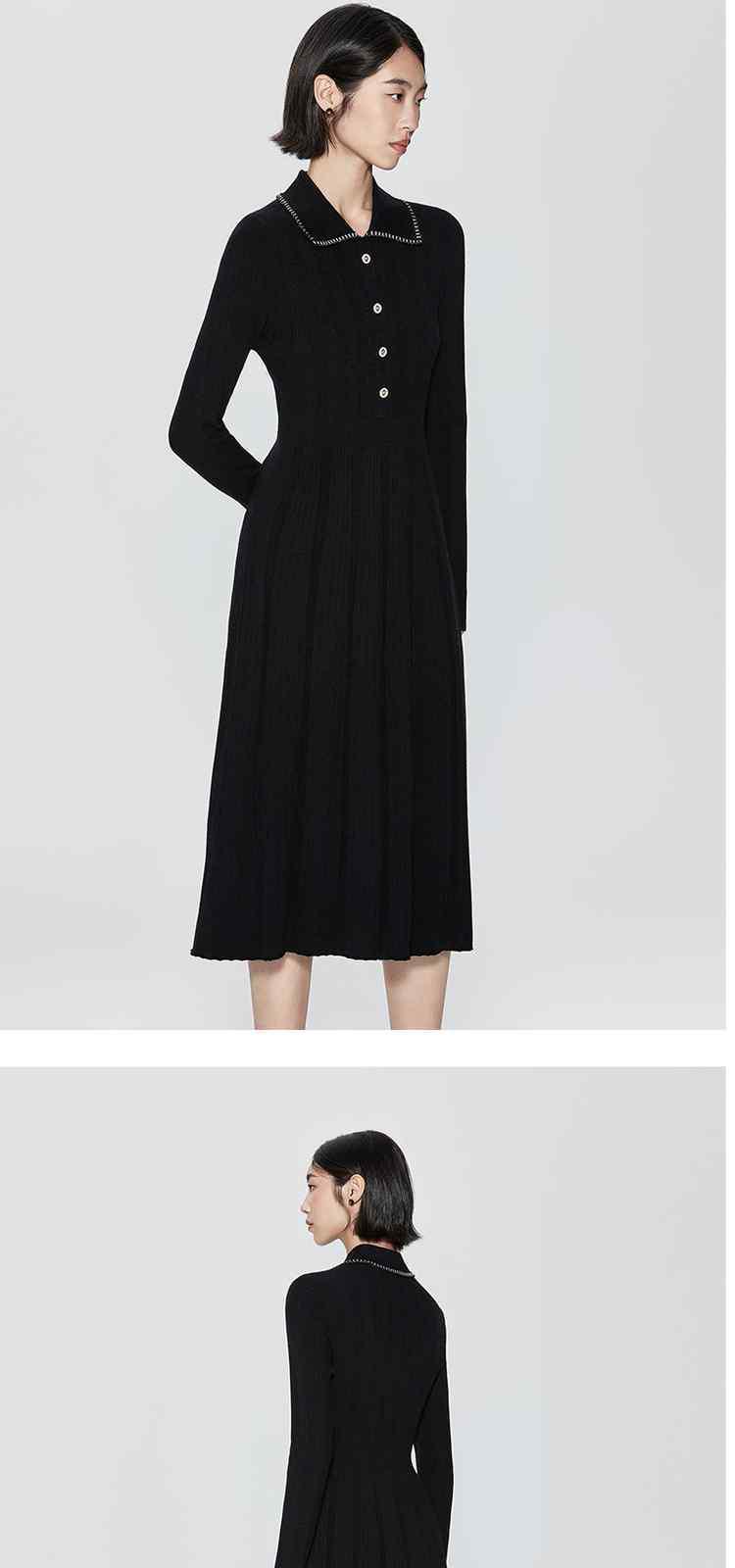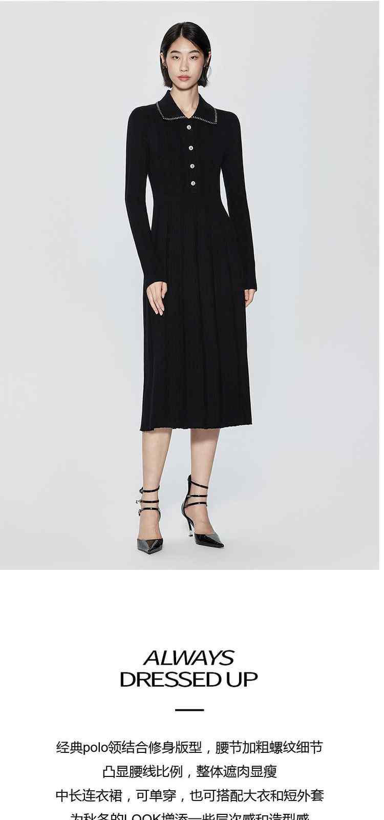 春装 镶边Polo领小香风收腰毛织中长连衣裙 425423