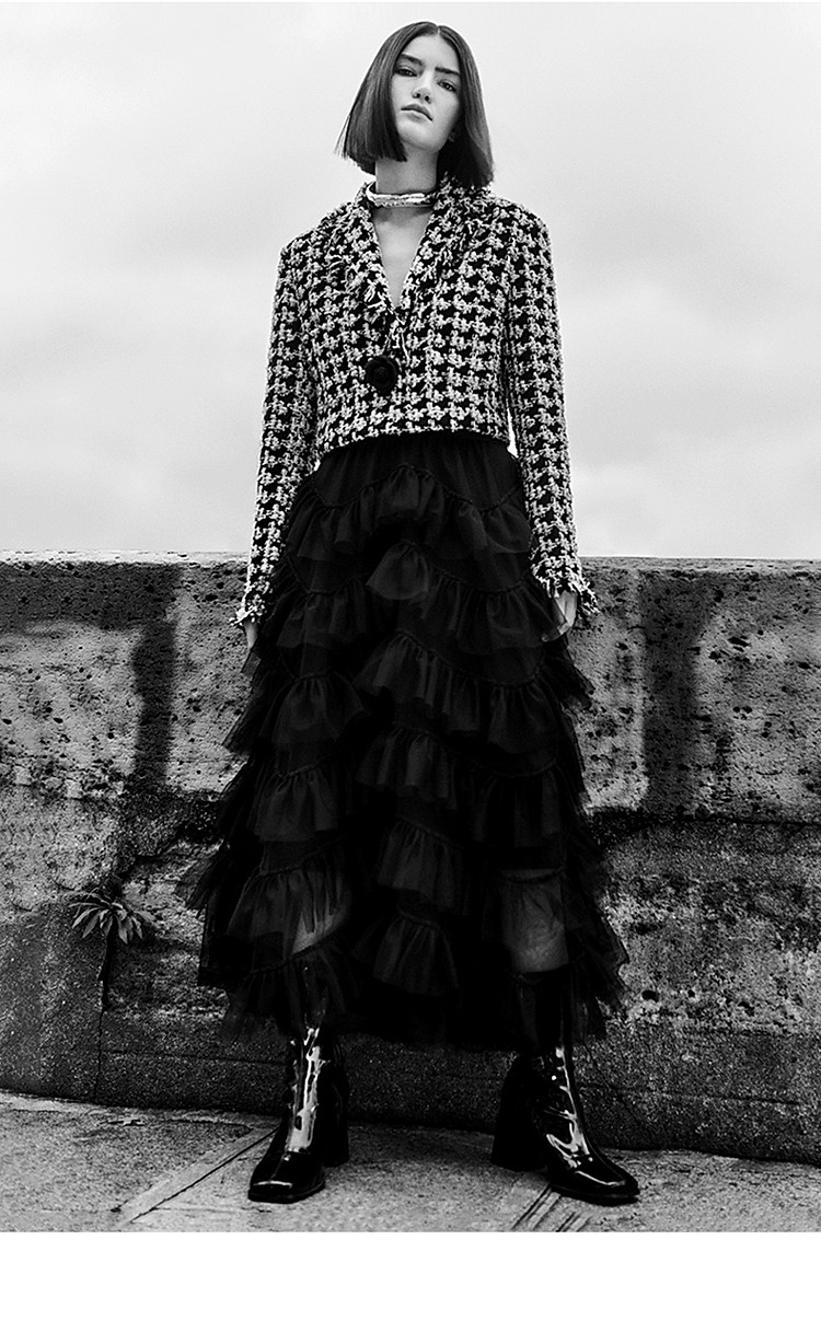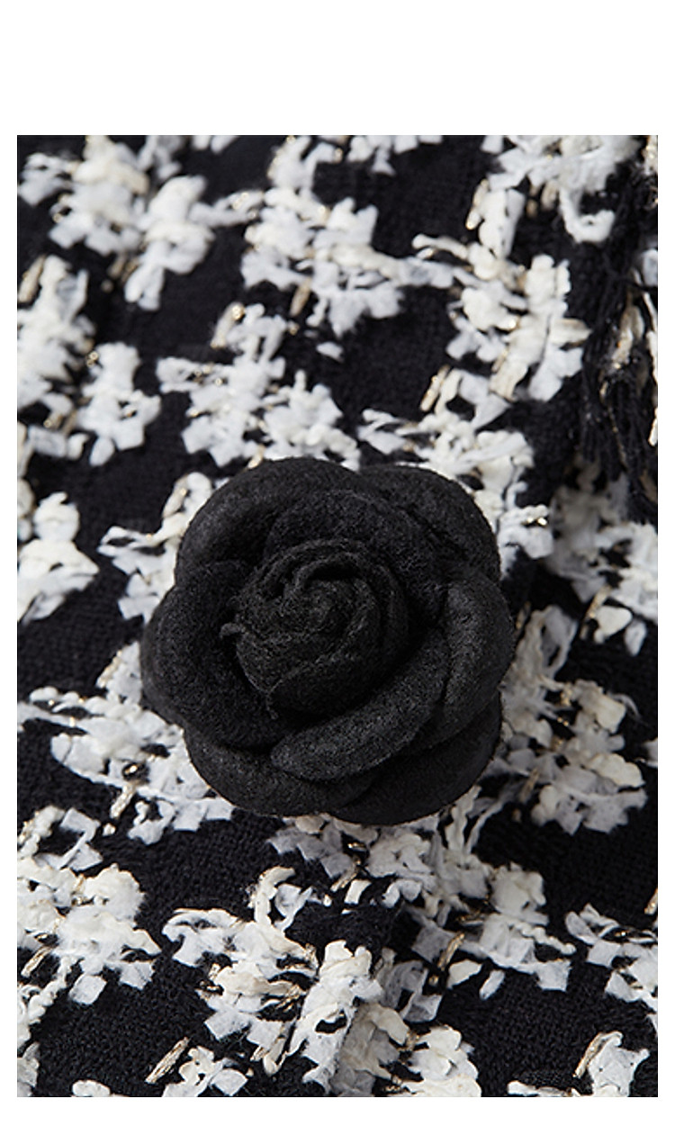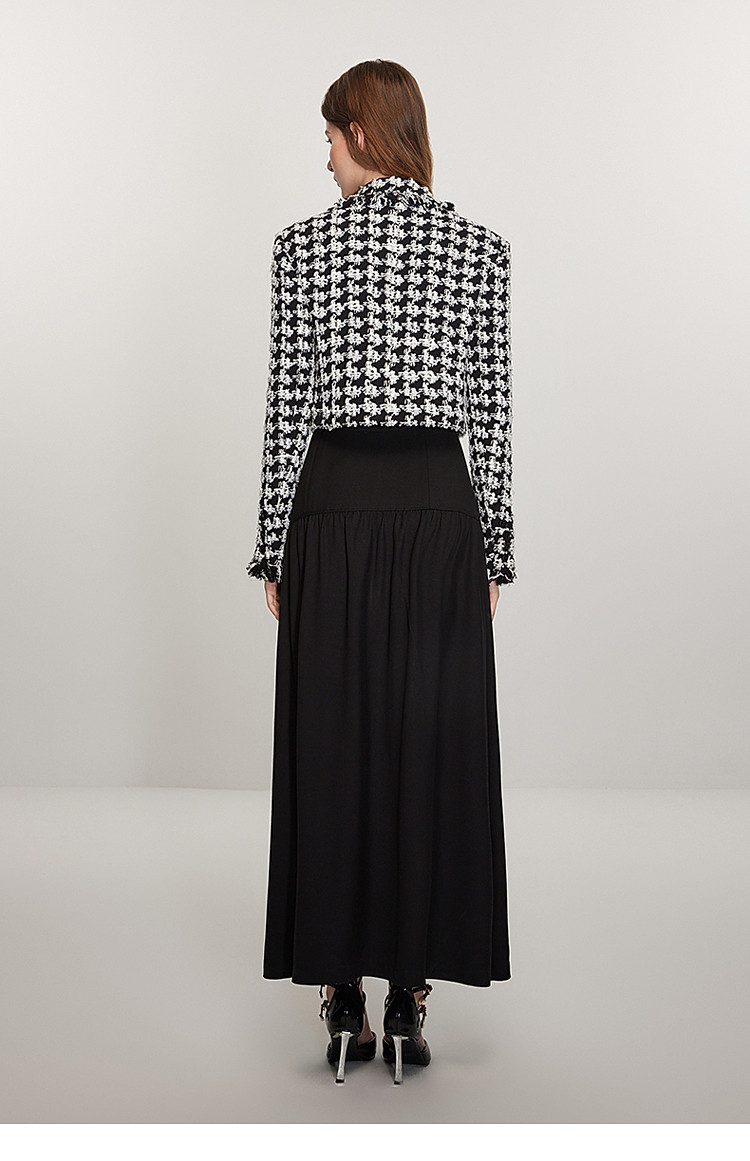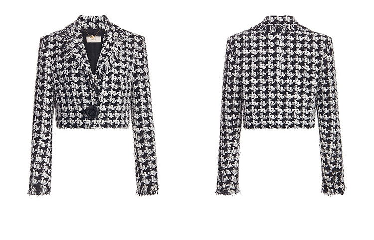 春装 亮丝千鸟格小香风西装外套女短款复古正肩 753359