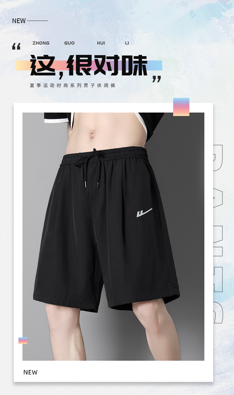 商品名称:短裤男士夏季薄款潮牌外穿冰丝宽松休闲中裤百搭沙滩运动五分裤子 293715