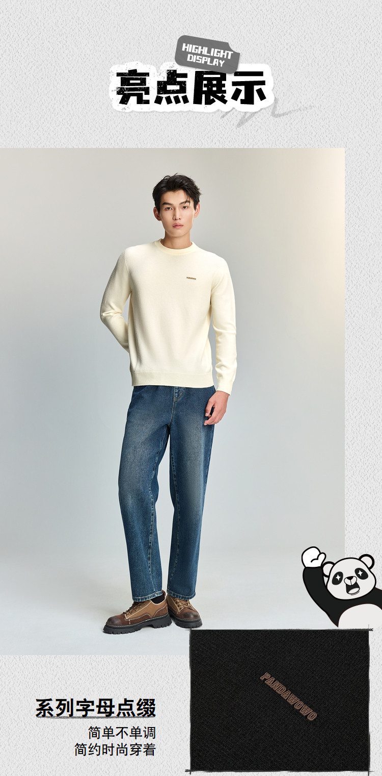 商品名称:【含绵羊毛】春秋季新街潮宽松纯色男士长袖针织衫毛衣 226696
