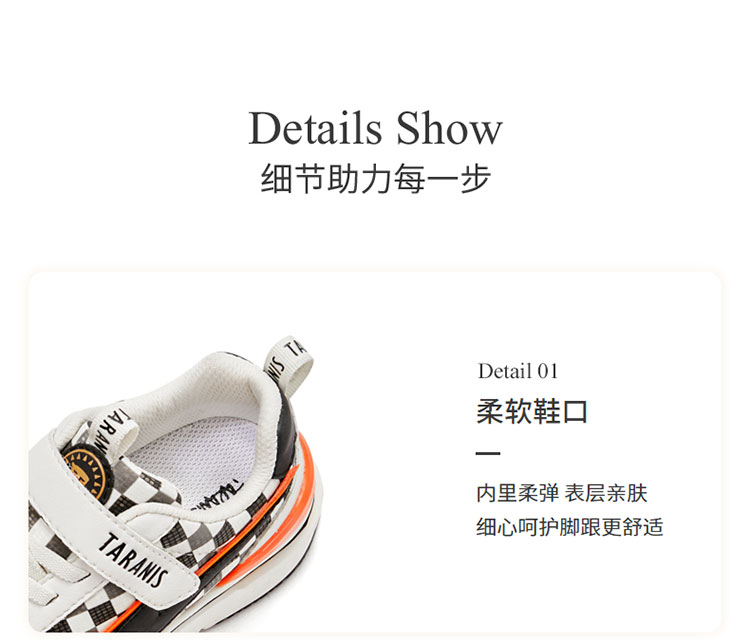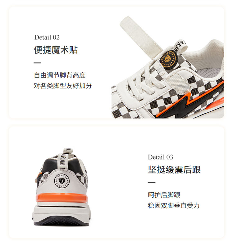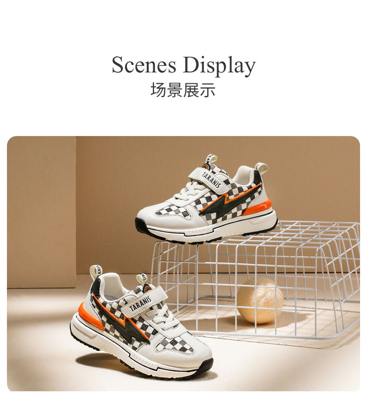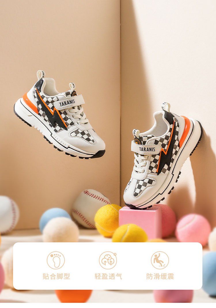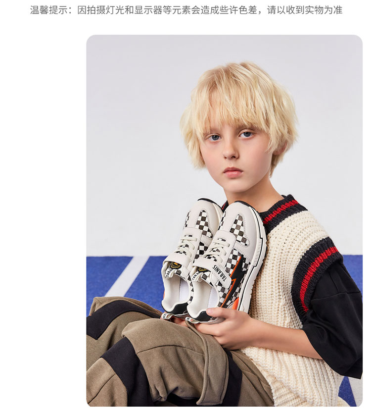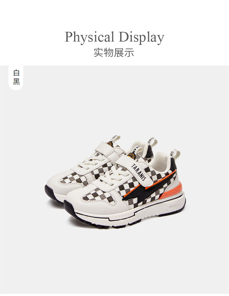 商品名称:春秋款儿童跑步鞋时尚黑白格设计休闲鞋轻便百搭透气男童运动鞋 119575