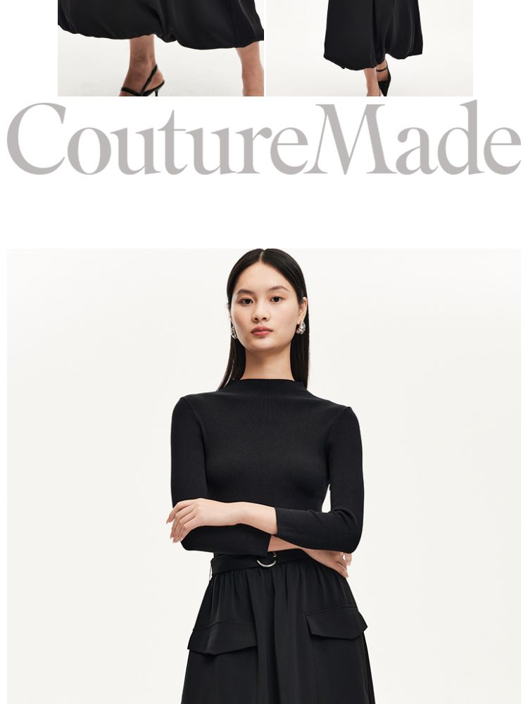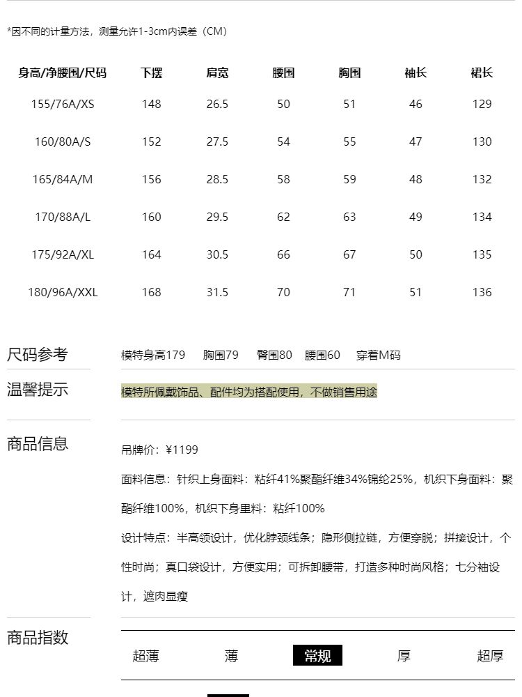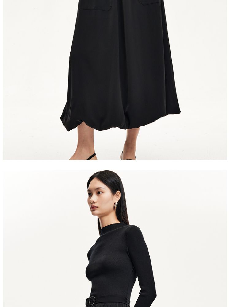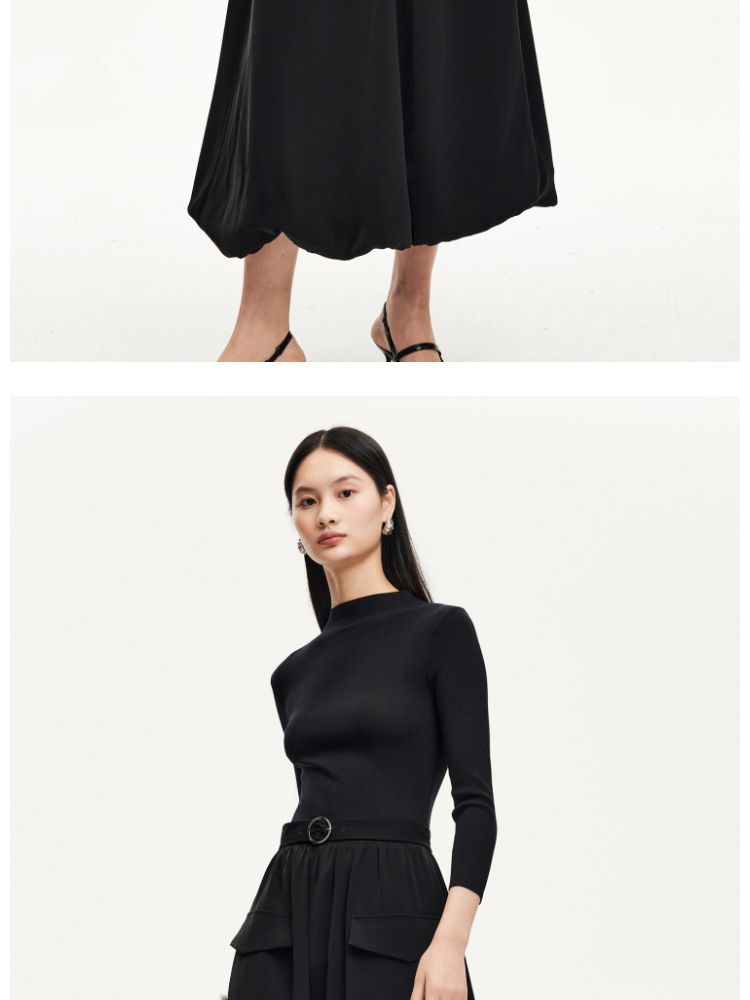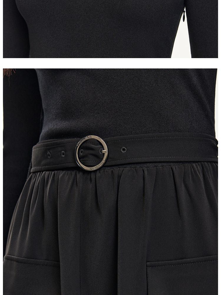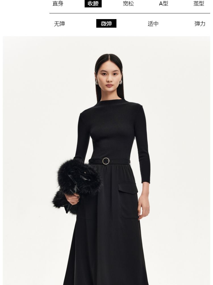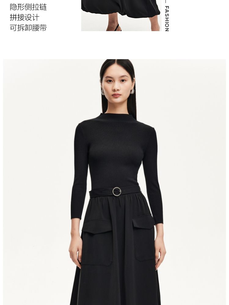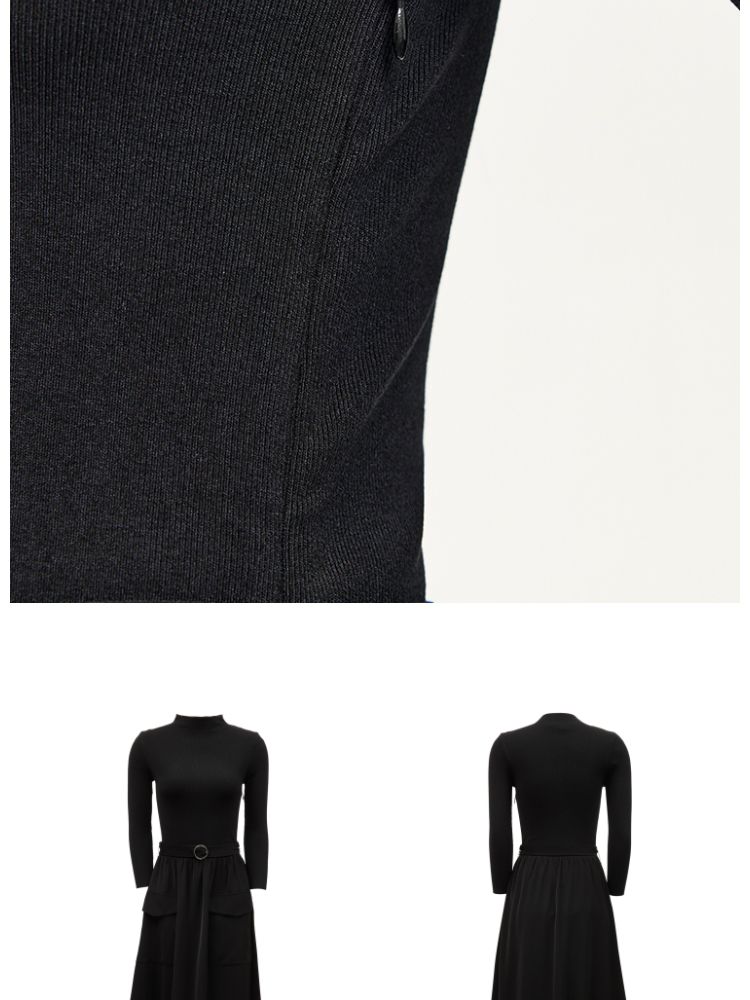 商品名称:连衣裙女针织拼接纯色显瘦小黑裙时尚通勤 119953