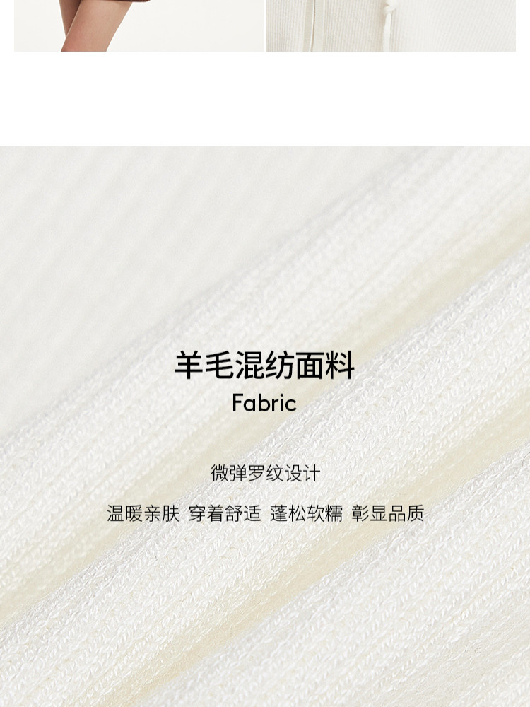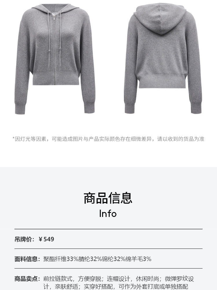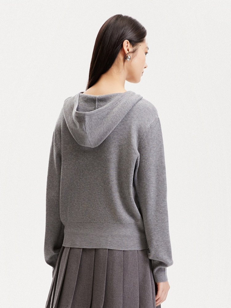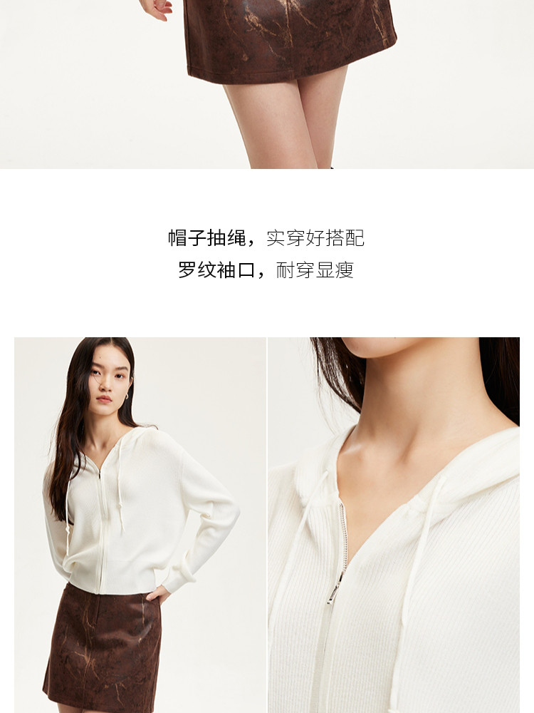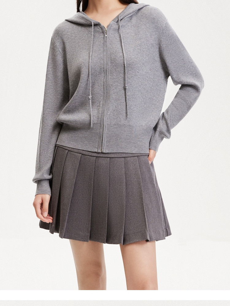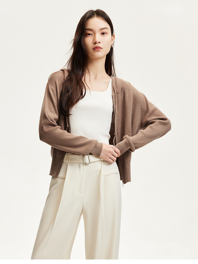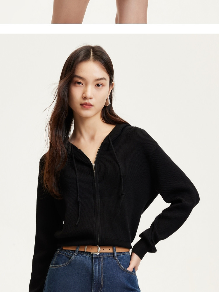 商品名称:针织衫女早含羊毛竖坑条连帽针织开衫简约休闲 179665
