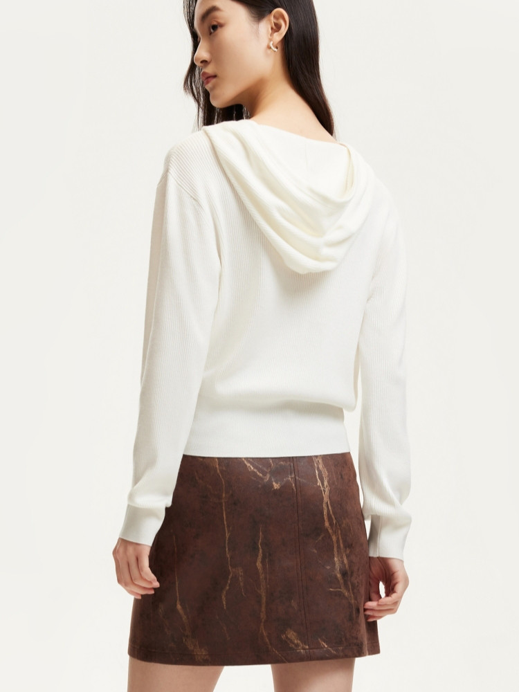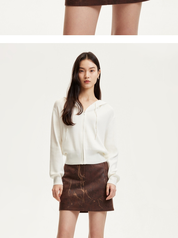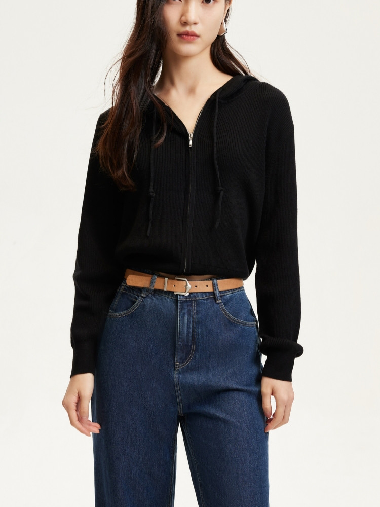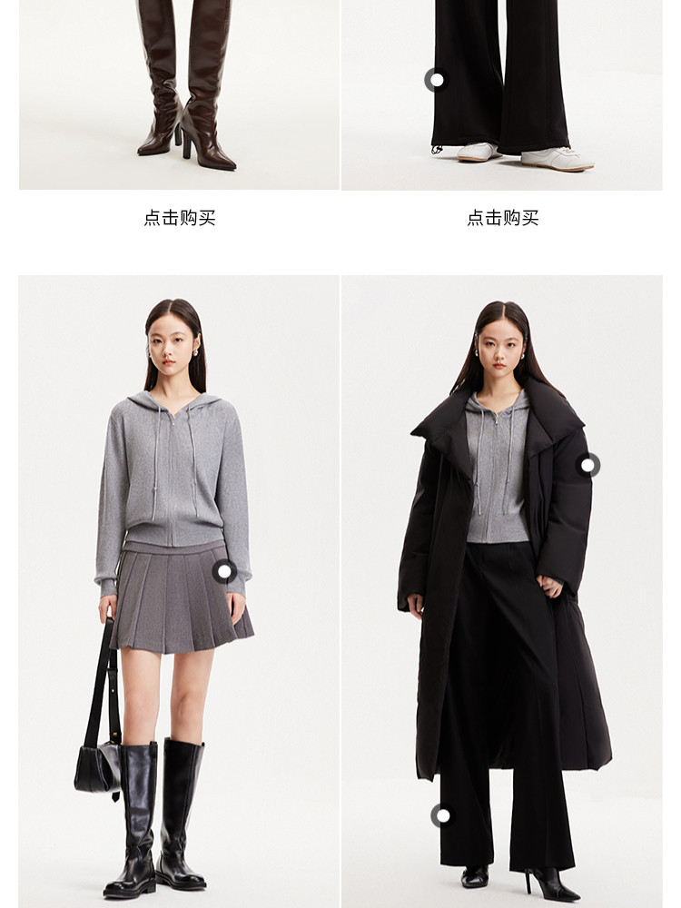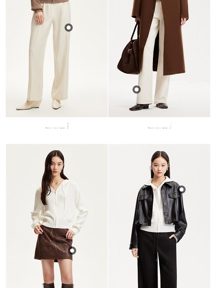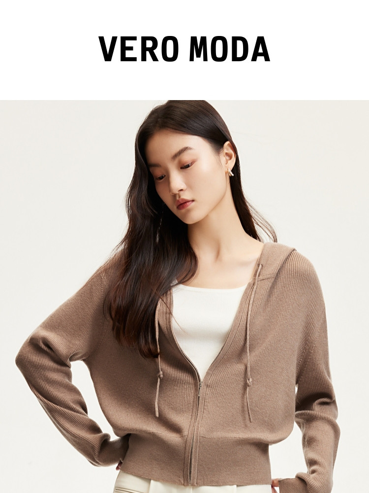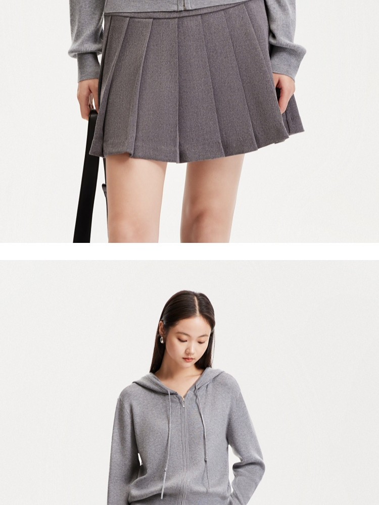 商品名称:针织衫女早含羊毛竖坑条连帽针织开衫简约休闲 179665