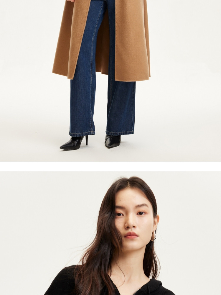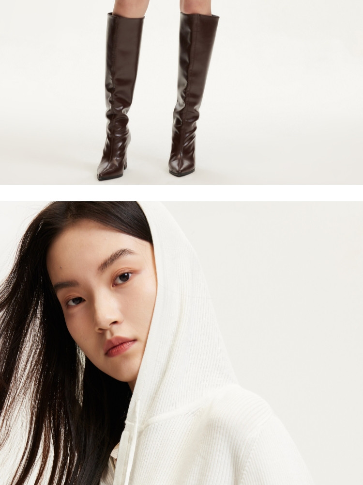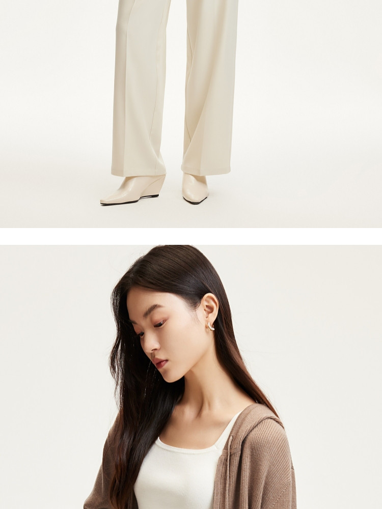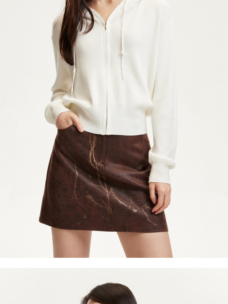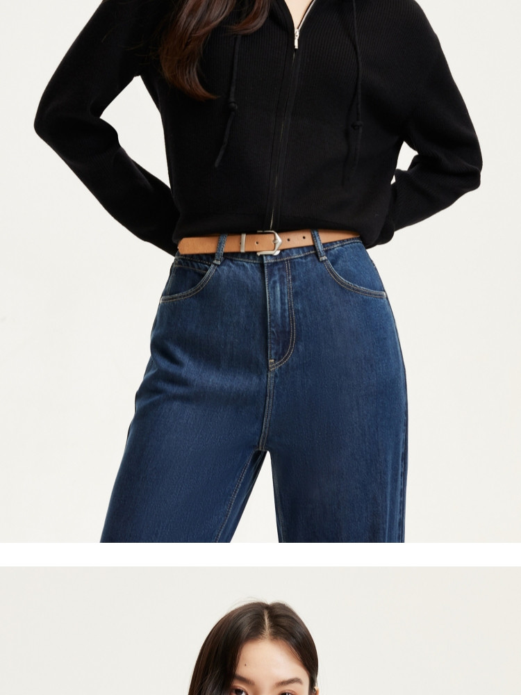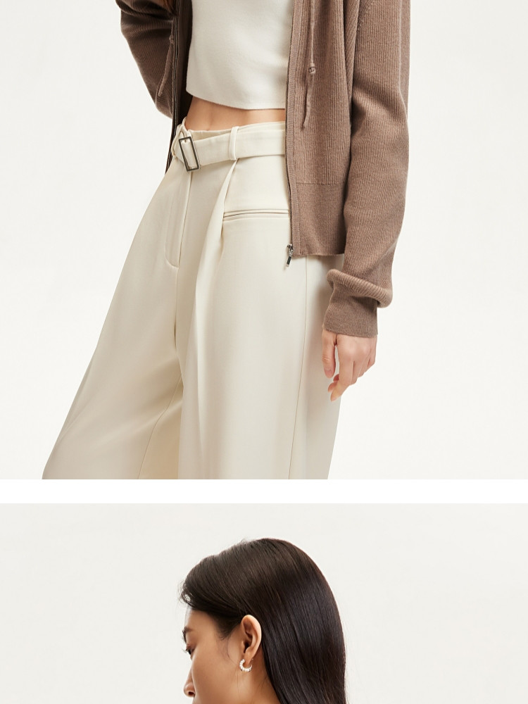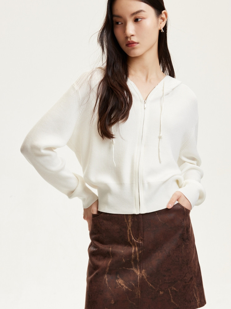 商品名称:针织衫女早含羊毛竖坑条连帽针织开衫简约休闲 179665
