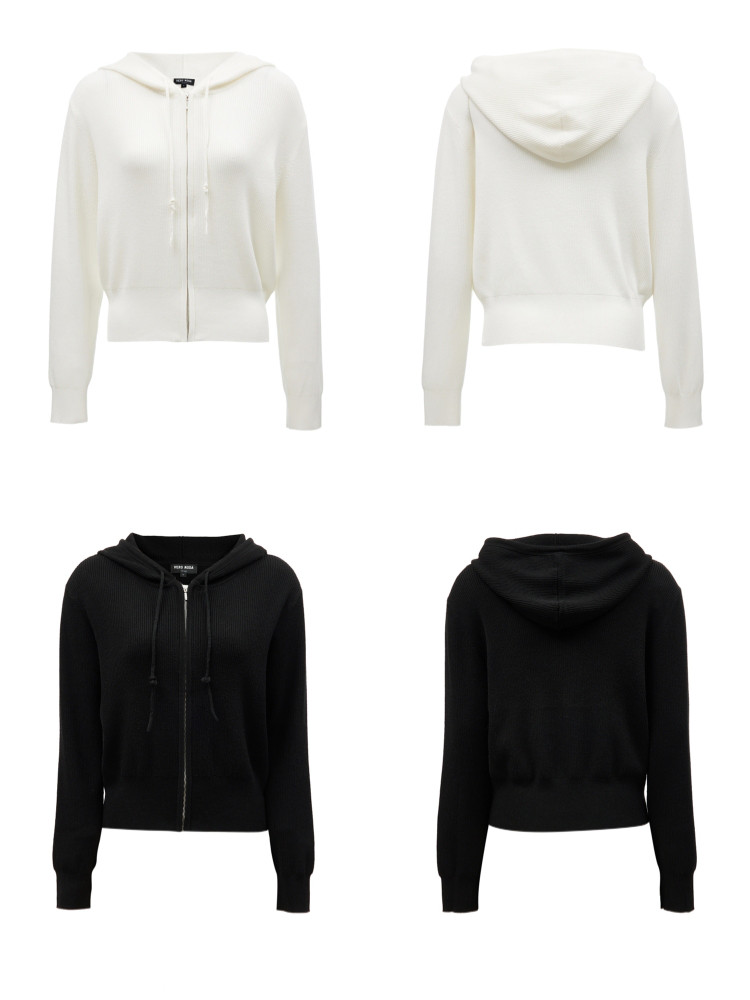 针织衫女早含羊毛竖坑条连帽针织开衫简约休闲 179665