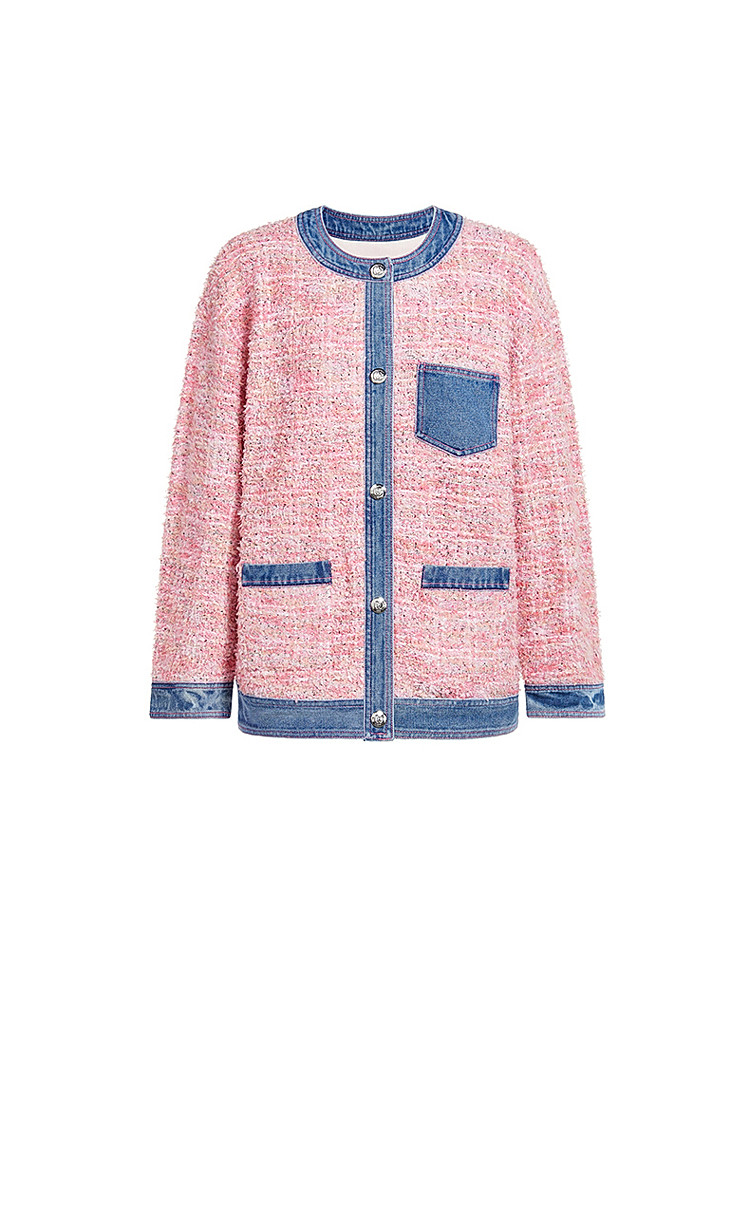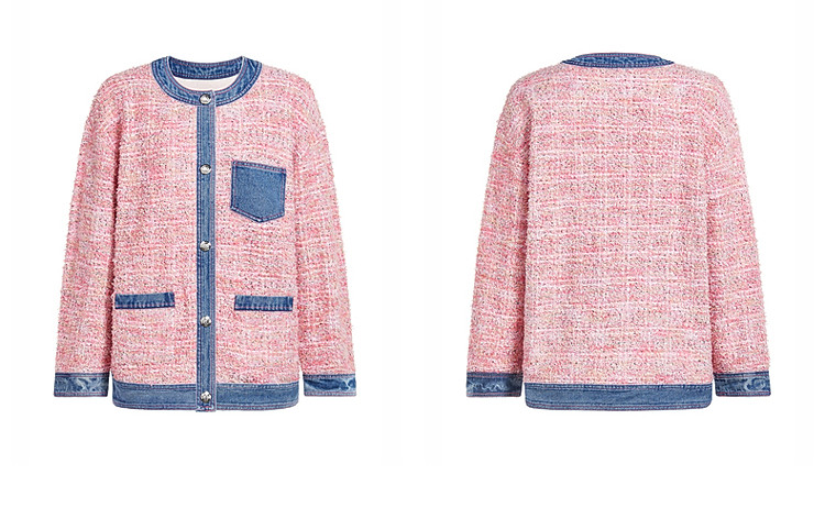 【商场同款】春装 蝴蝶纱小香风外套女撞色拼接中长款 666895