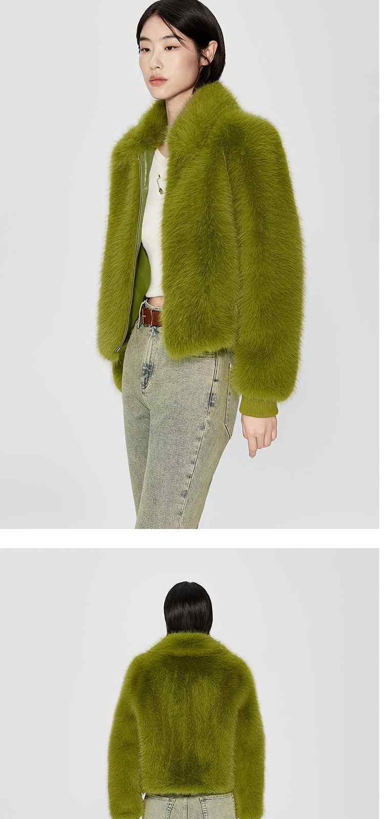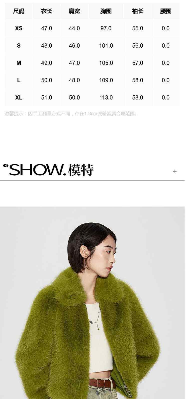 商品名称:春装 翻领软糯保暖环保皮草仿狐狸毛外套女 058703
