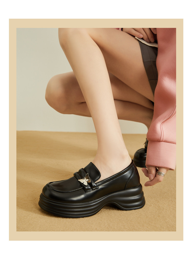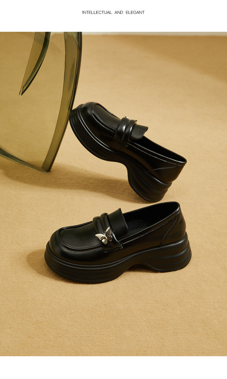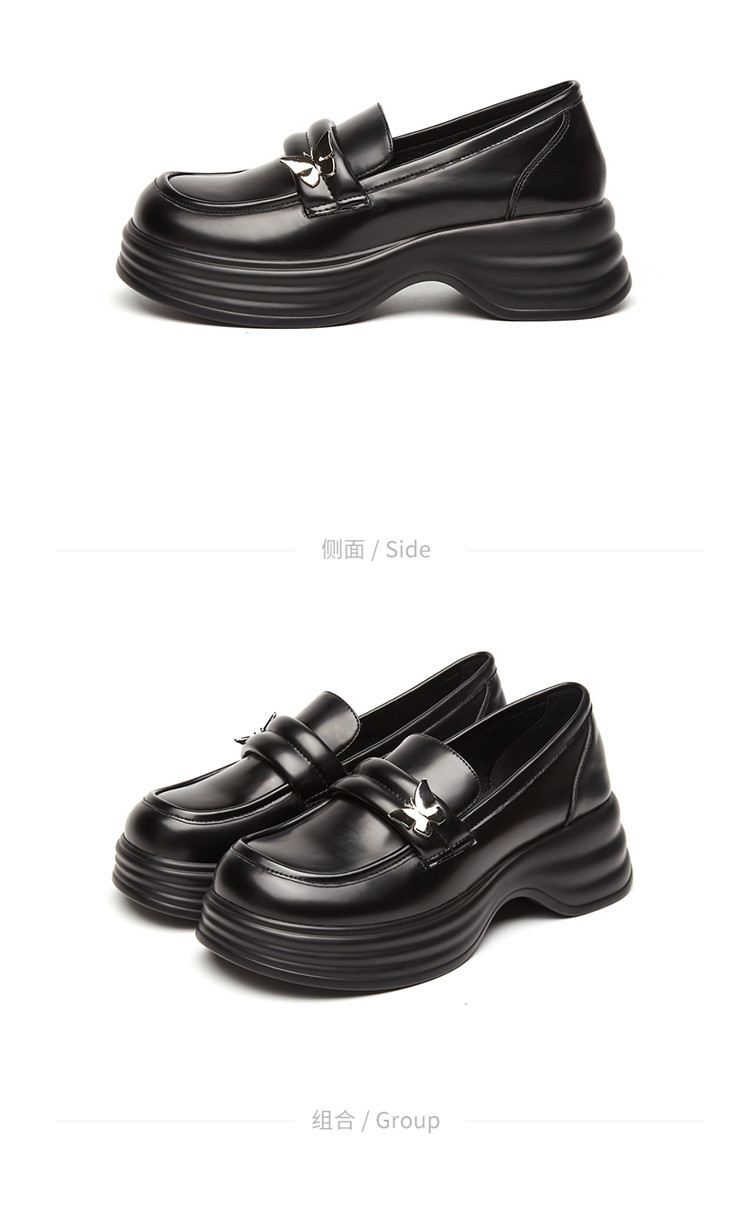 商品名称:学院风女鞋25春秋季蝴蝶扣复古英伦风jk粗跟通勤乐福鞋女单鞋 484439