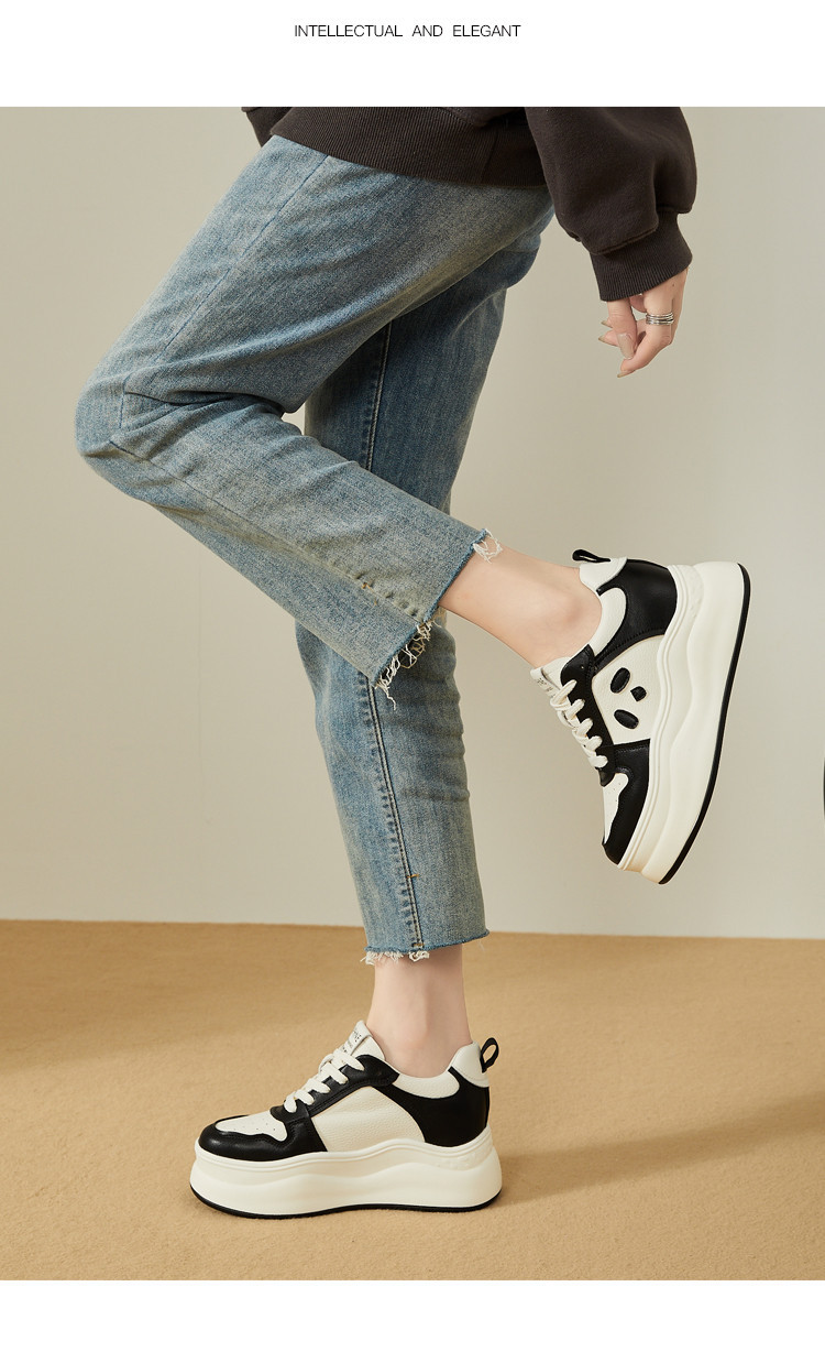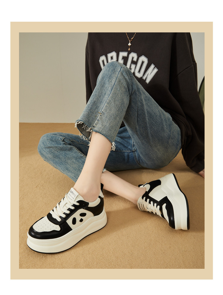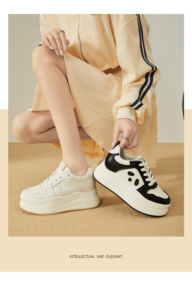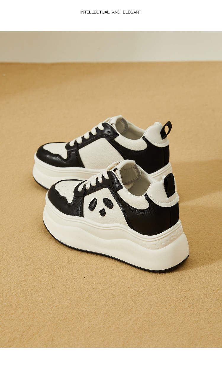 时尚熊猫鞋女秋季2025款透气板鞋厚底休闲运动小白鞋老爹鞋女 593111