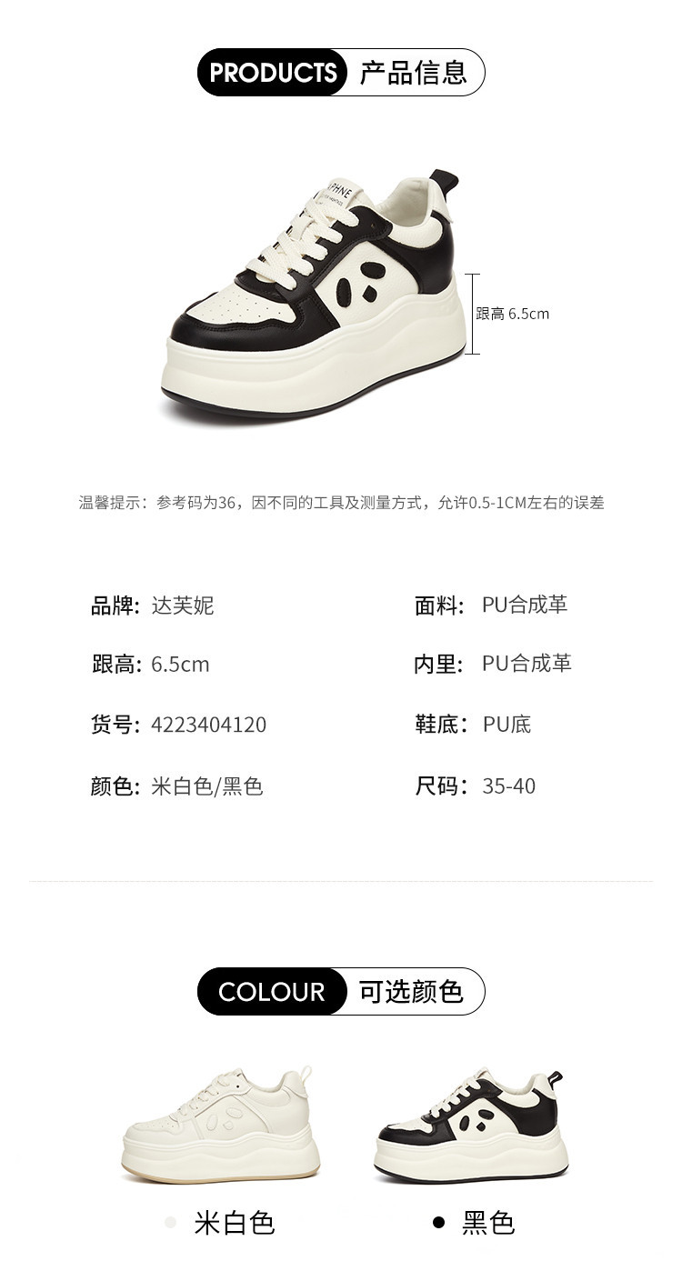 商品名称:时尚熊猫鞋女秋季2025款透气板鞋厚底休闲运动小白鞋老爹鞋女 593111