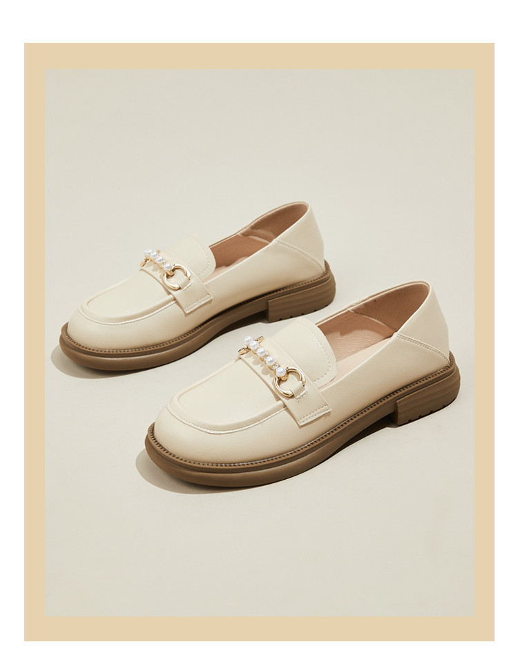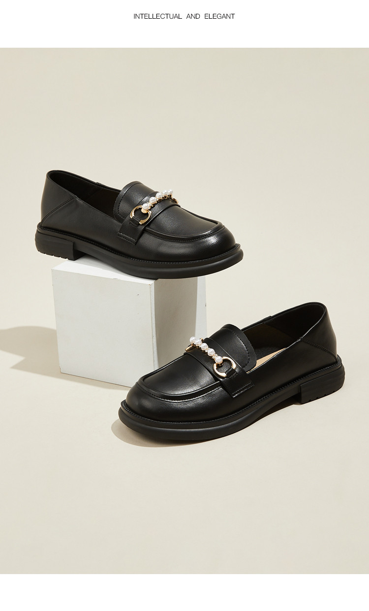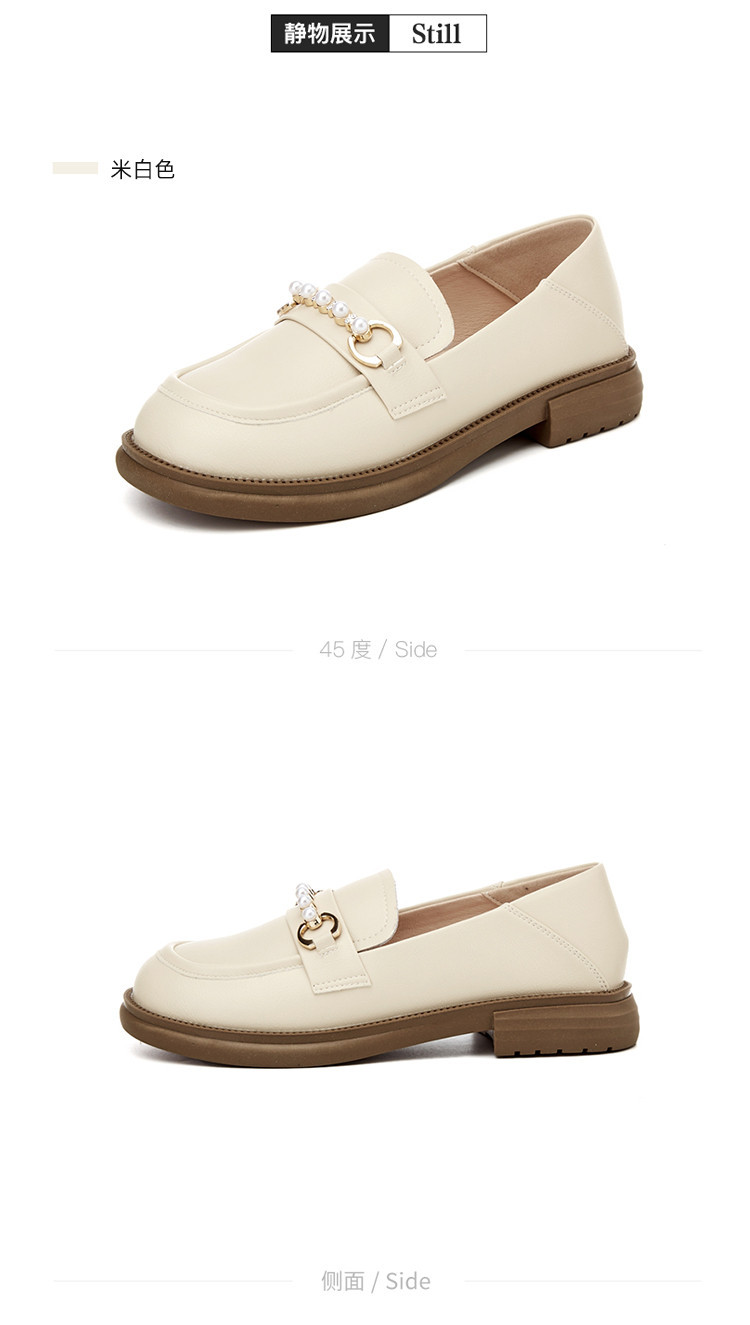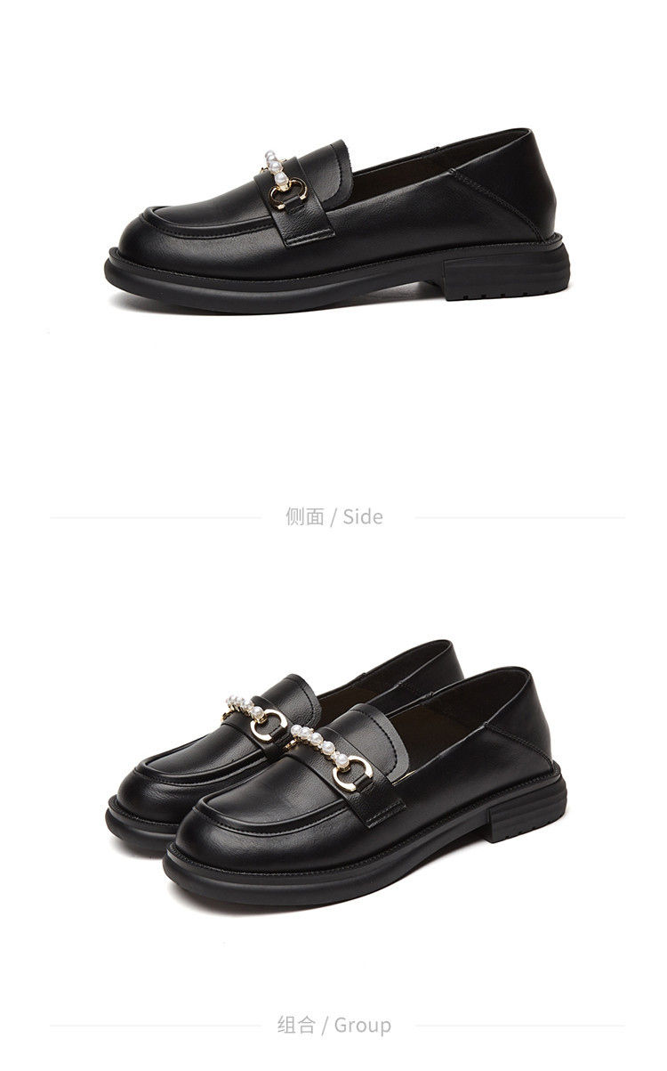 商品名称:英伦风小皮鞋女25年春季女鞋子珍珠扣百搭复古乐福鞋通勤单鞋女 225495
