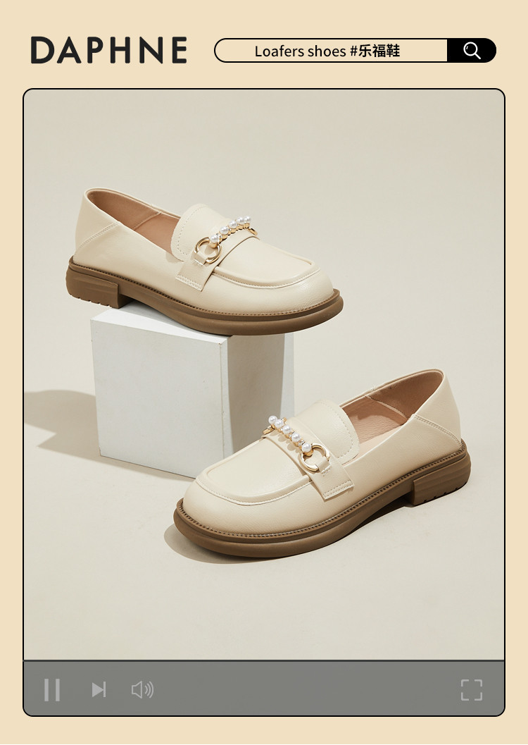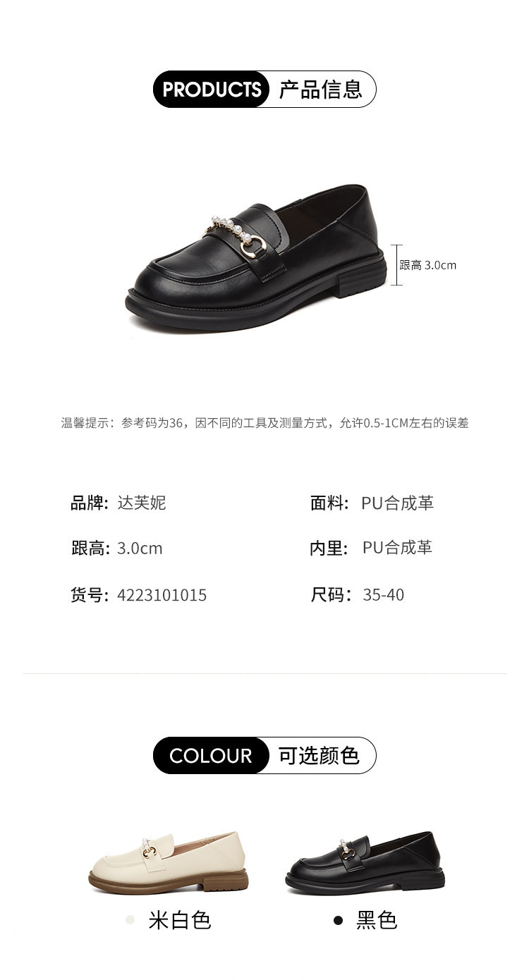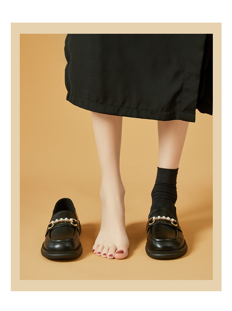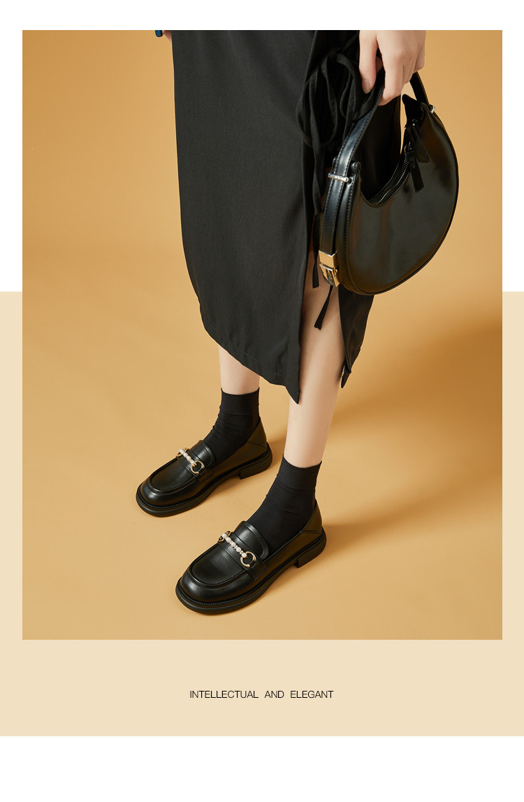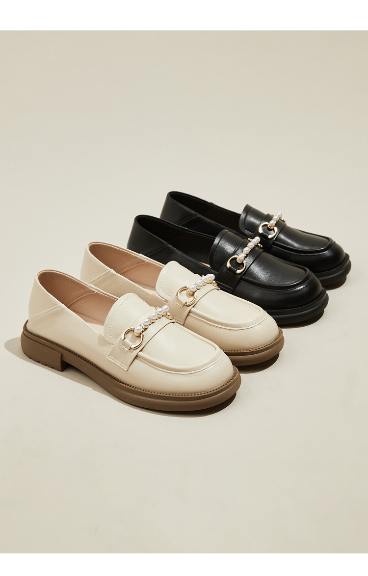 商品名称:英伦风小皮鞋女25年春季女鞋子珍珠扣百搭复古乐福鞋通勤单鞋女 225495