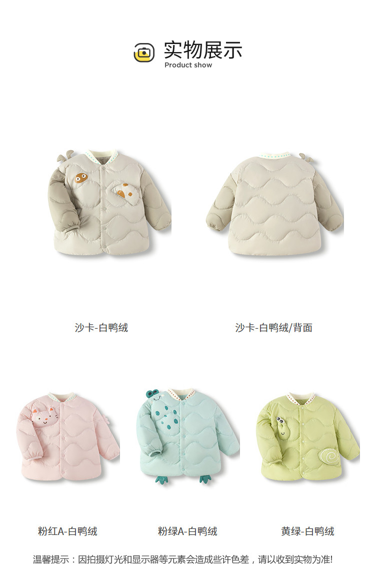 商品名称:卡通造型儿童轻薄羽绒服婴幼儿男童女童外套冬季宝宝萌上衣 679621