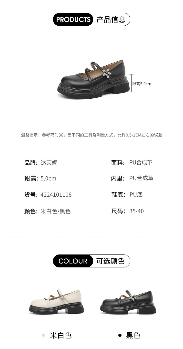 商品名称:乐福鞋女鞋子春季新款2025年甜美风通勤女鞋小个子增高单鞋女 956311