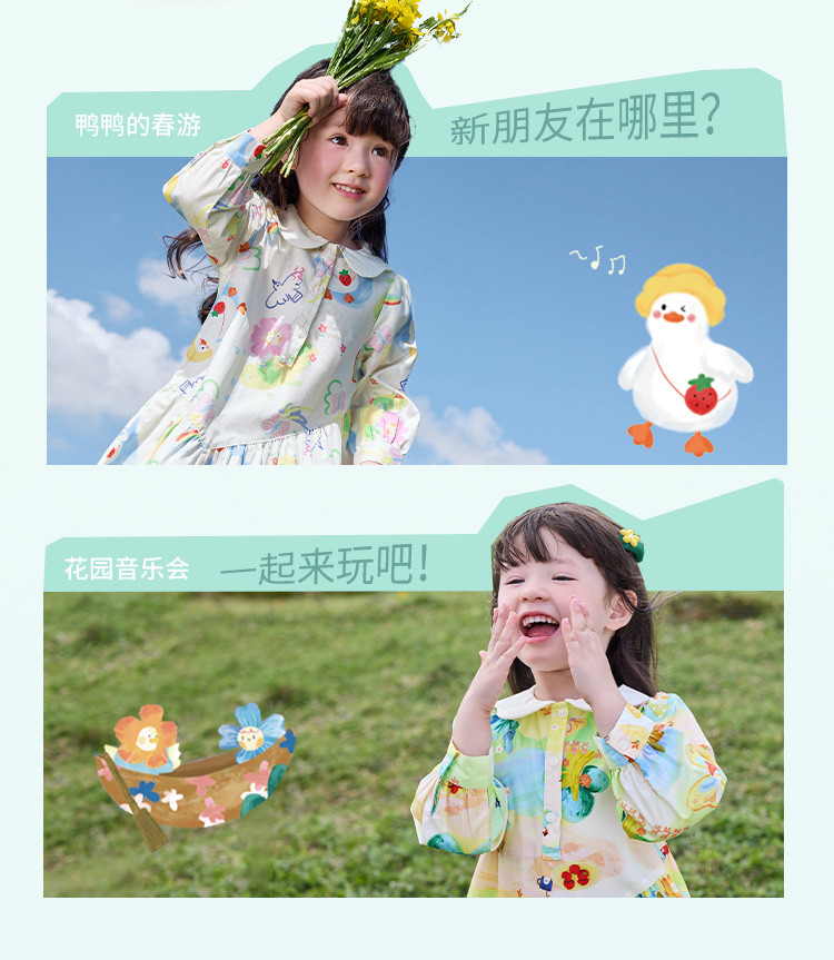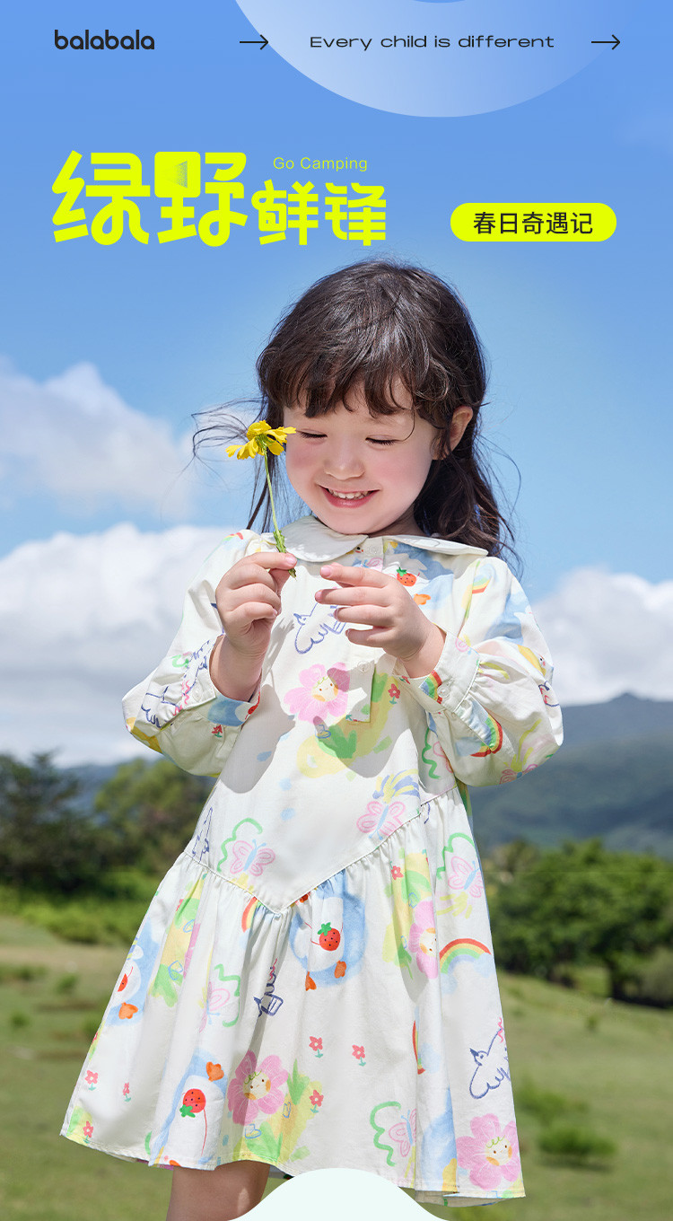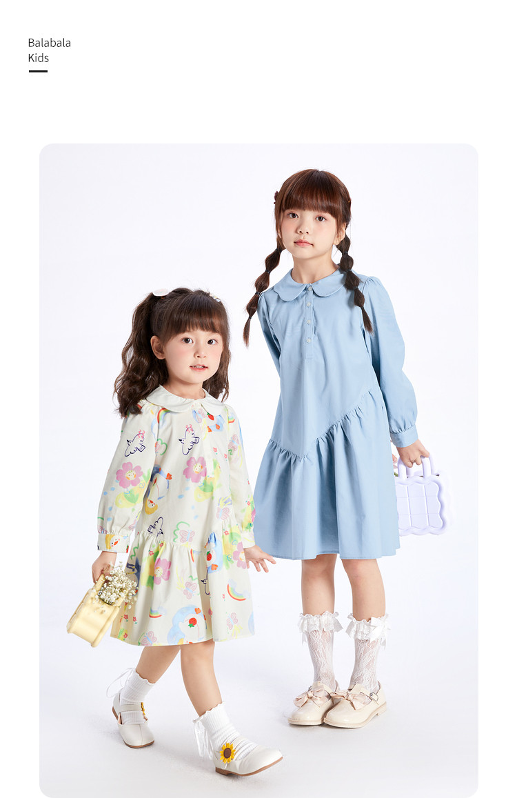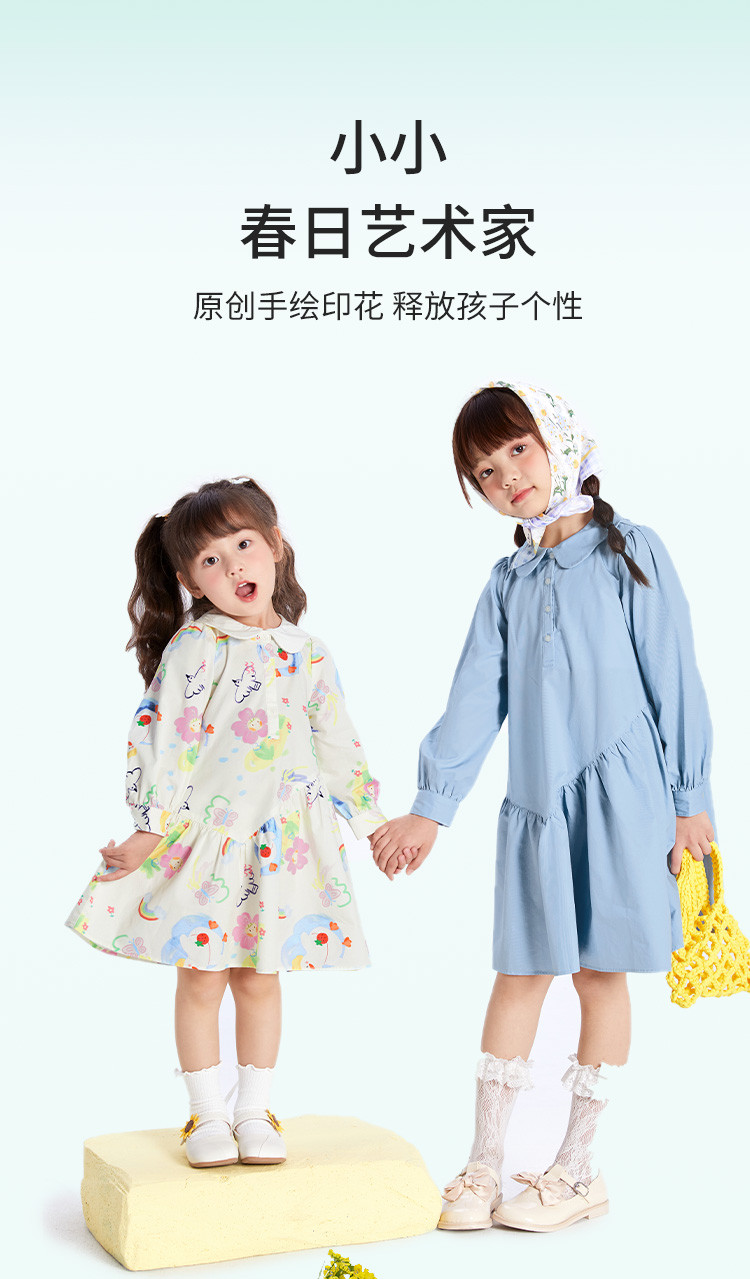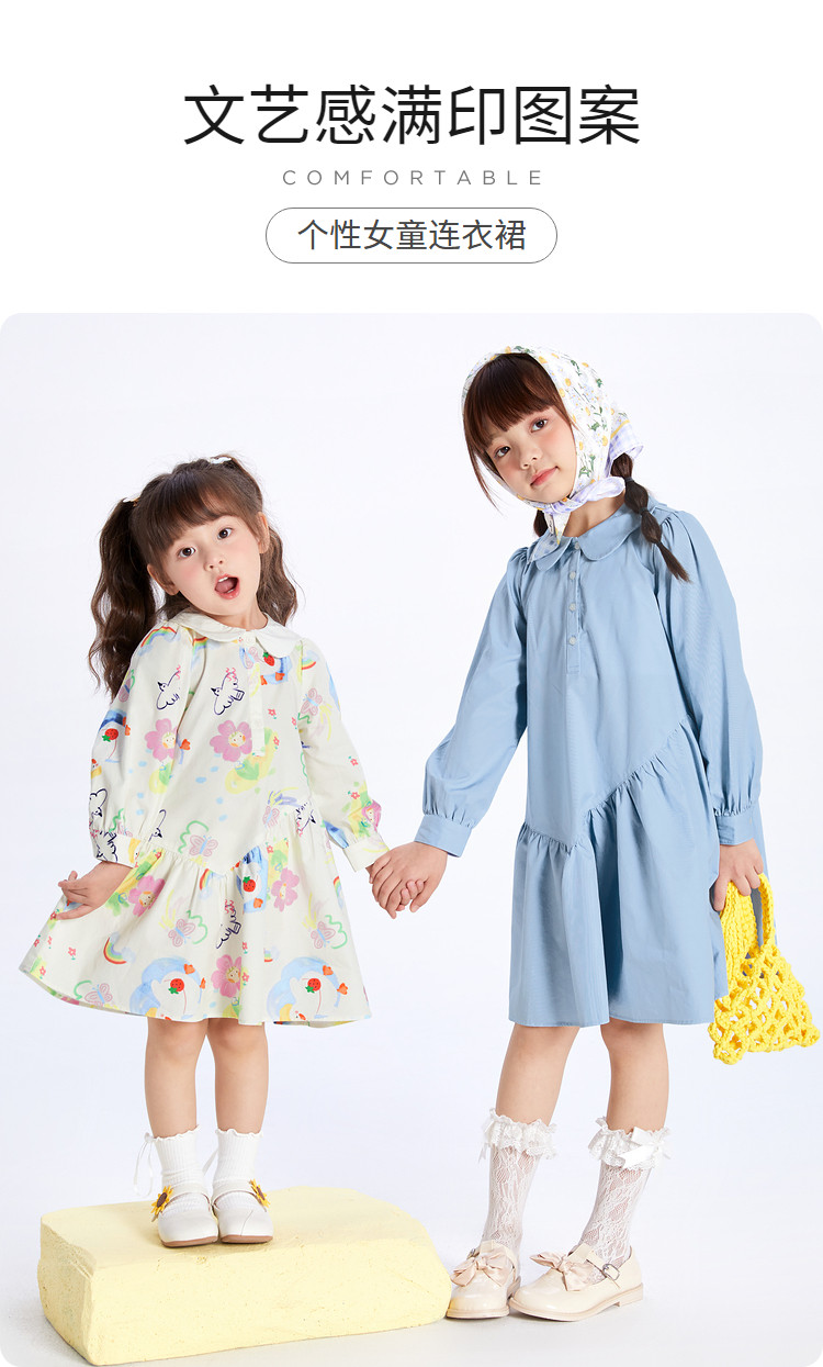 商品名称:文艺A字裙女童连衣裙春秋款儿童裙子公主裙清新翻领手绘风高级感 884677