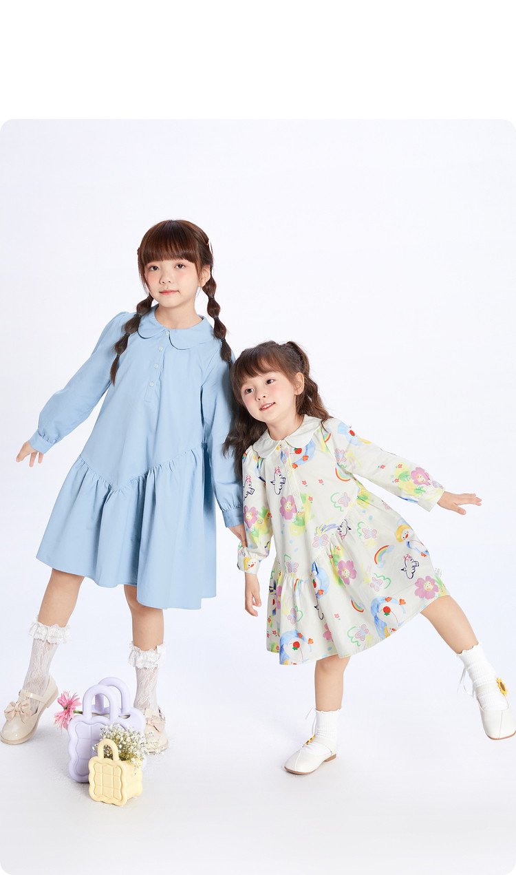 文艺A字裙女童连衣裙春秋款儿童裙子公主裙清新翻领手绘风高级感 884677