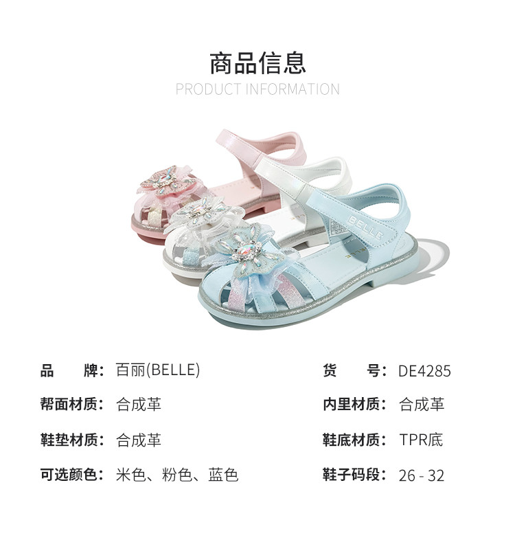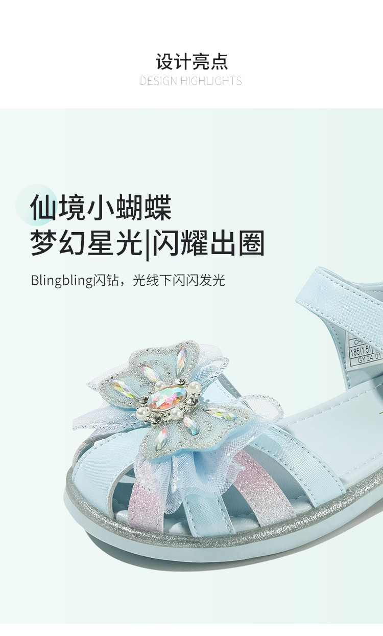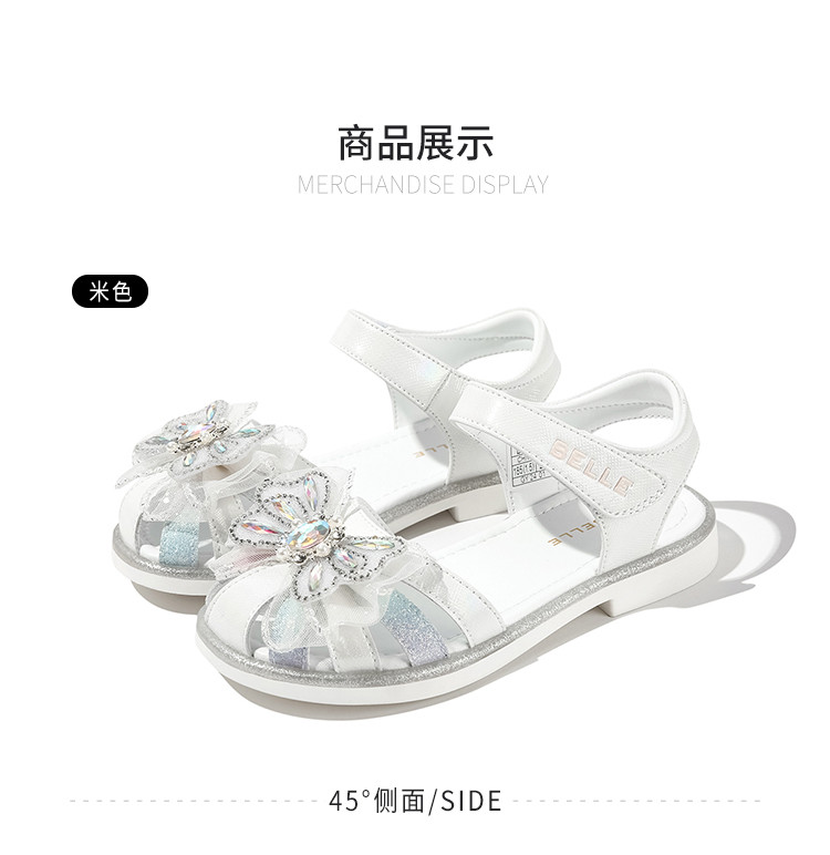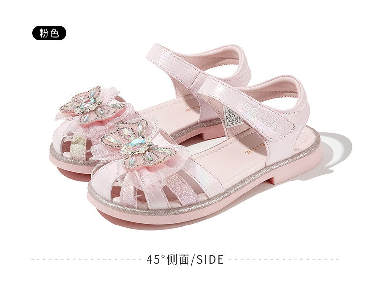 商品名称:【闪钻轻纱公主凉鞋】夏季女童凉鞋百搭透气包头校园蝴蝶结凉鞋 359819