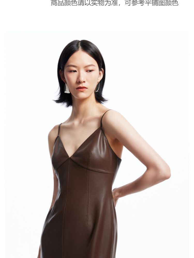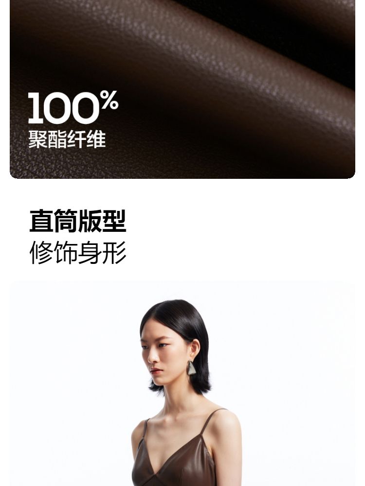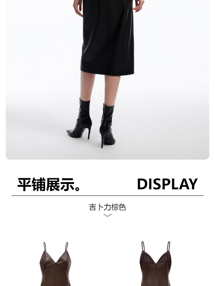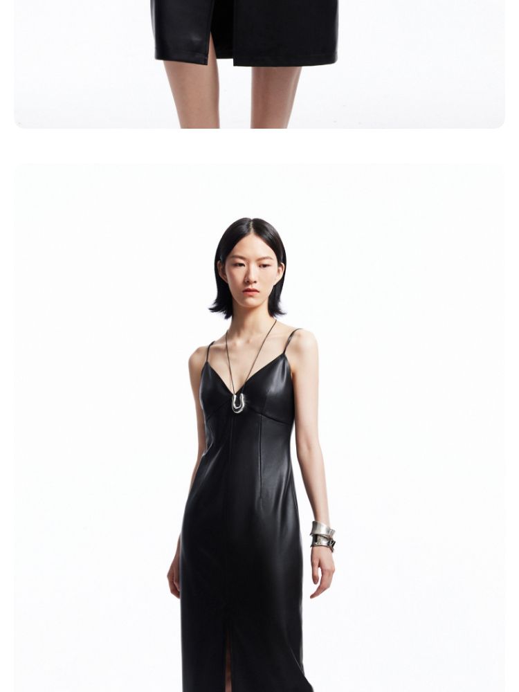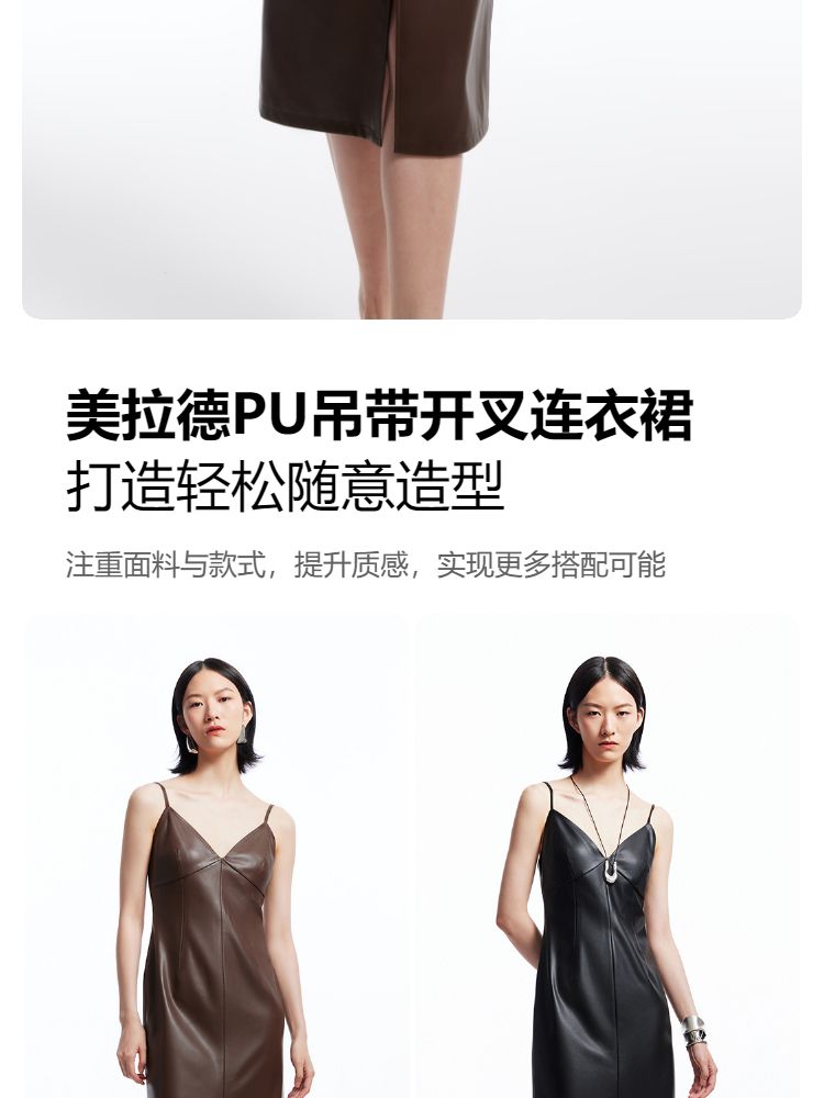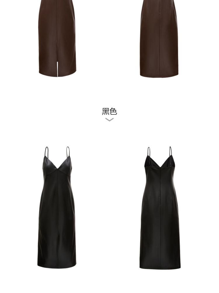 商品名称:【直筒版型】连衣裙v领露背美拉德PU吊带开叉中长裙复古 893393