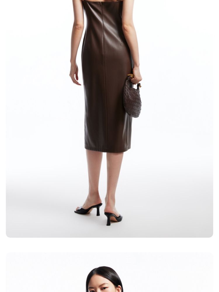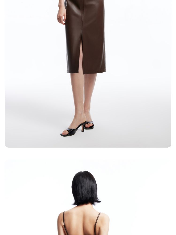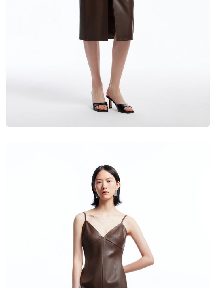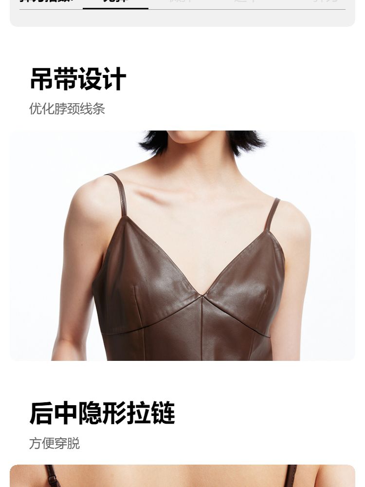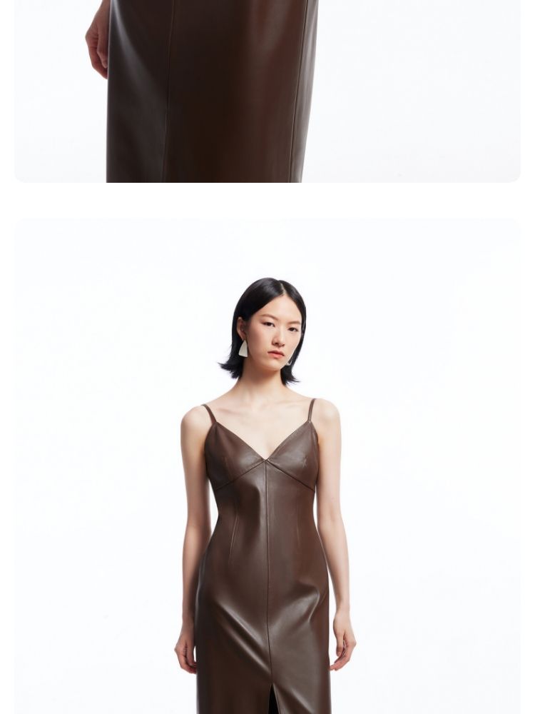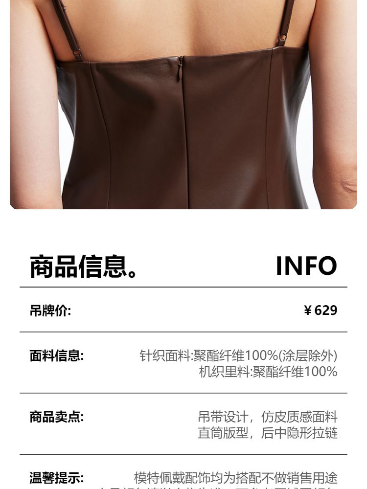 商品名称:【直筒版型】连衣裙v领露背美拉德PU吊带开叉中长裙复古 893393