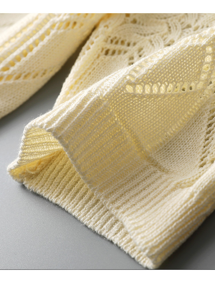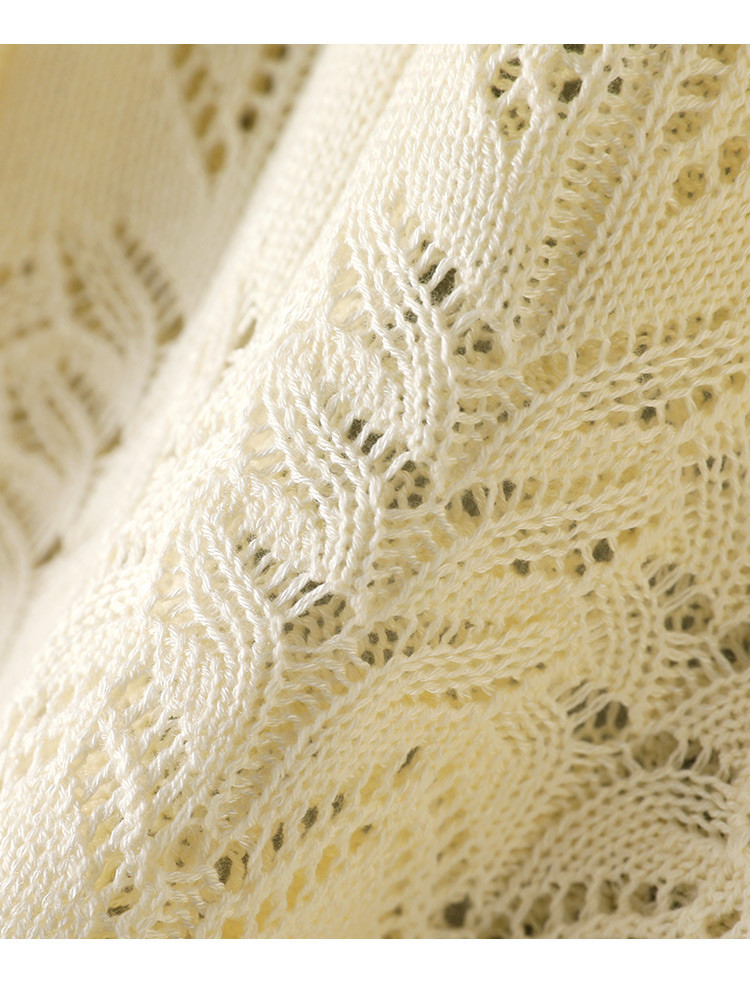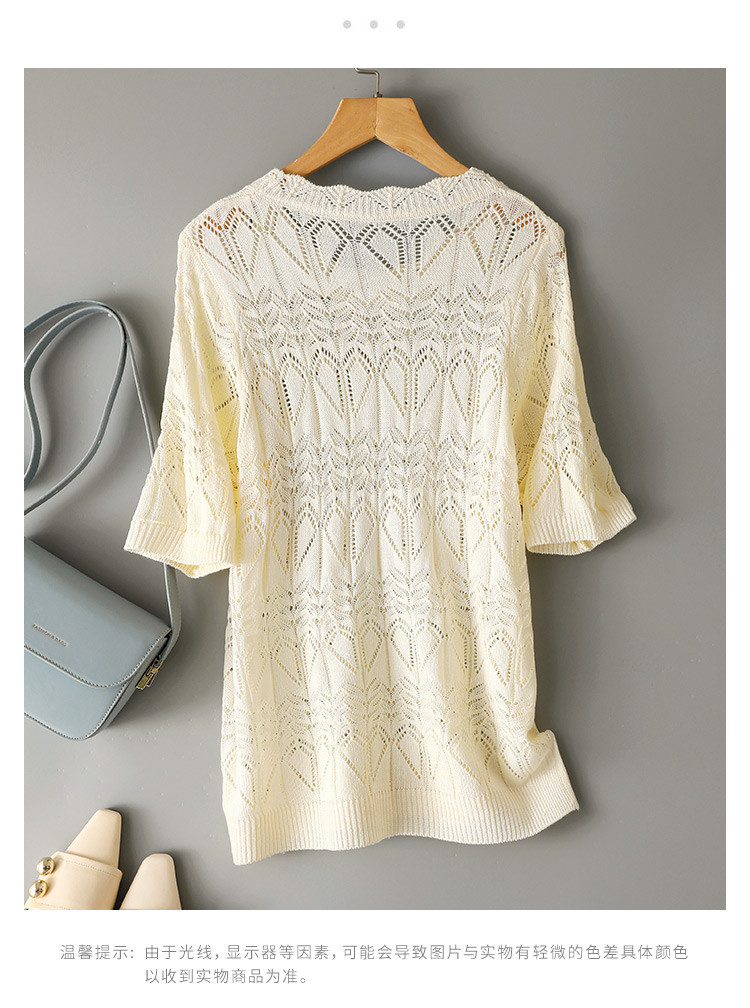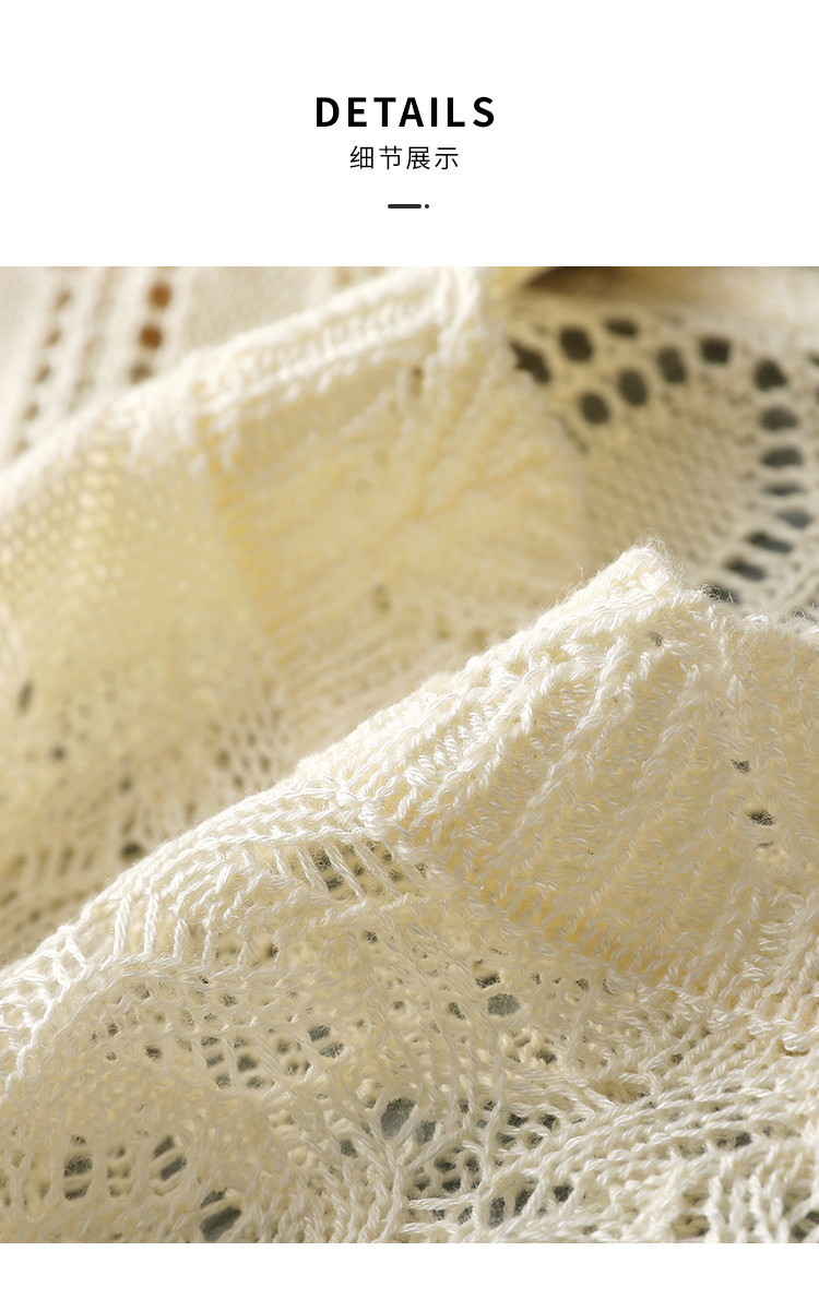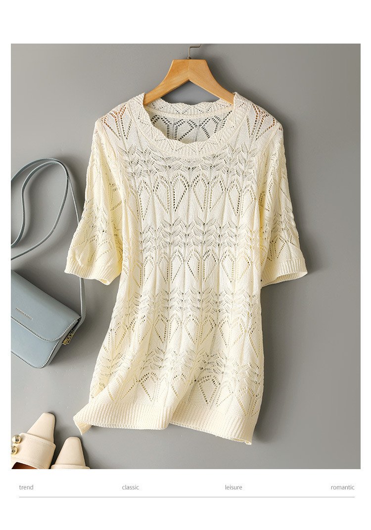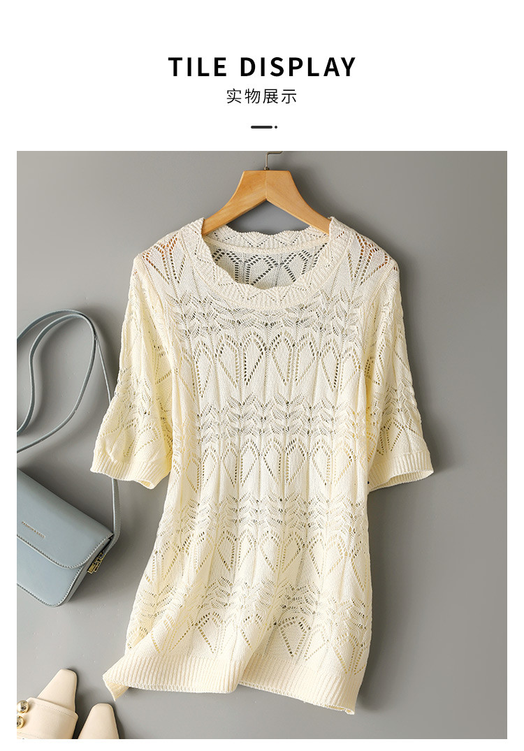 商品名称:2025夏法式薄款优雅波浪边短袖镂空针织衫慵懒高级感短袖上衣女 563145