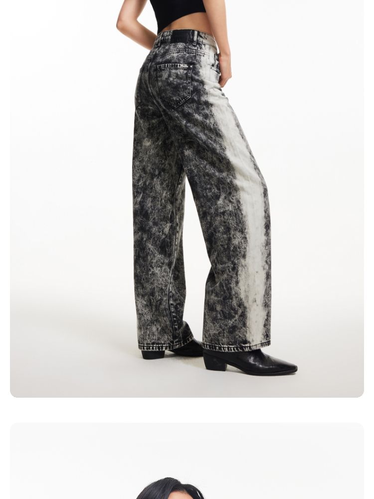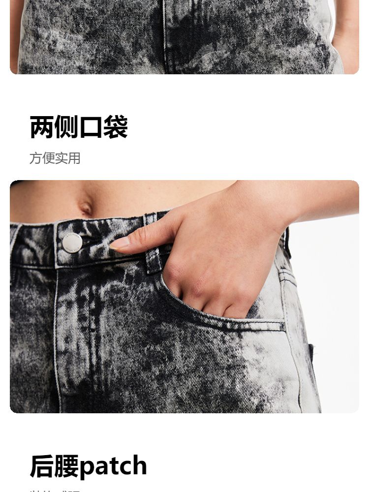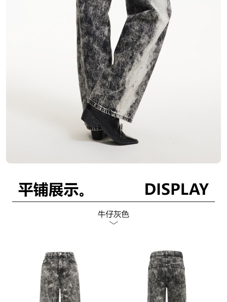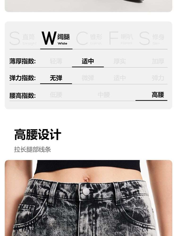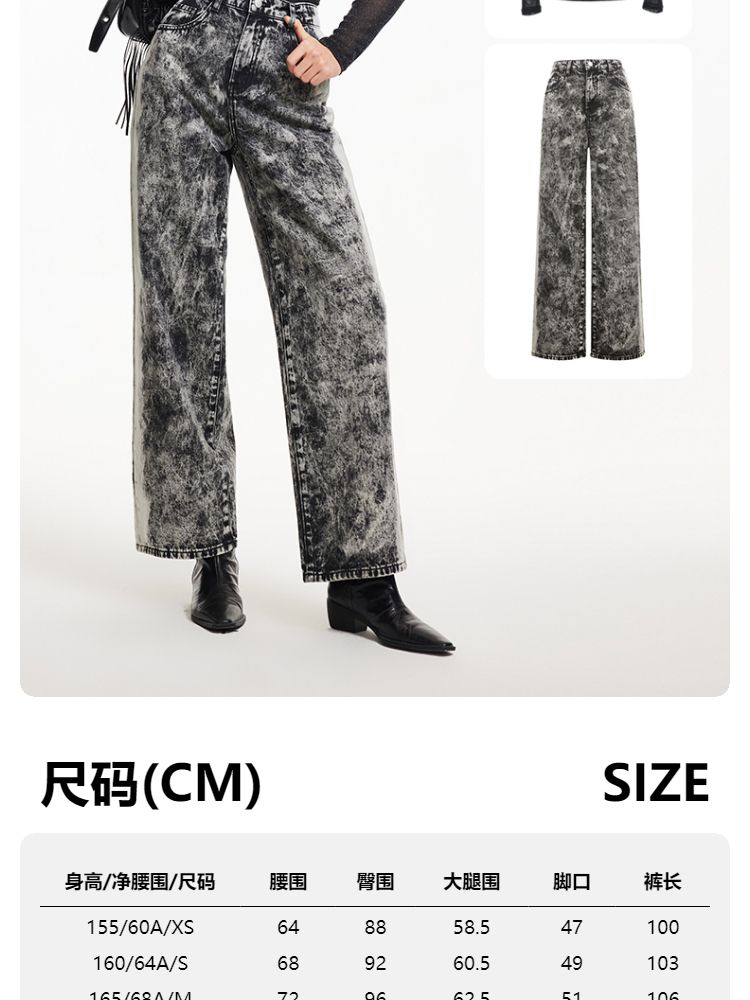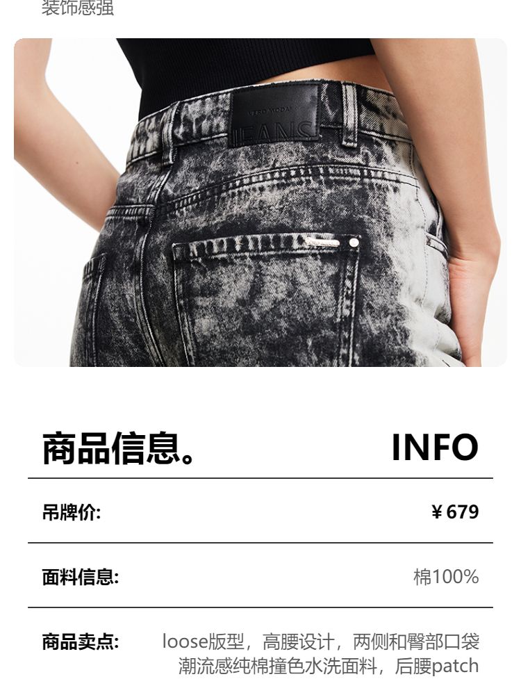 商品名称:牛仔裤女宽松高腰水洗阔腿裤休闲废土风 183761