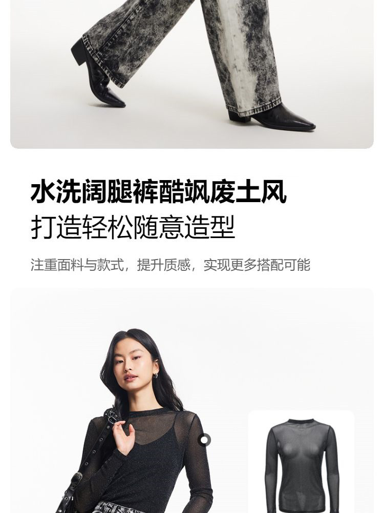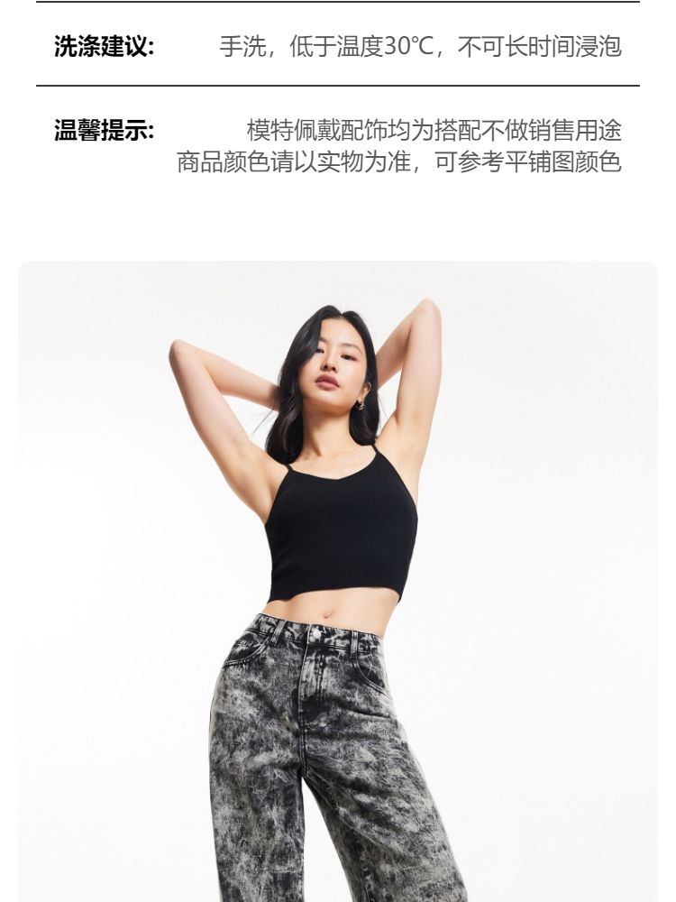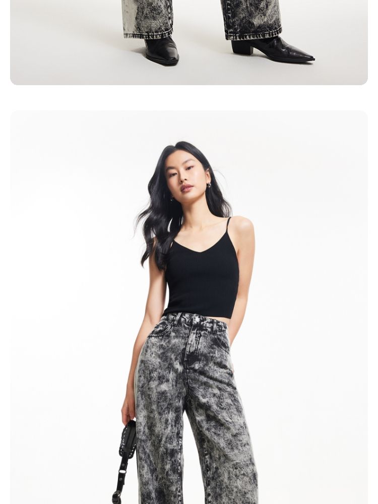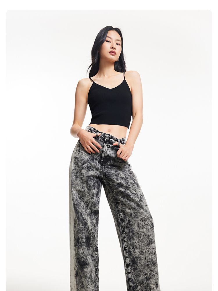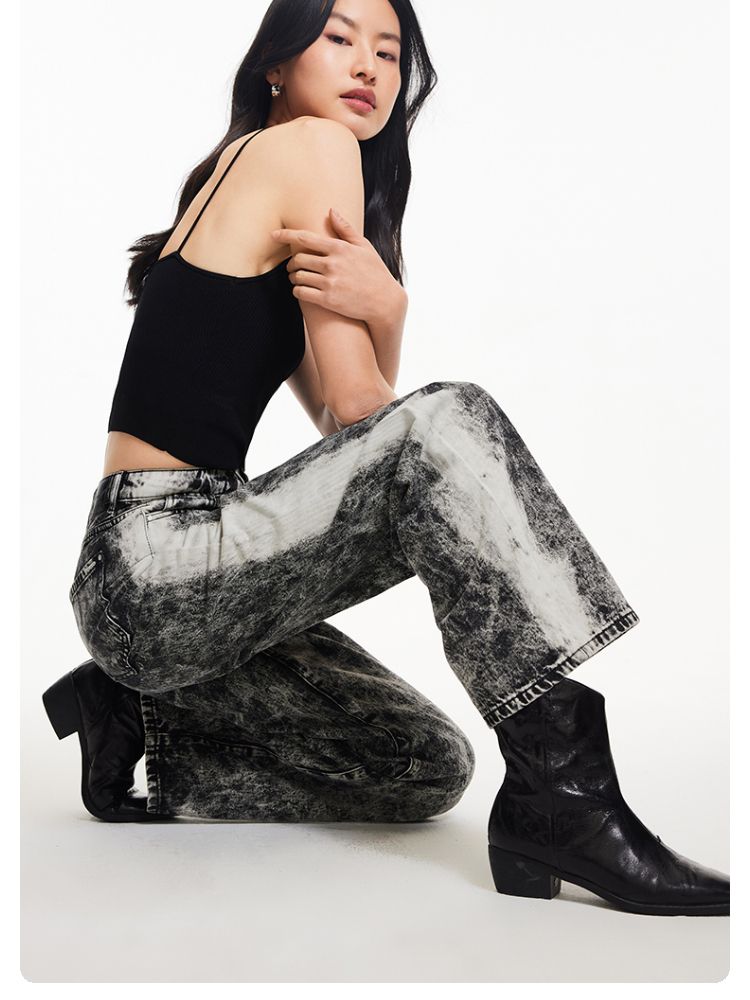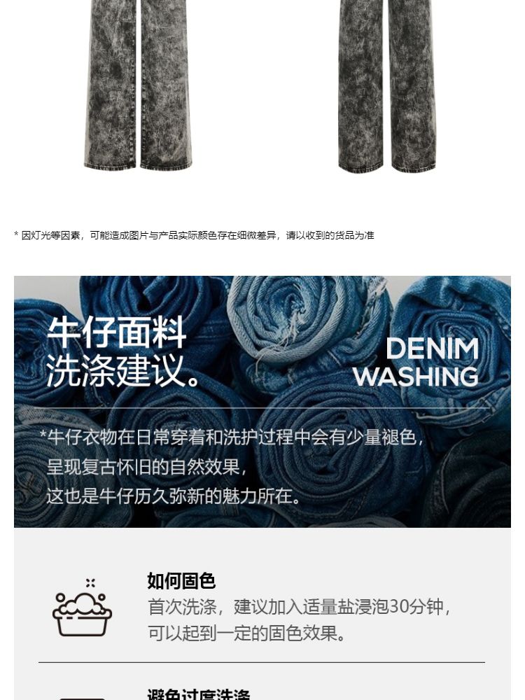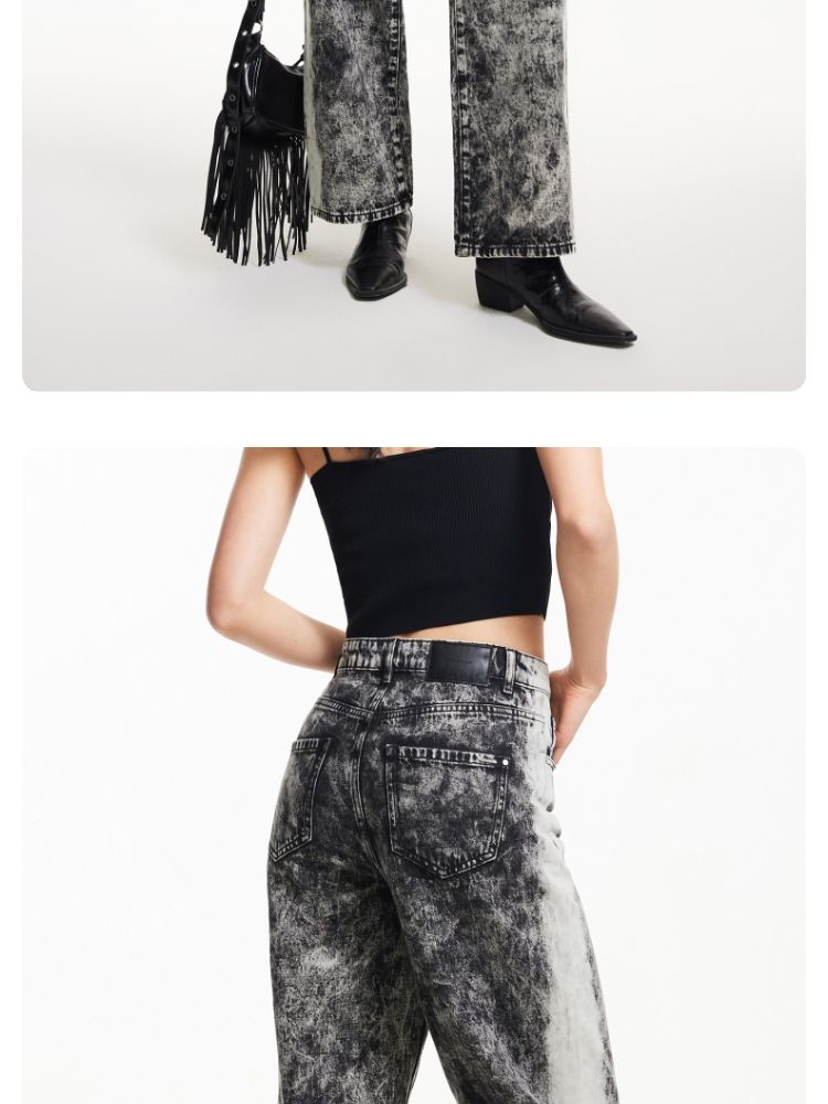 商品名称:牛仔裤女宽松高腰水洗阔腿裤休闲废土风 183761