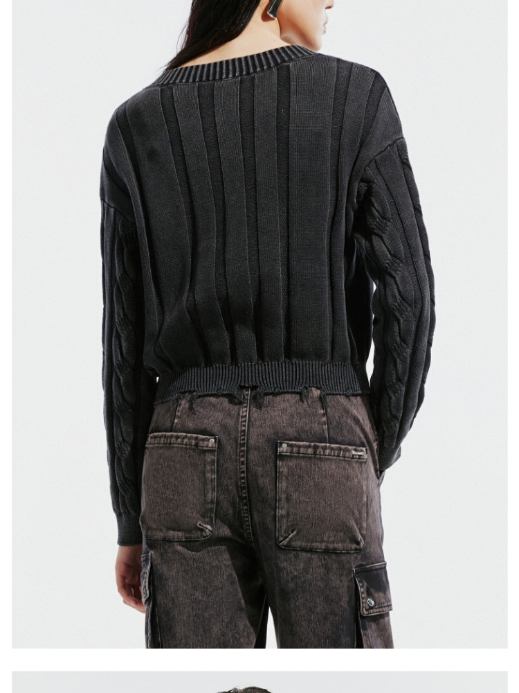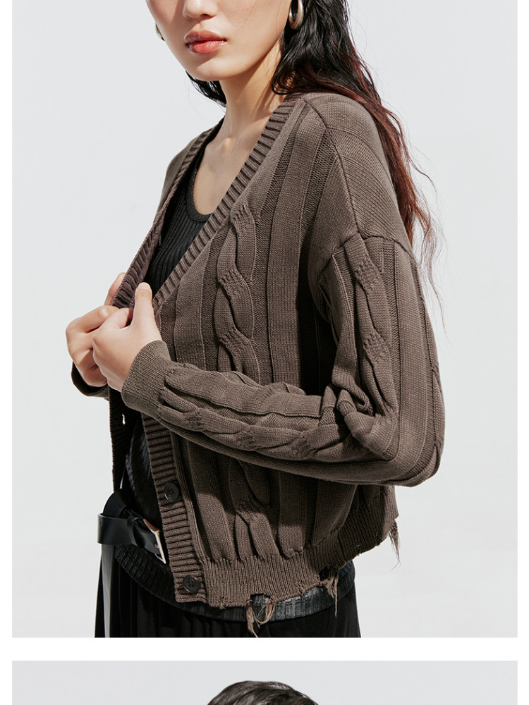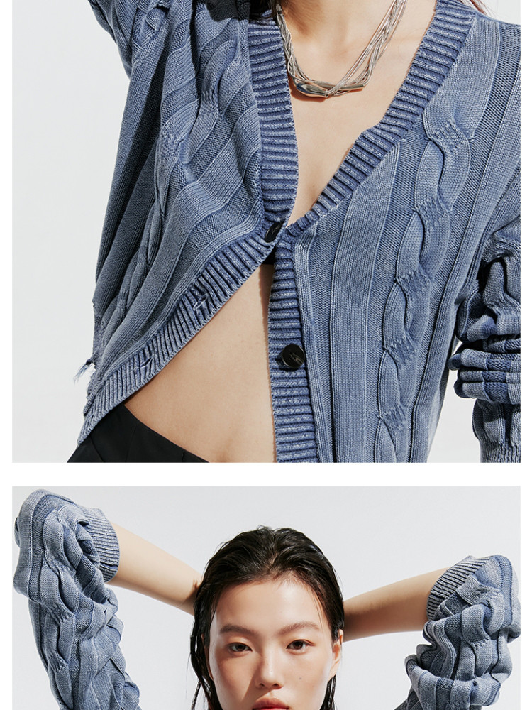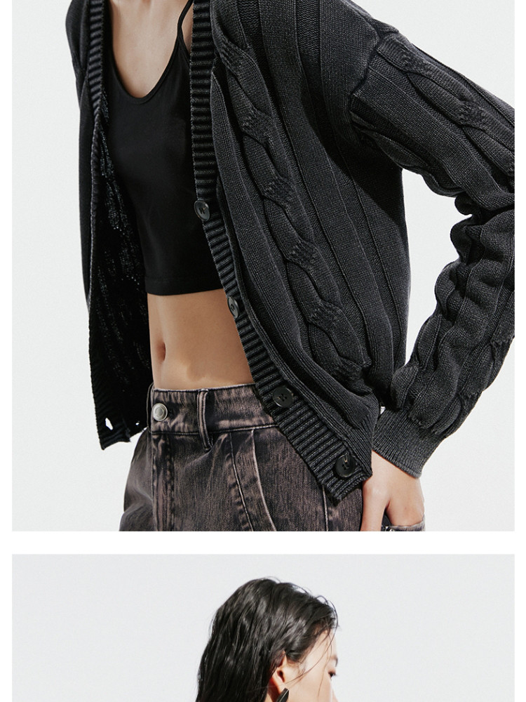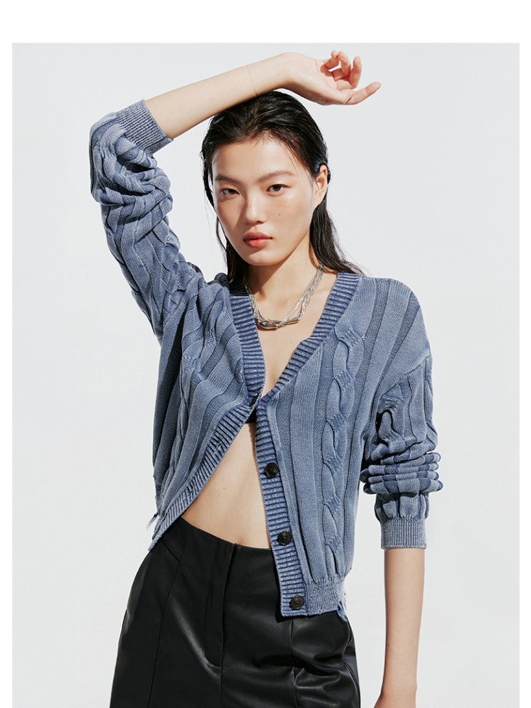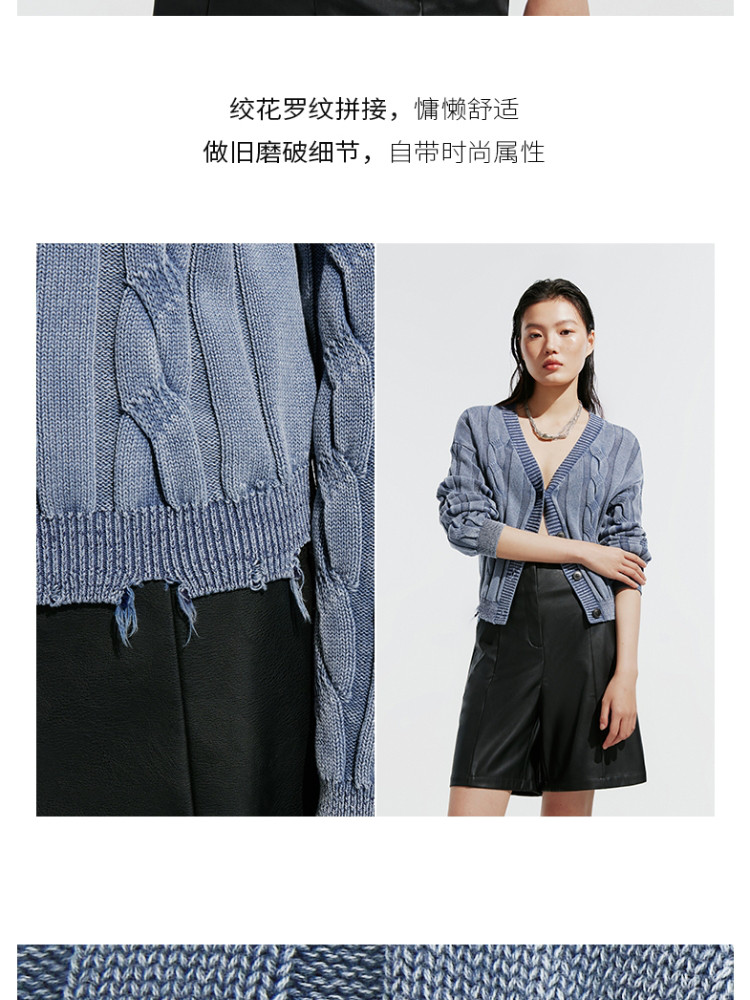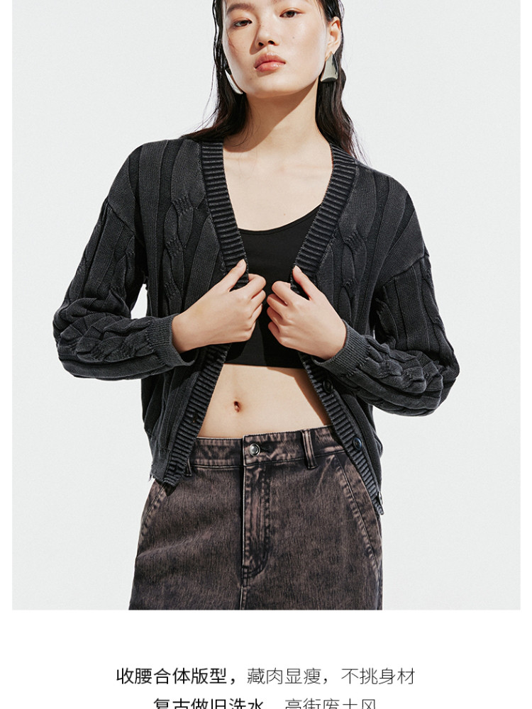 【绞花罗纹】针织衫女春秋做旧洗水麻花条纹宽松针织开衫 285329