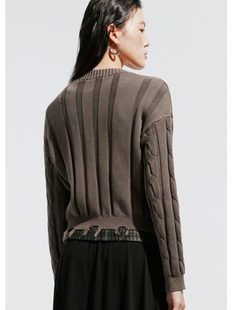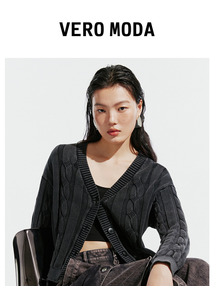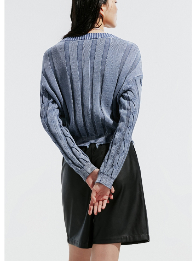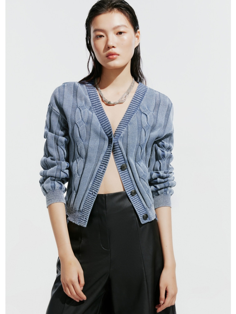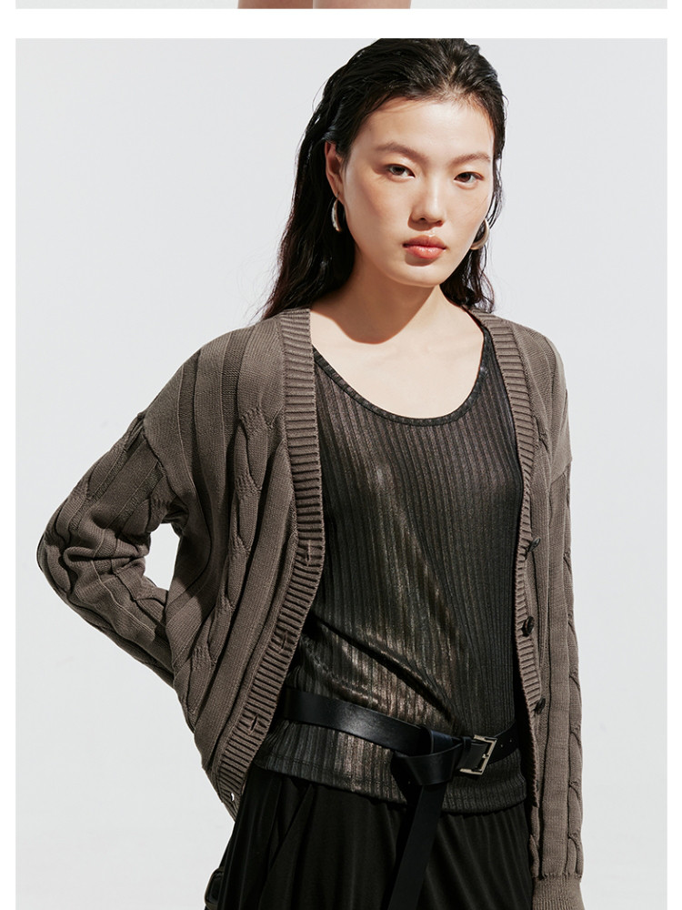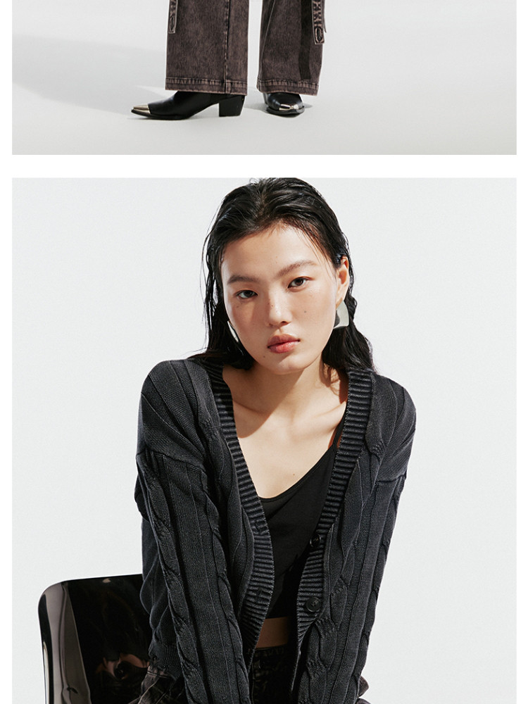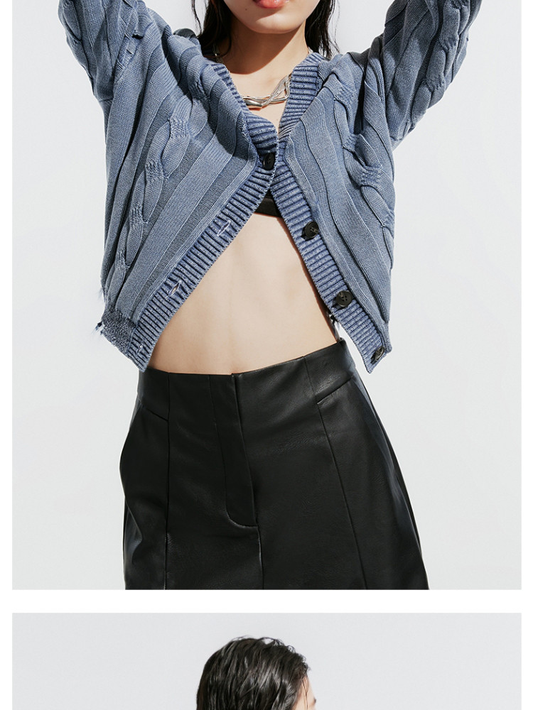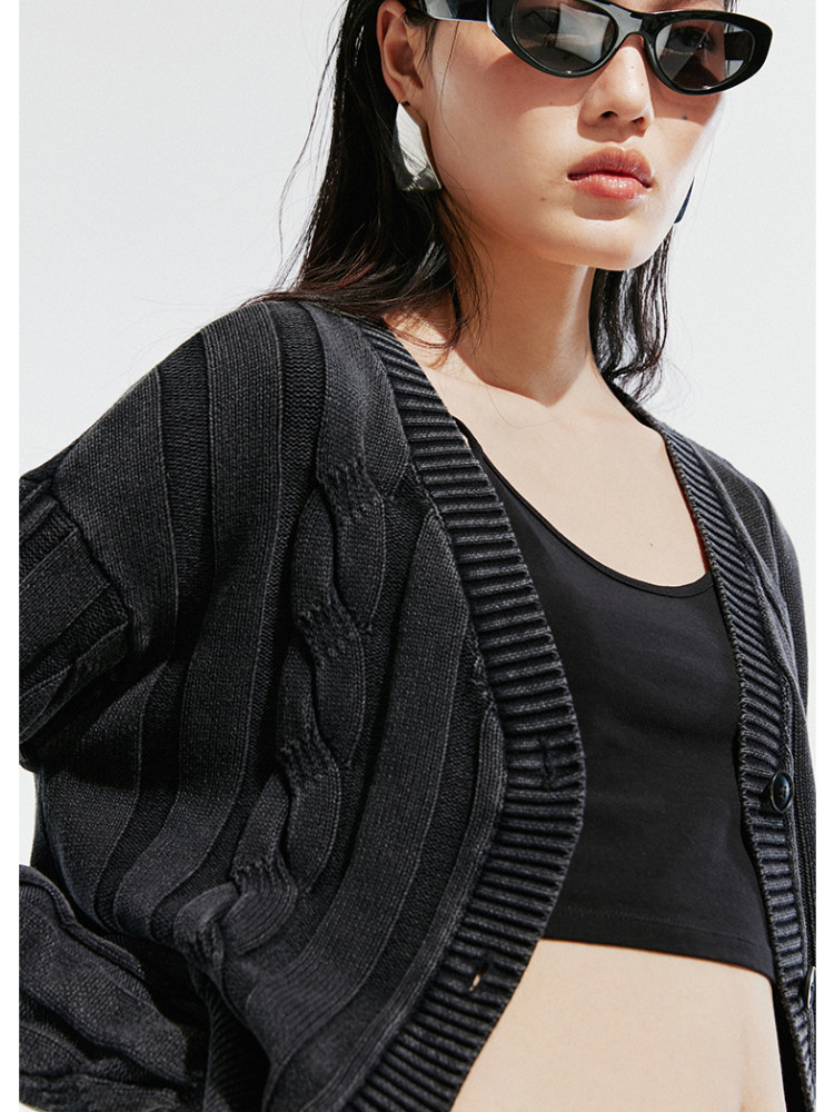 【绞花罗纹】针织衫女春秋做旧洗水麻花条纹宽松针织开衫 285329