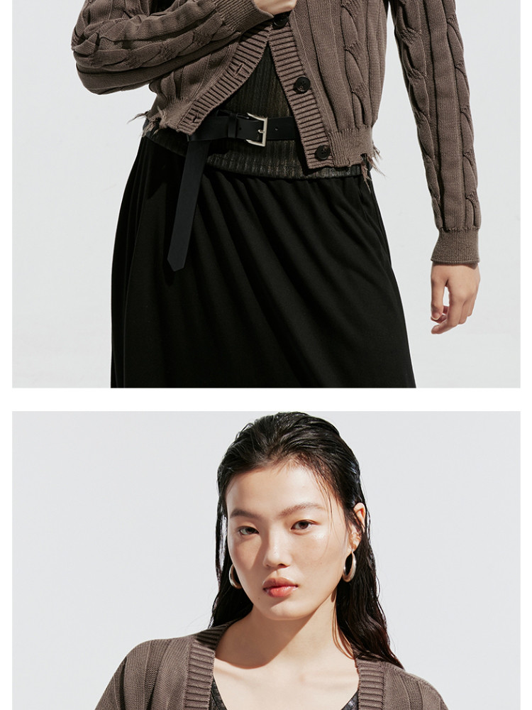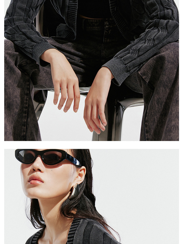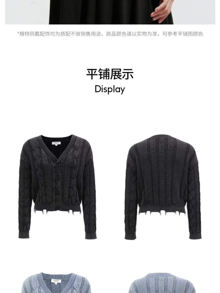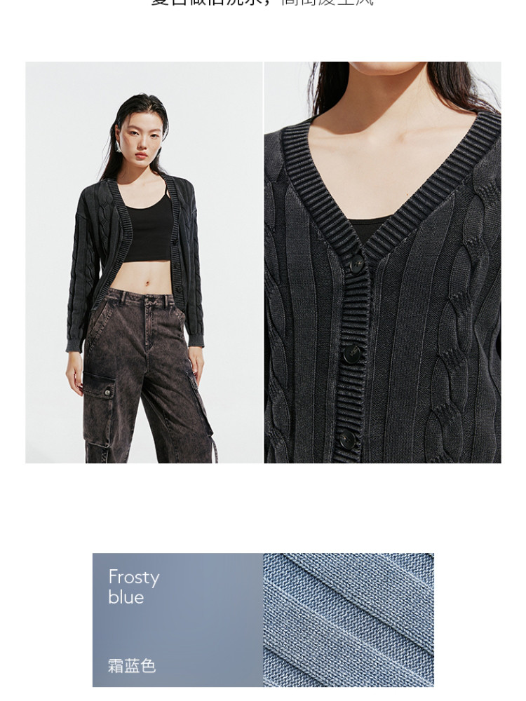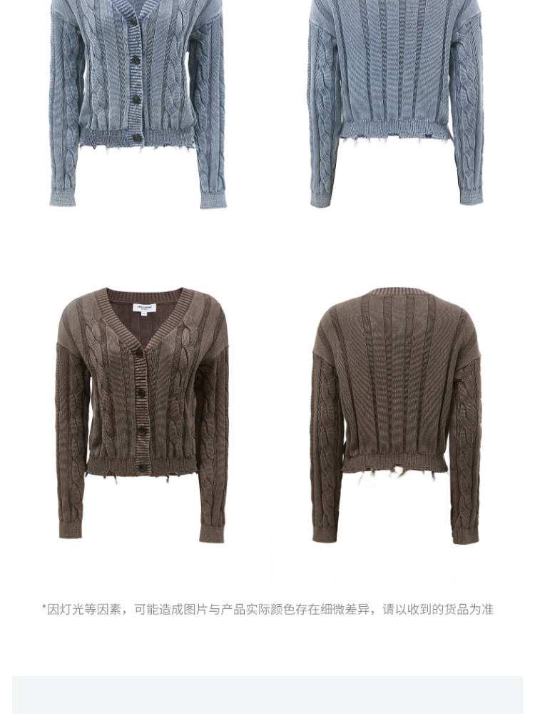 商品名称:【绞花罗纹】针织衫女春秋做旧洗水麻花条纹宽松针织开衫 285329