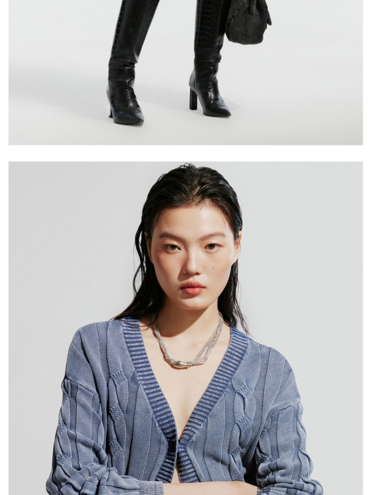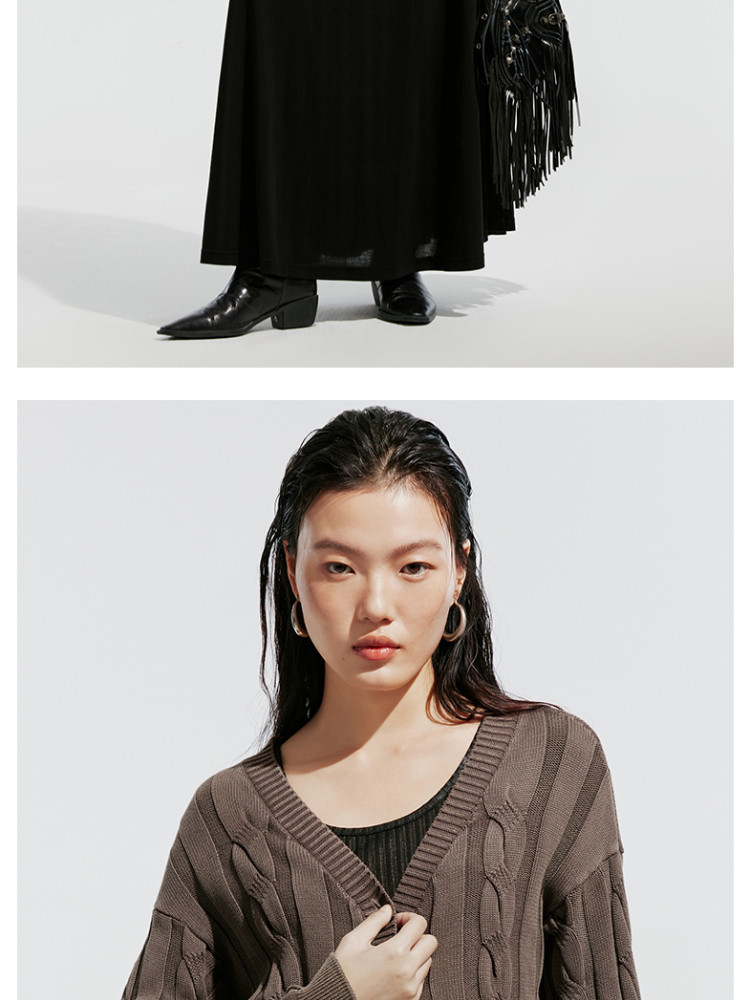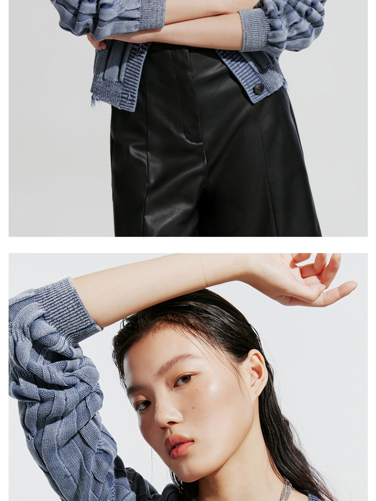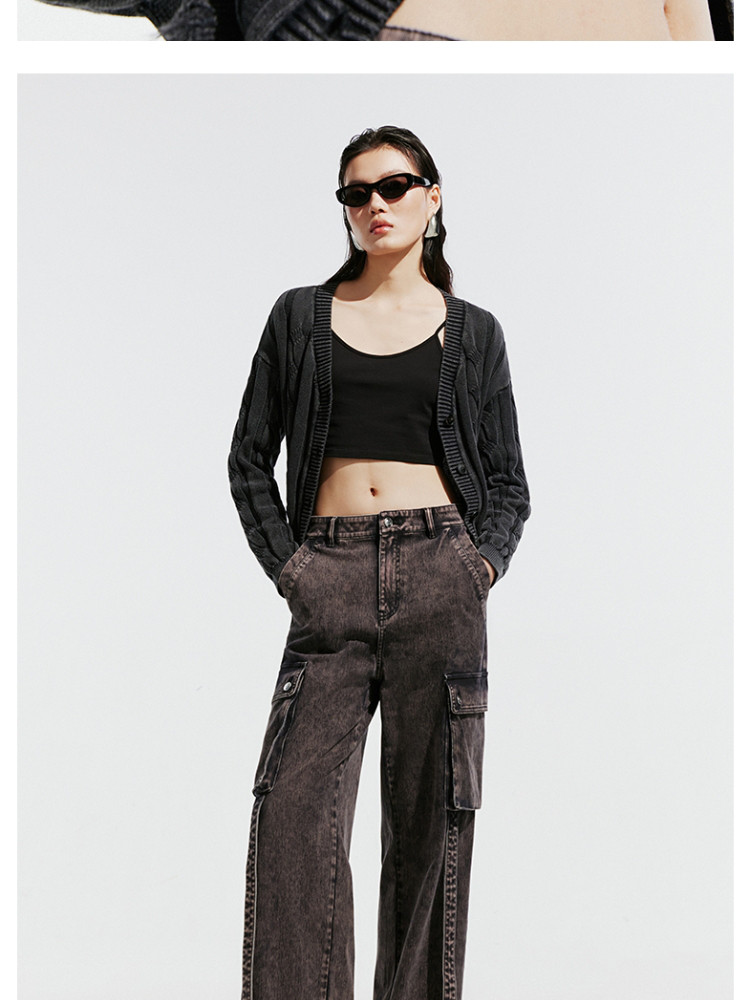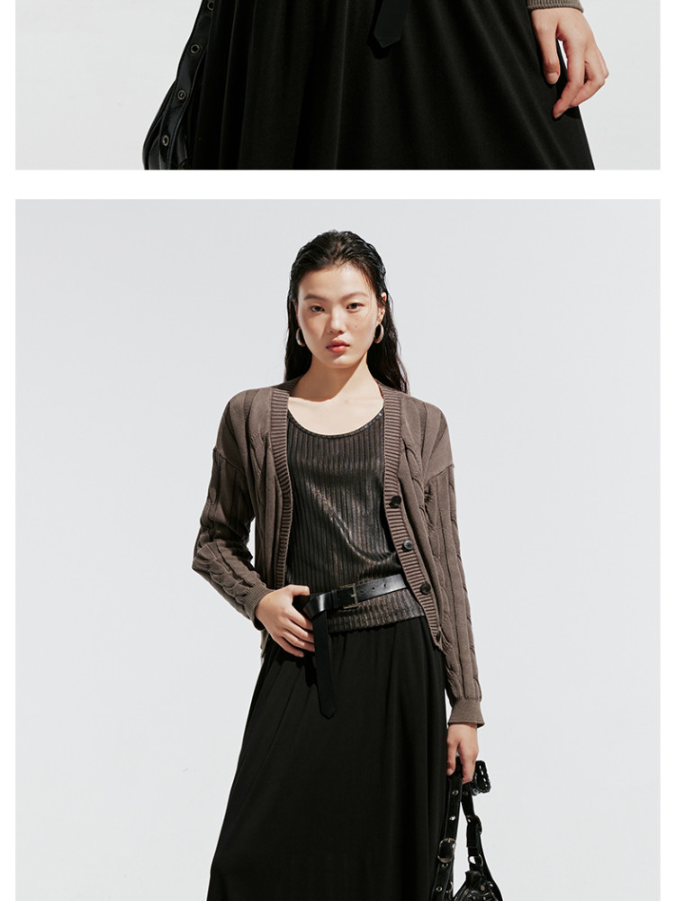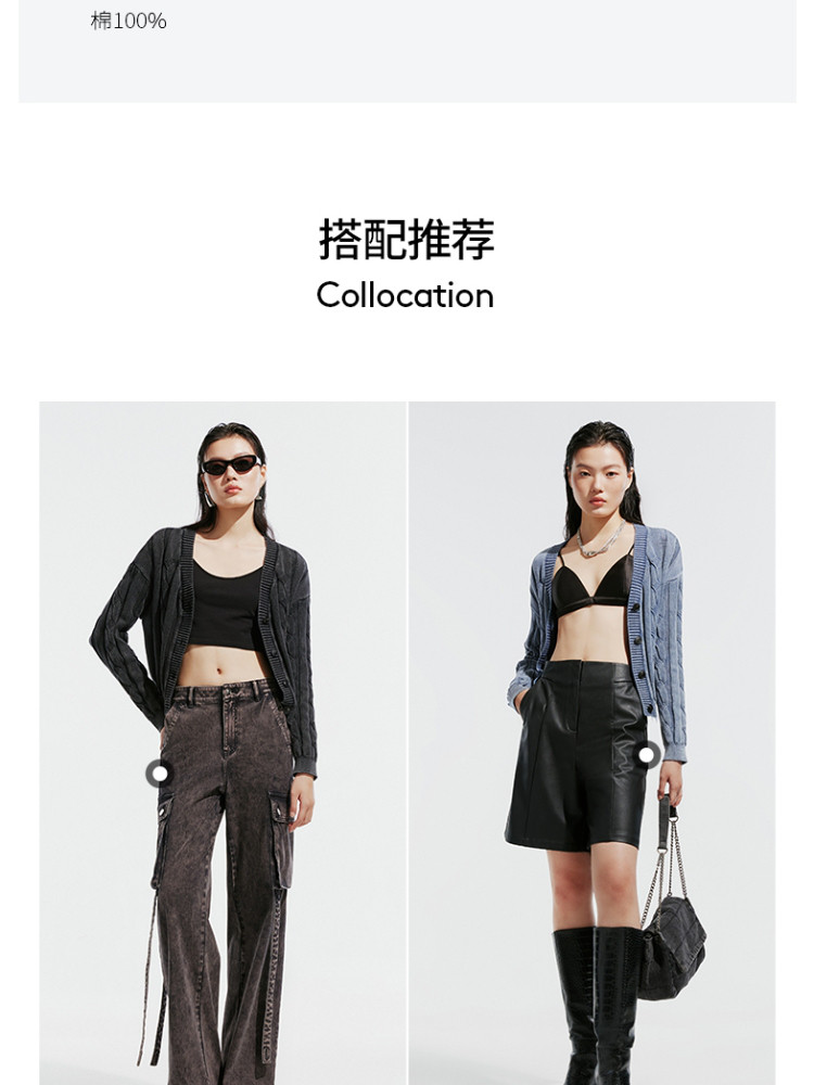 商品名称:【绞花罗纹】针织衫女春秋做旧洗水麻花条纹宽松针织开衫 285329