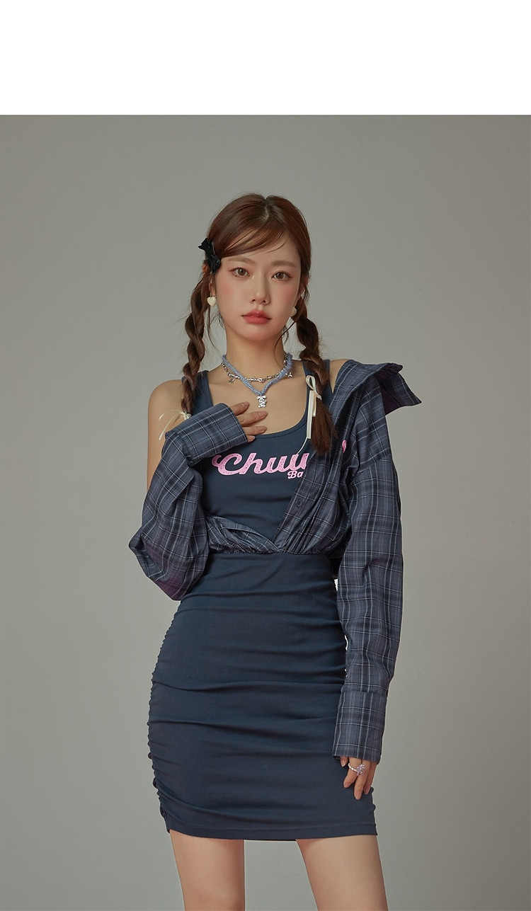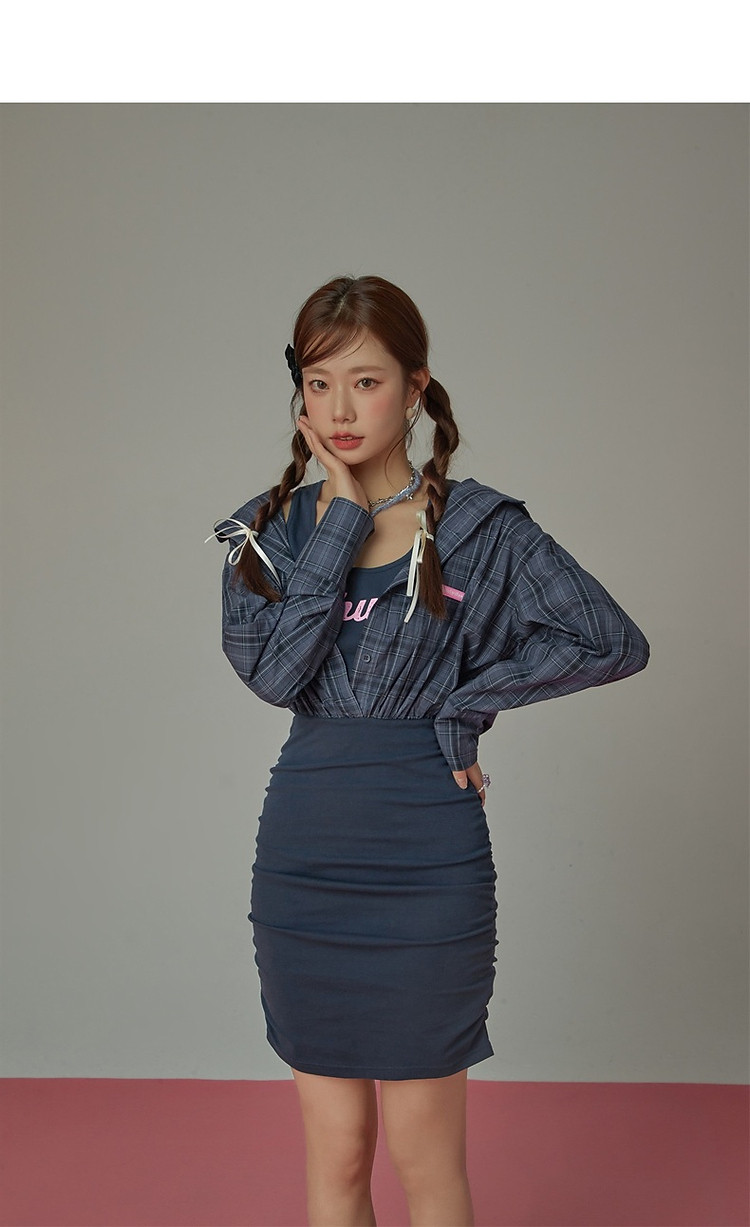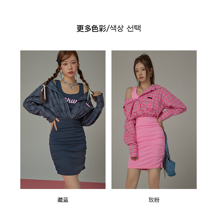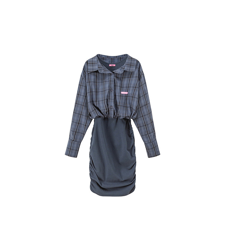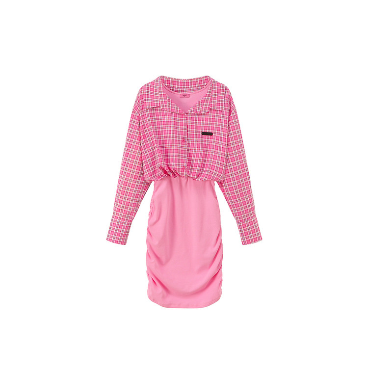 商品名称:假两件连衣裙女秋衬衫拼接设计感辣妹包臀短裙子 763155