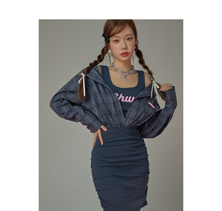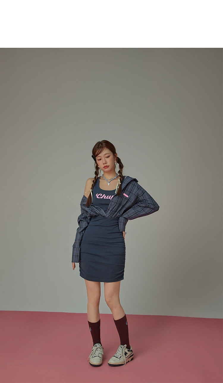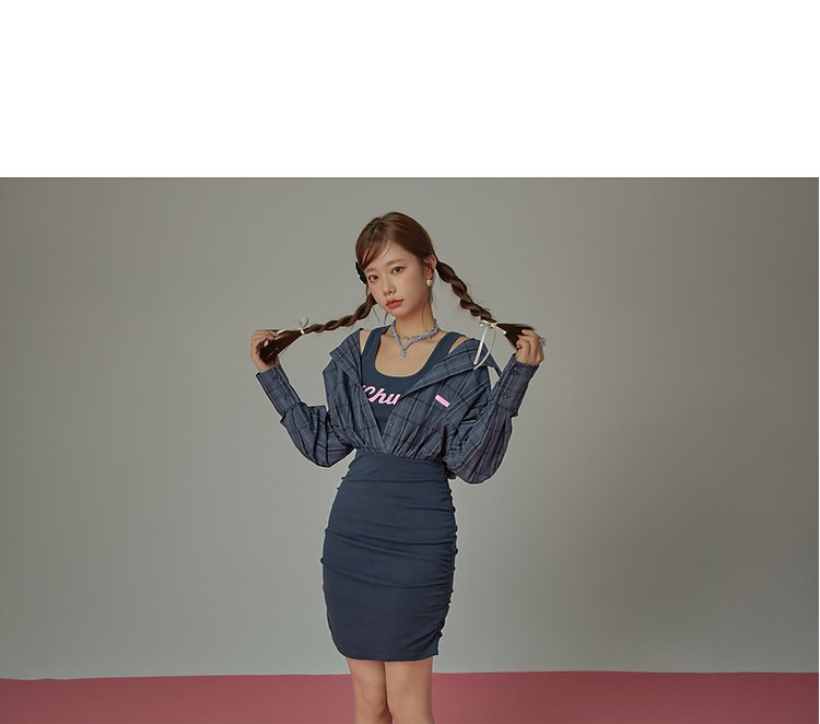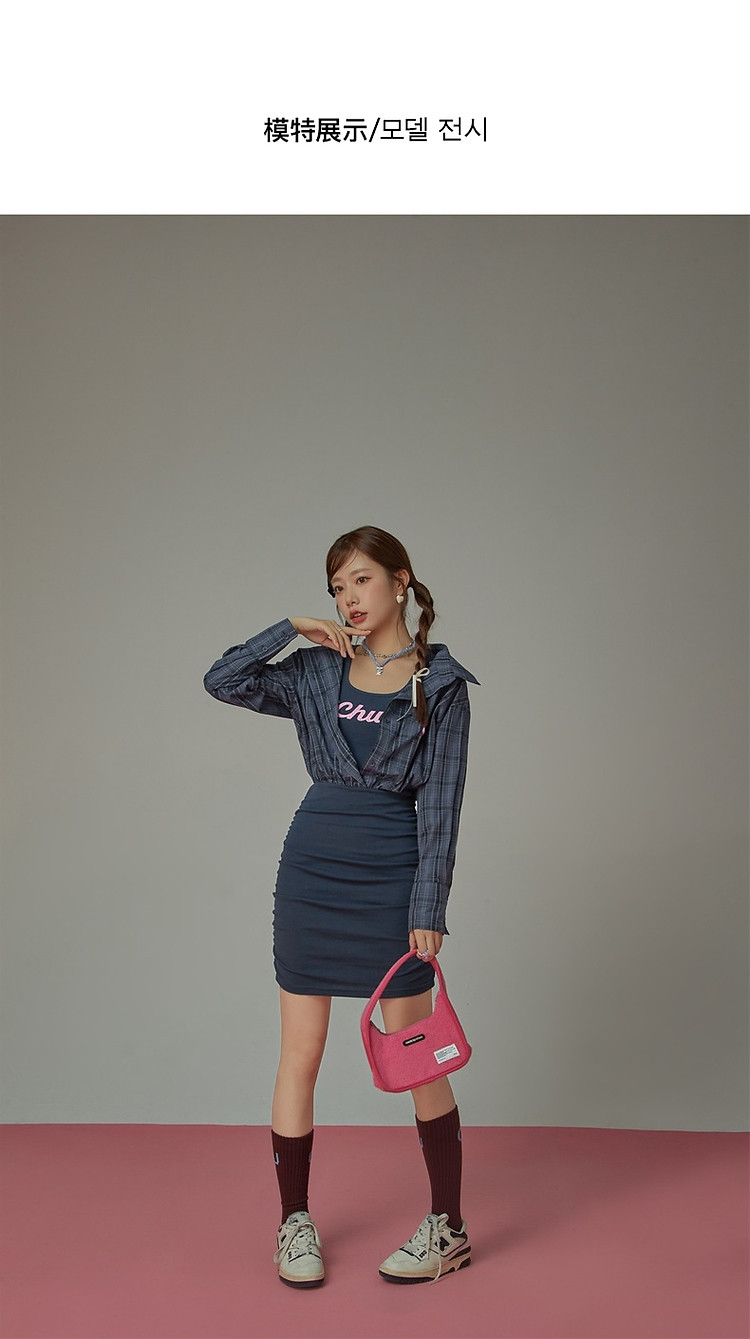 商品名称:假两件连衣裙女秋衬衫拼接设计感辣妹包臀短裙子 763155