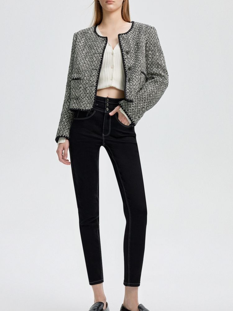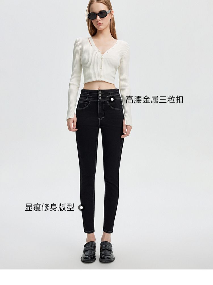 【莱卡纤维高回弹】24夏季复古显瘦高腰九分紧身裤牛仔裤女 633050