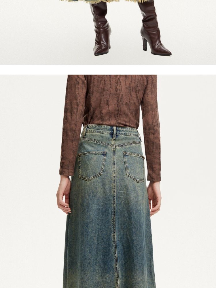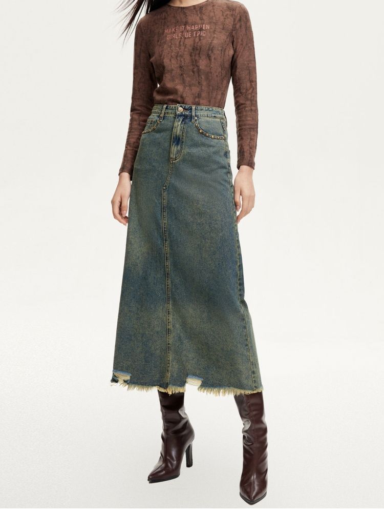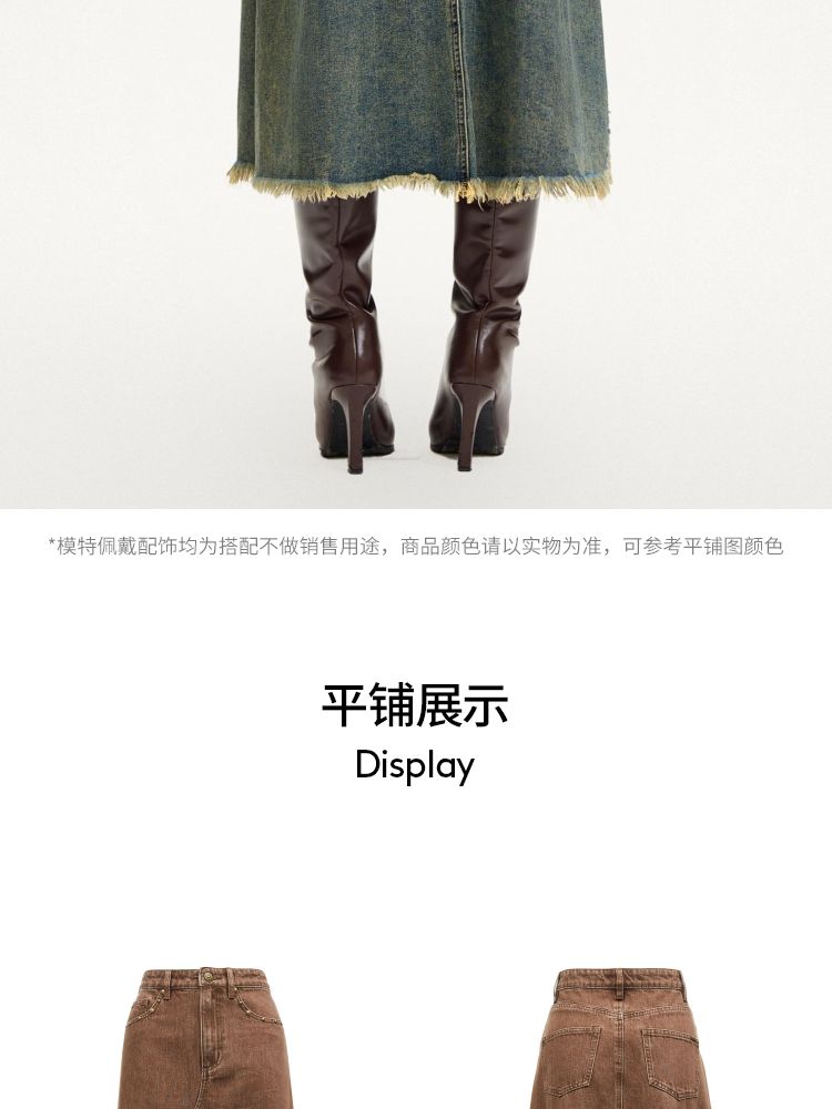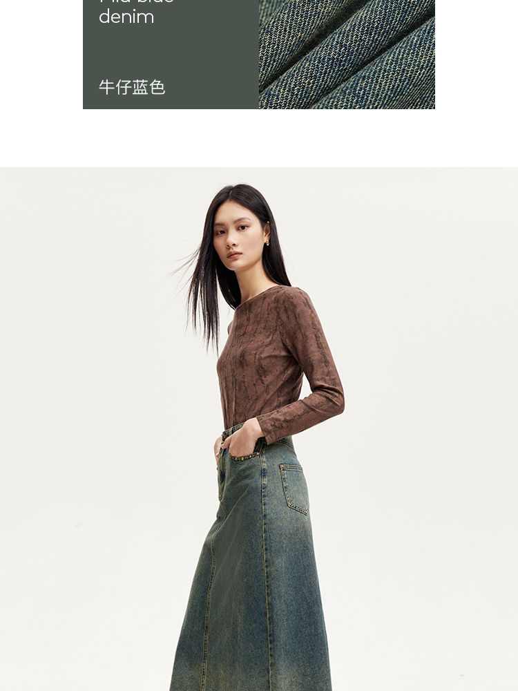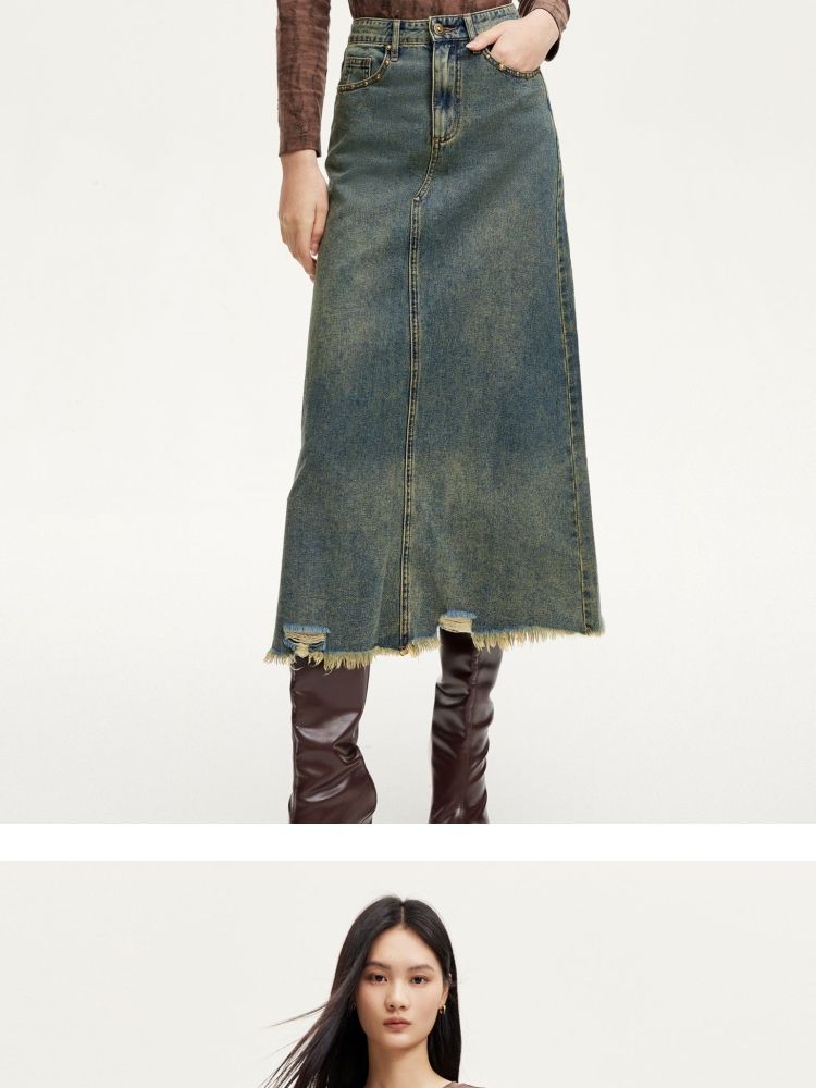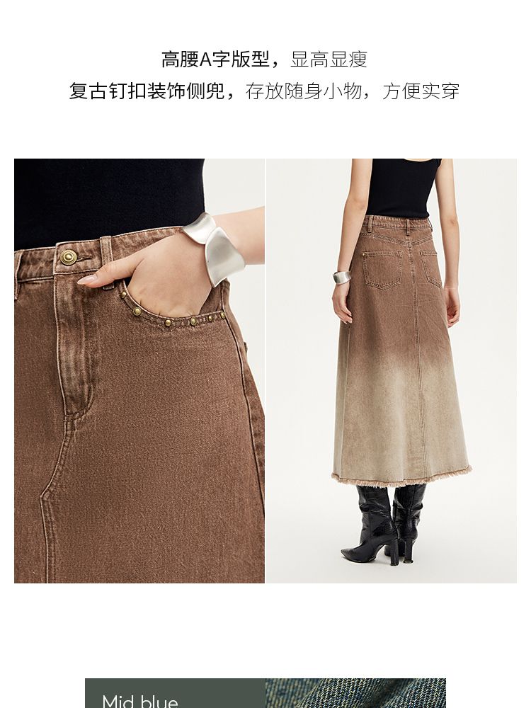 半身裙女A版铆钉毛边水洗复古通勤 338449