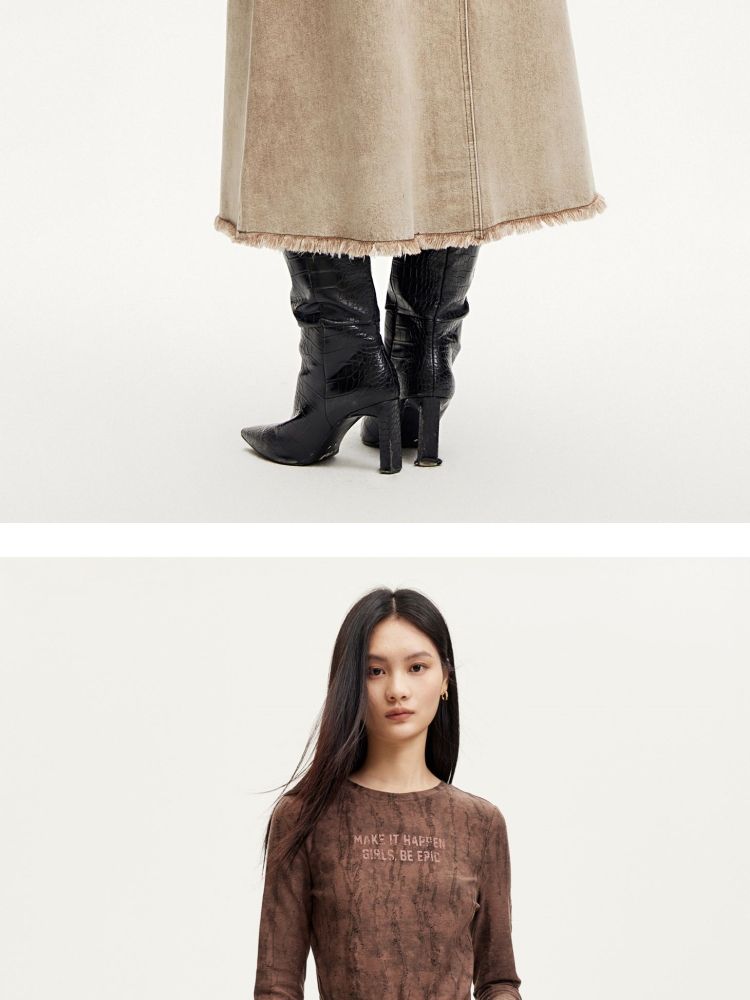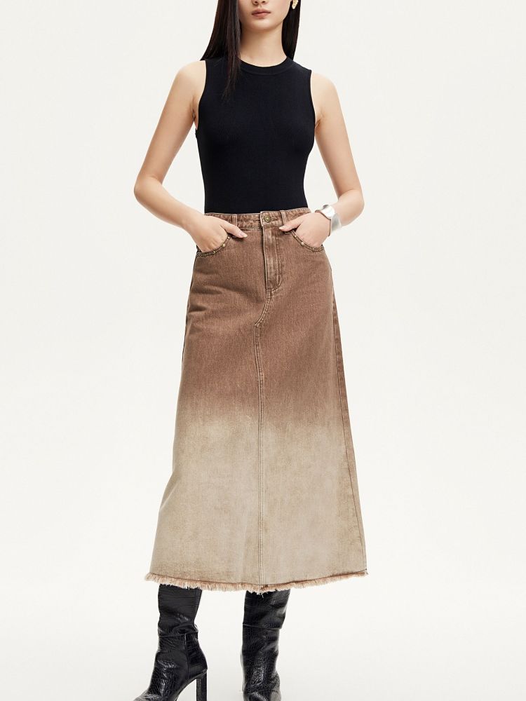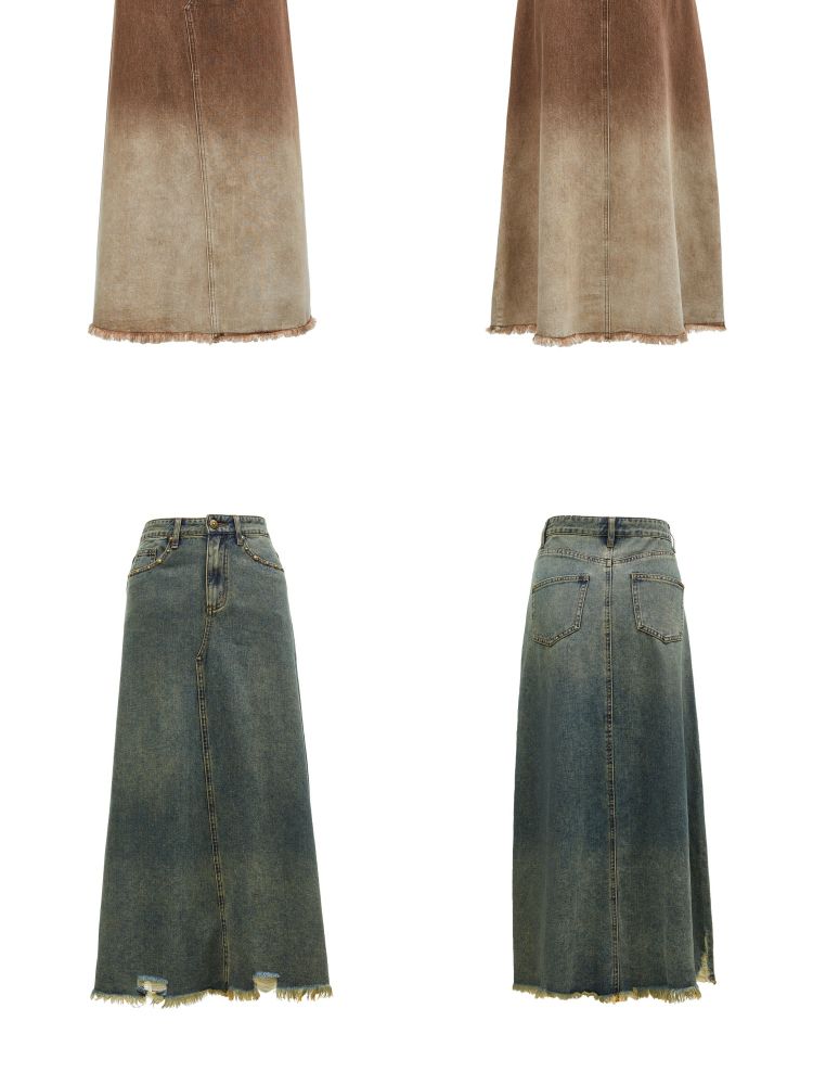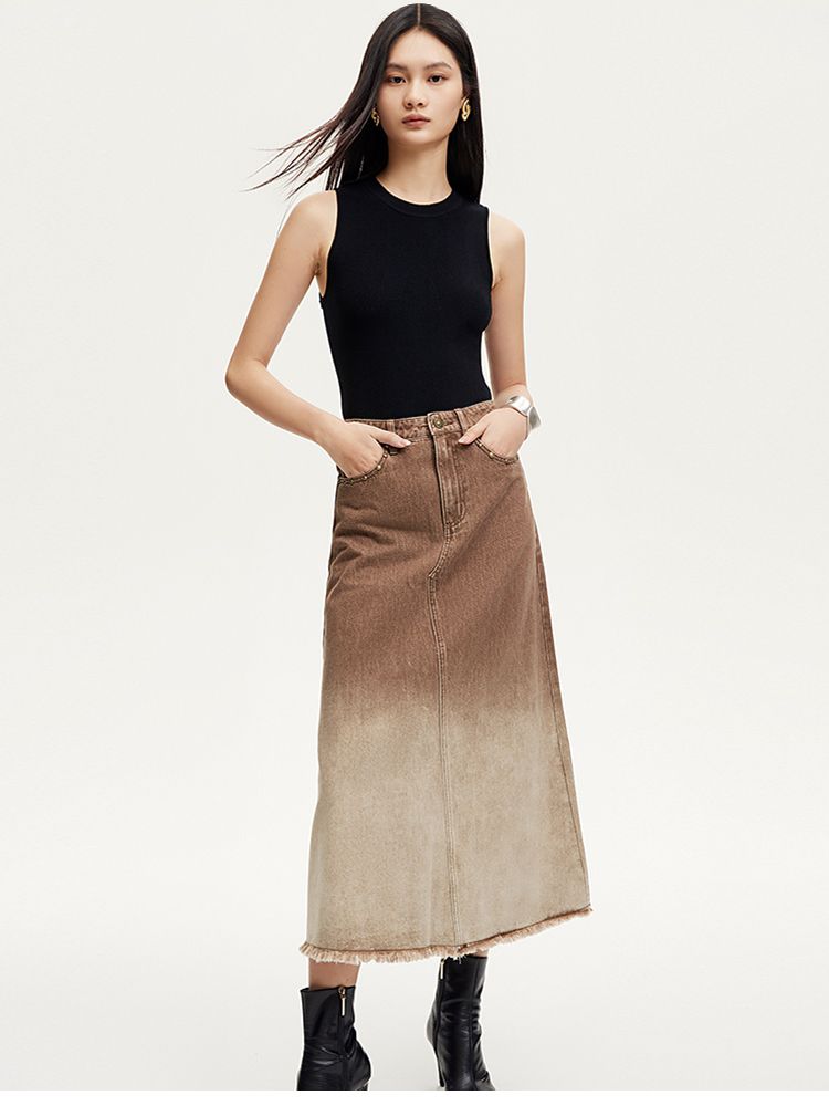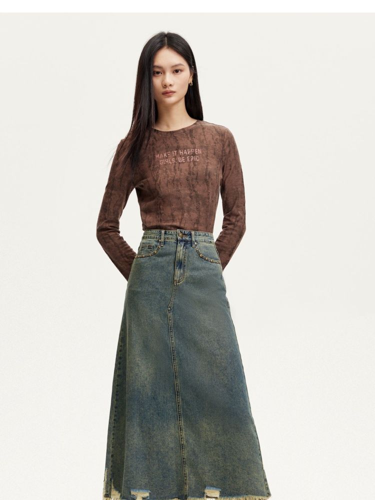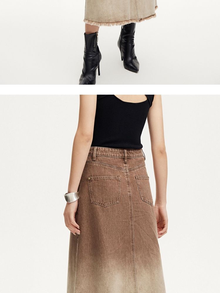 半身裙女A版铆钉毛边水洗复古通勤 338449