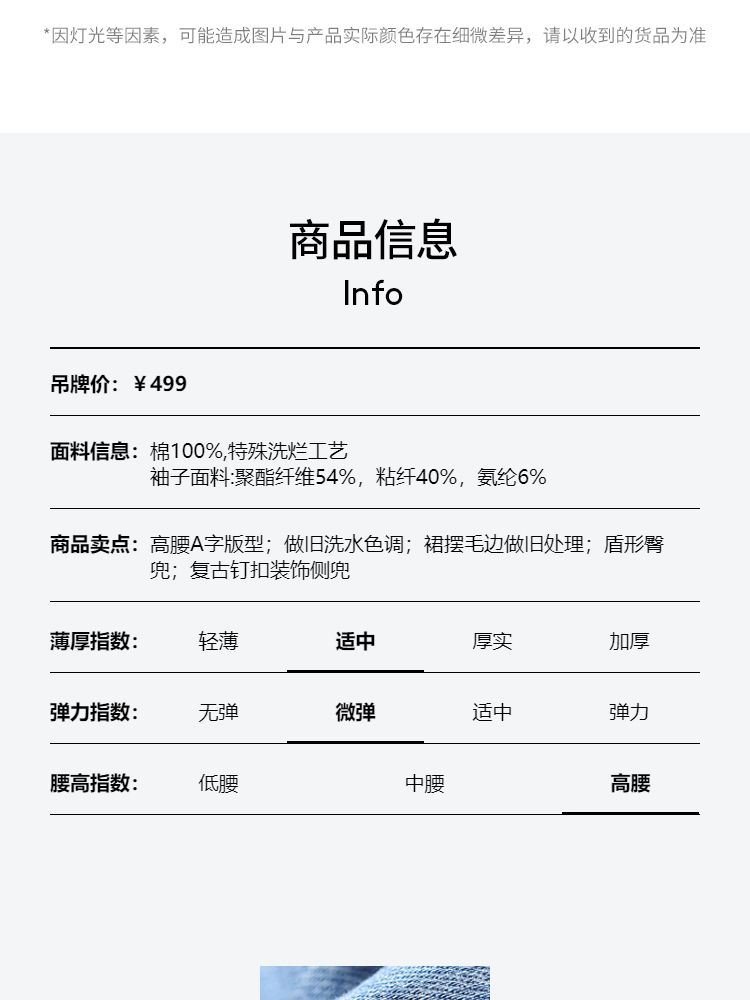 商品名称:半身裙女A版铆钉毛边水洗复古通勤 338449