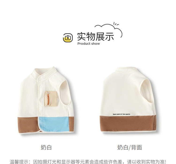 商品名称:童装男童儿童马甲摇粒绒外套春秋装工装婴儿背心上衣撞色宝宝小童 117701