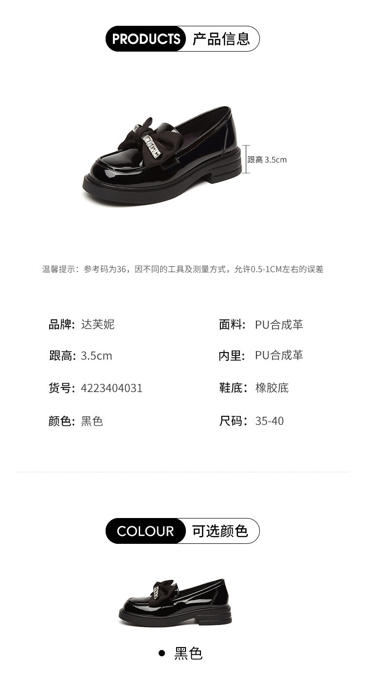 商品名称:蝴蝶结单鞋女春夏季英伦风女鞋子粗跟职场通勤小皮鞋百搭乐福鞋女 529495