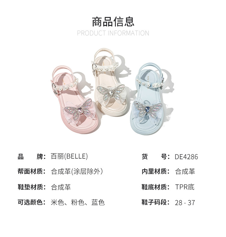 商品名称:【闪钻珍珠蝴蝶凉鞋】夏季女童凉鞋百搭透气露趾公主凉鞋表演凉鞋 417163