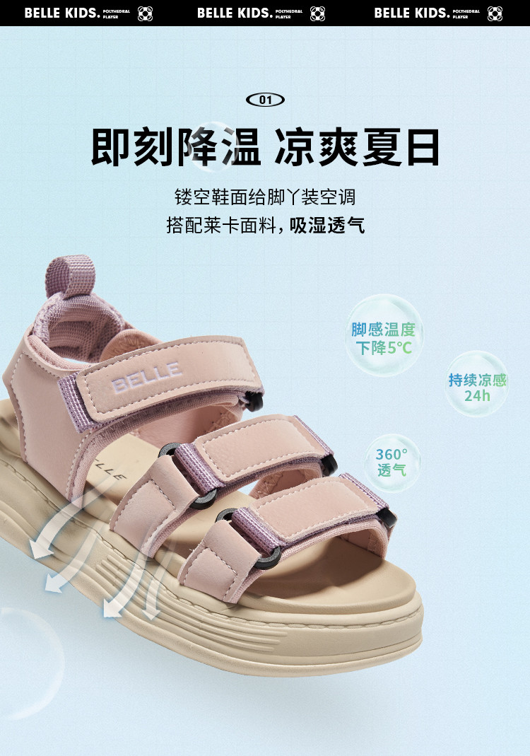 儿童运动凉鞋夏季女童中大童凉鞋男童透气轻便儿童沙滩凉鞋 714763