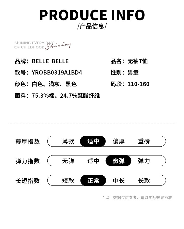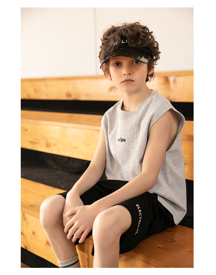 商品名称:【字母印花T恤】夏季男童背心儿童宝宝上衣校园百搭男孩无袖T恤 761355